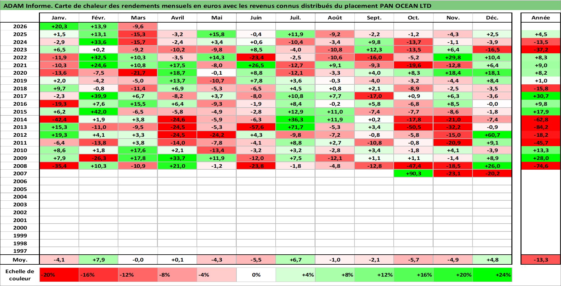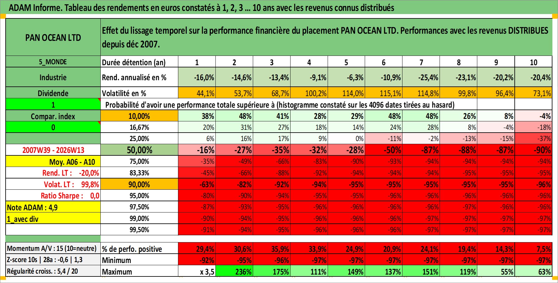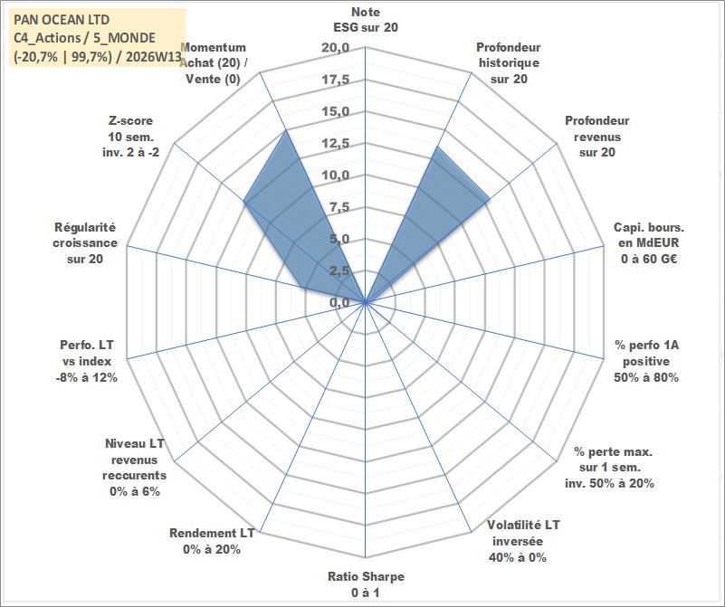 Site dédié aux investisseursPage dédiée sur site financeAnalyse des valorisations hebdomadaires de l'action PAN OCEAN LTD. Cet actif est cote en KRW. Les valorisations sont en contrevaleur EURO et couvrent les semaines 2007W39 a 2026W13. Les revenus de cet actif financier sont pris en compte depuis la semaine 2007W52. La note ESG de cet actif n'est pas connue.