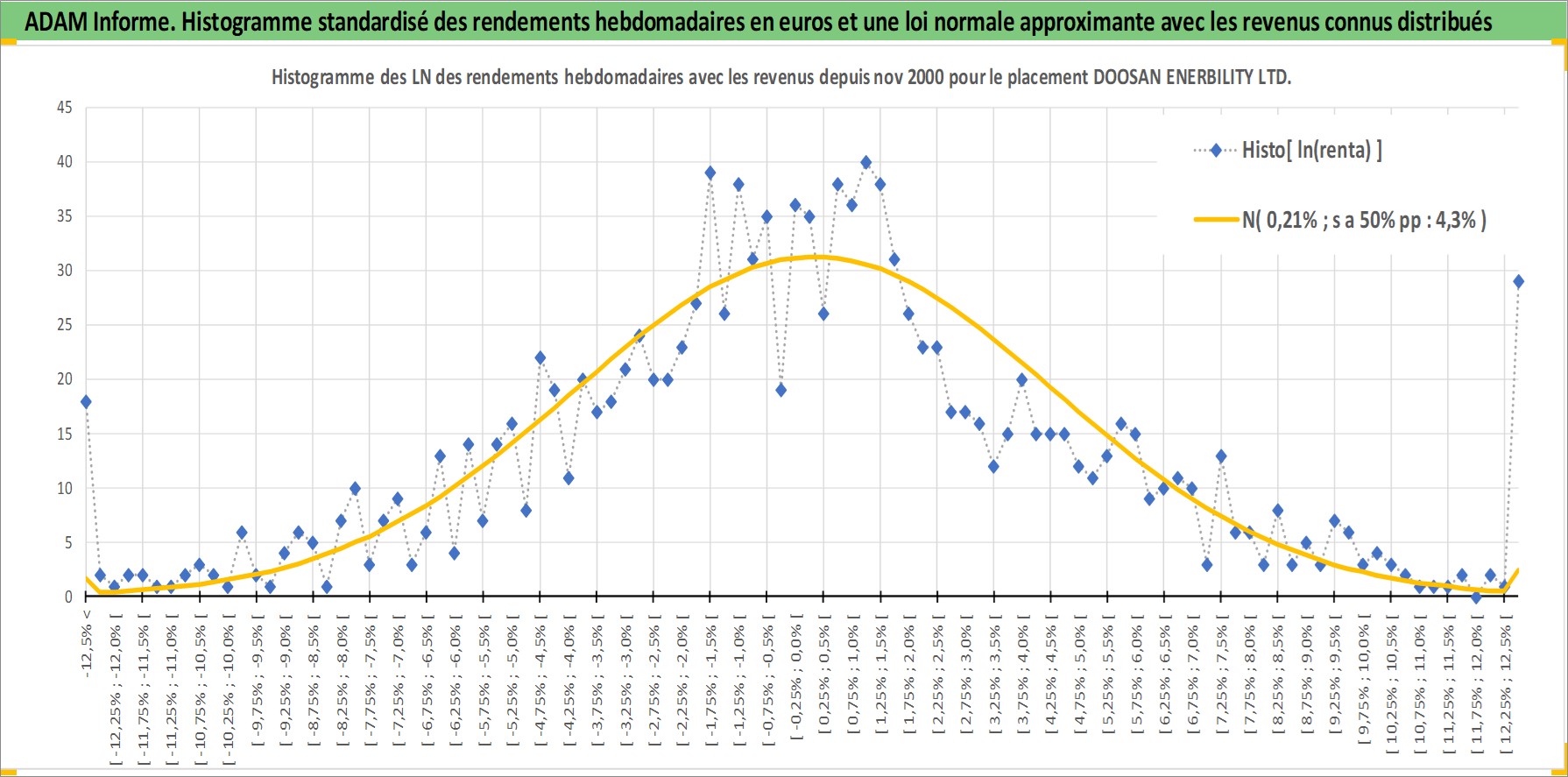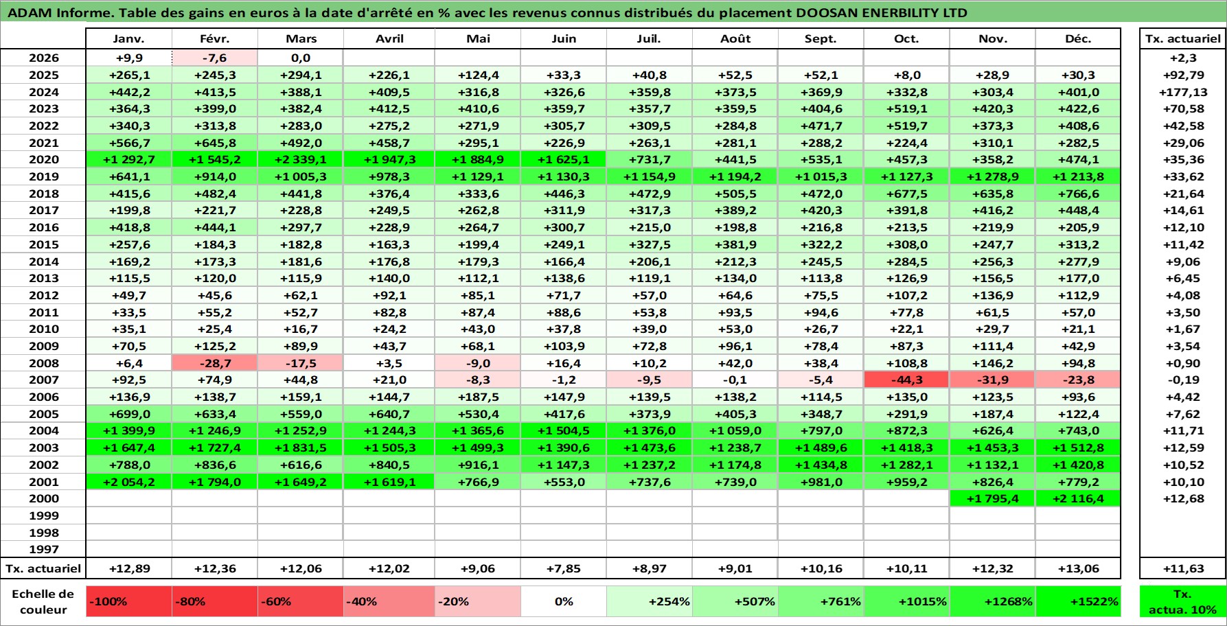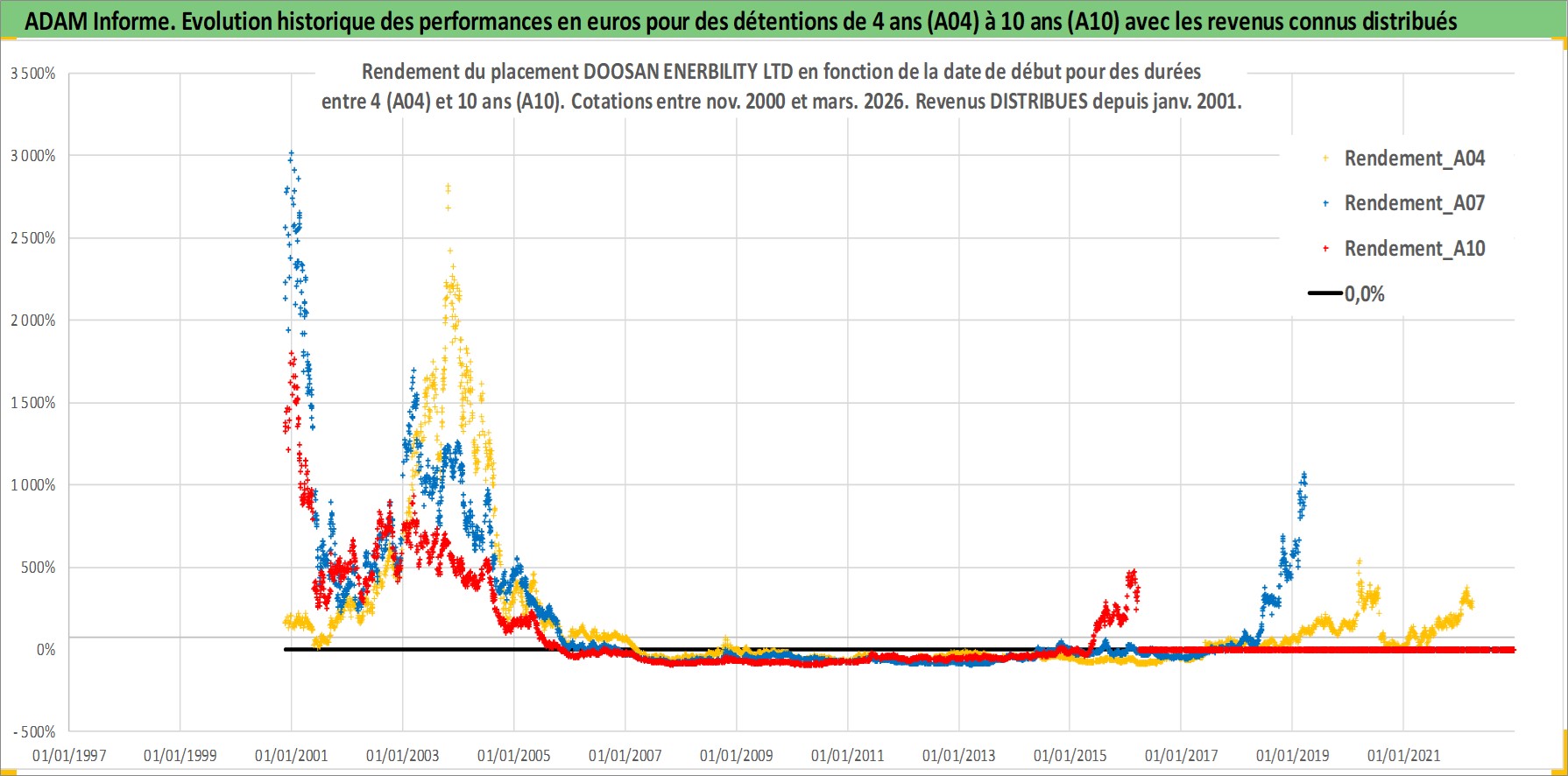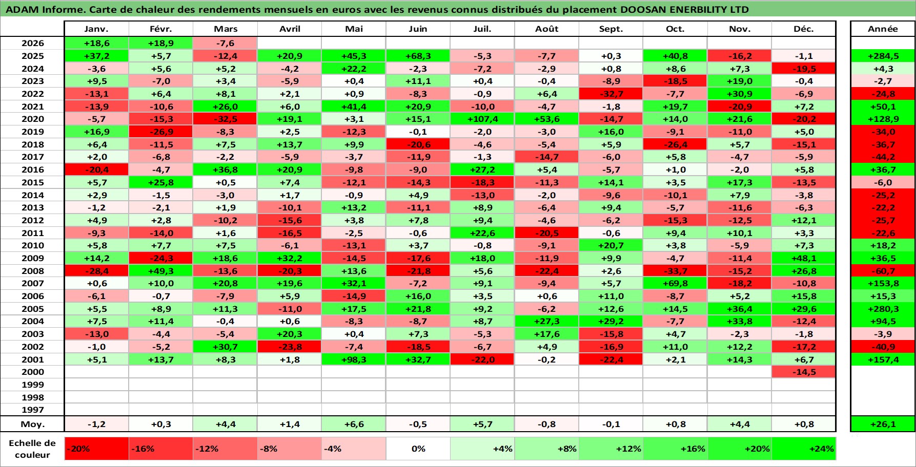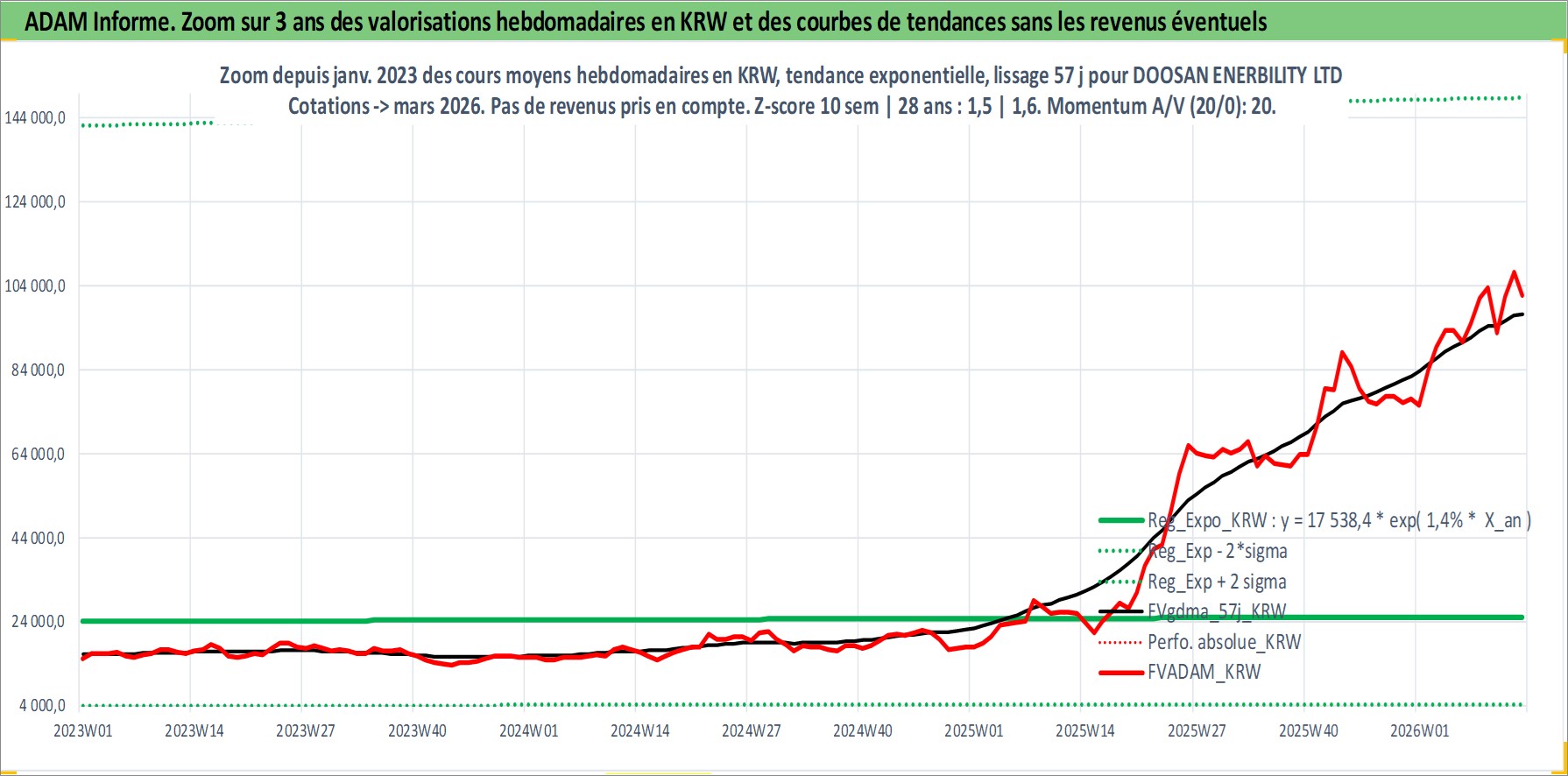 Site dédié aux investisseursPage dédiée sur site financeAnalyse des valorisations hebdomadaires de l'action DOOSAN ENERBILITY LTD. Cet actif est cote en KRW. Les valorisations sont en contrevaleur EURO et couvrent les semaines 2000W45 a 2026W13. Les revenus de cet actif financier sont pris en compte depuis la semaine 2001W01. La note ESG de cet actif n'est pas connue.