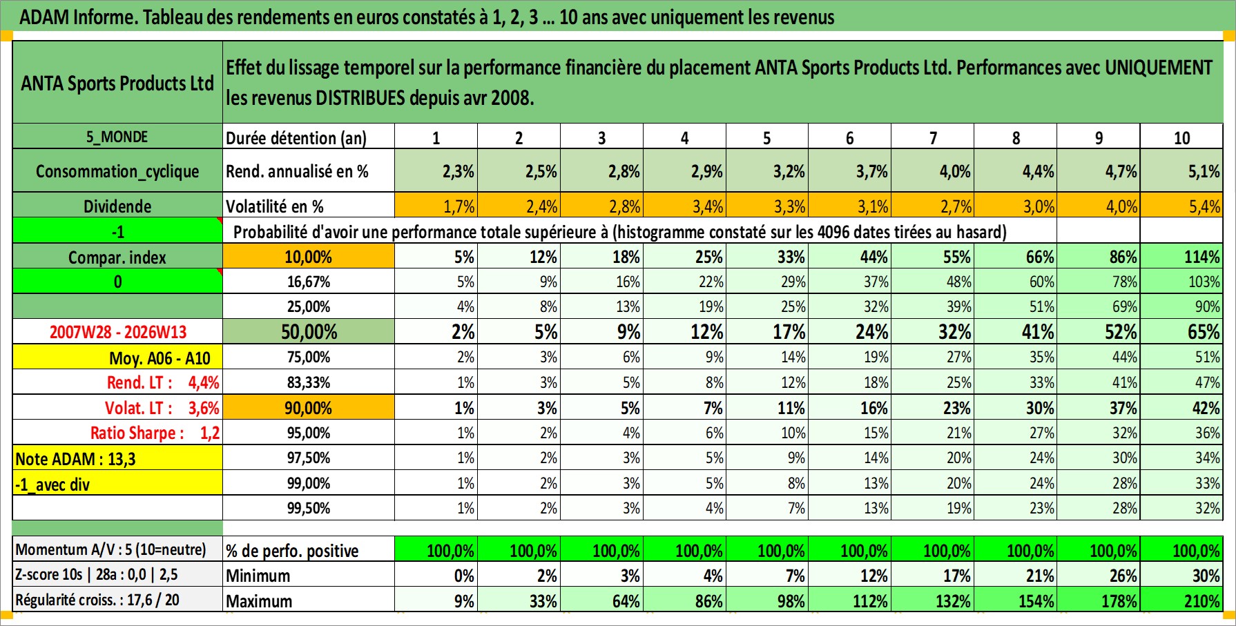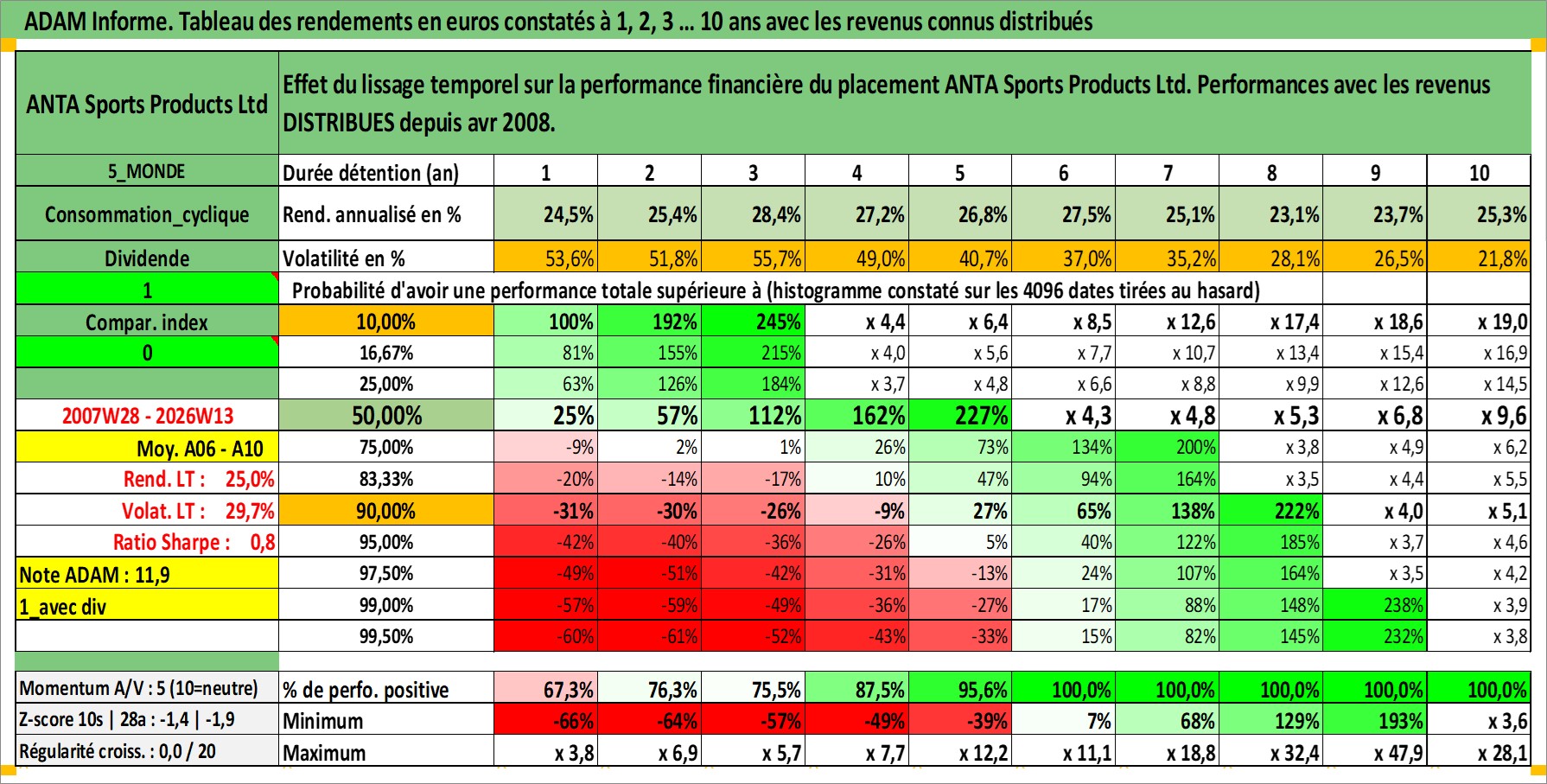 Dernière perfo 10 ans en %