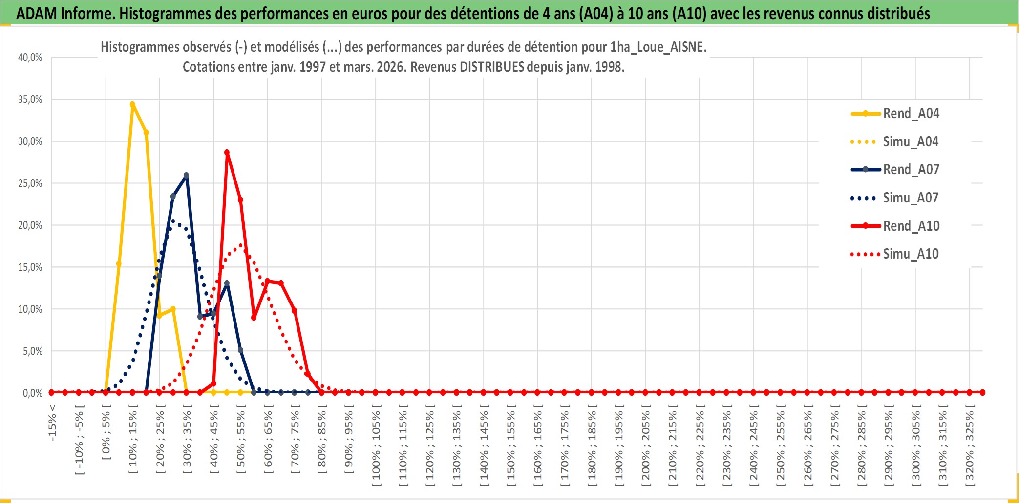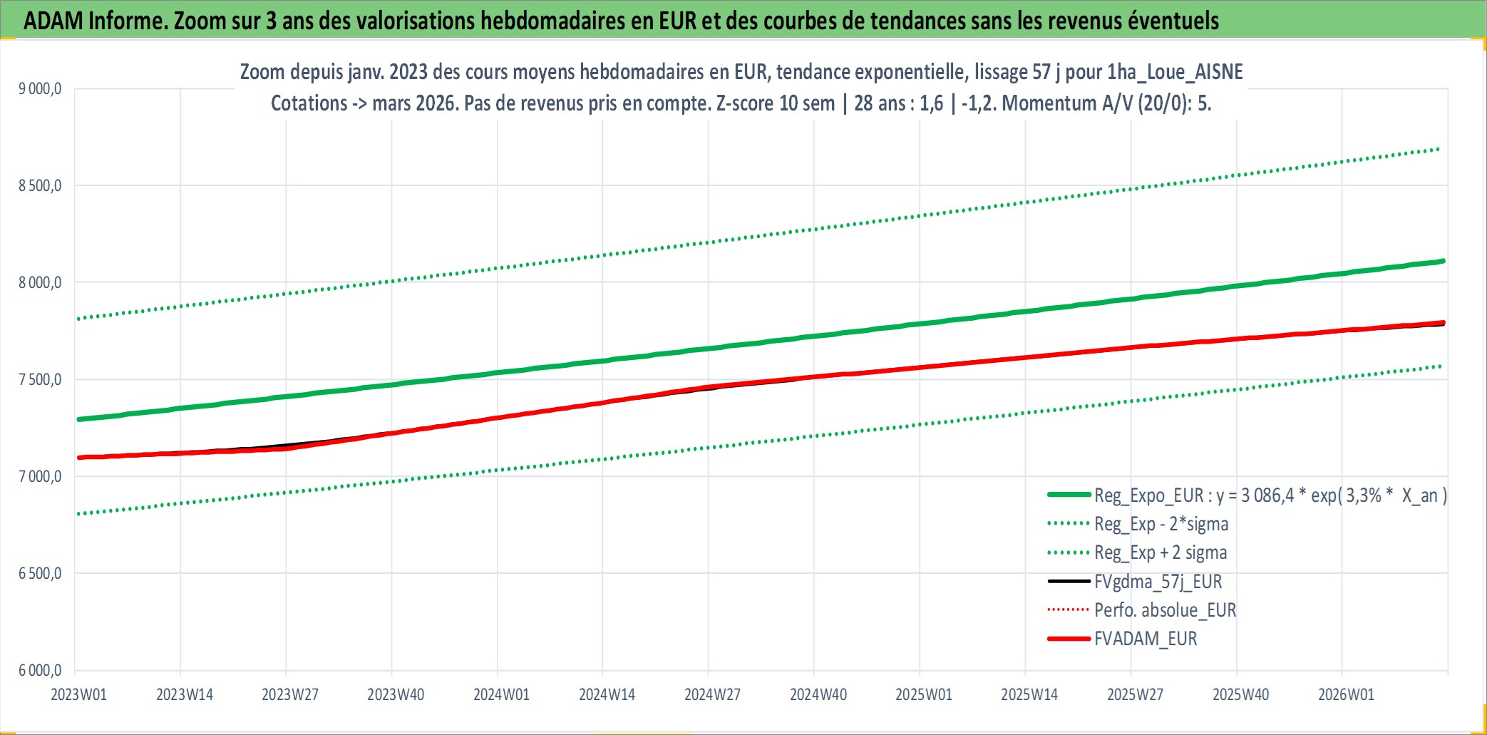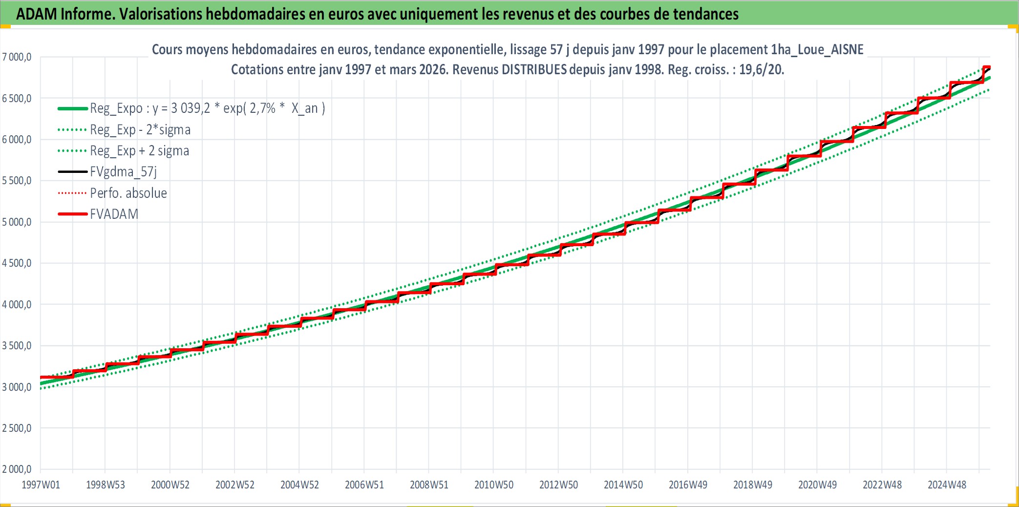 Site dédié aux investisseursPage dédiée sur site financeAnalyse des valorisations hebdomadaires de l'actif 1ha_Loue_AISNE. Cet actif est cote en EUR. Les valorisations couvrent les semaines 1997W01 a 2026W13. Les fermages de ce bien foncier sont pris egaux a 2,5% annuels de la valeur venale du bien.
