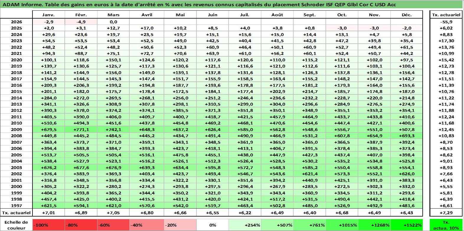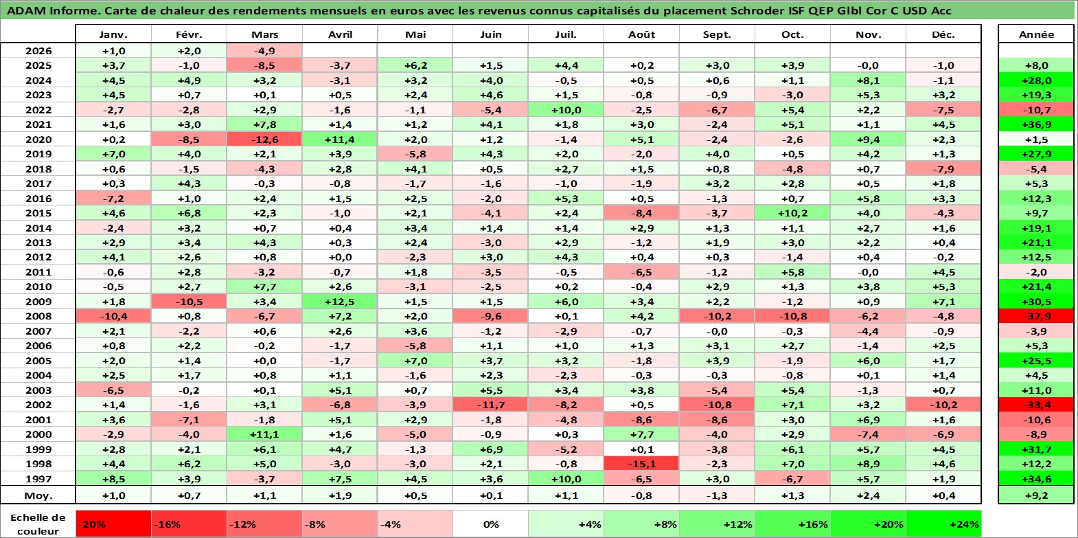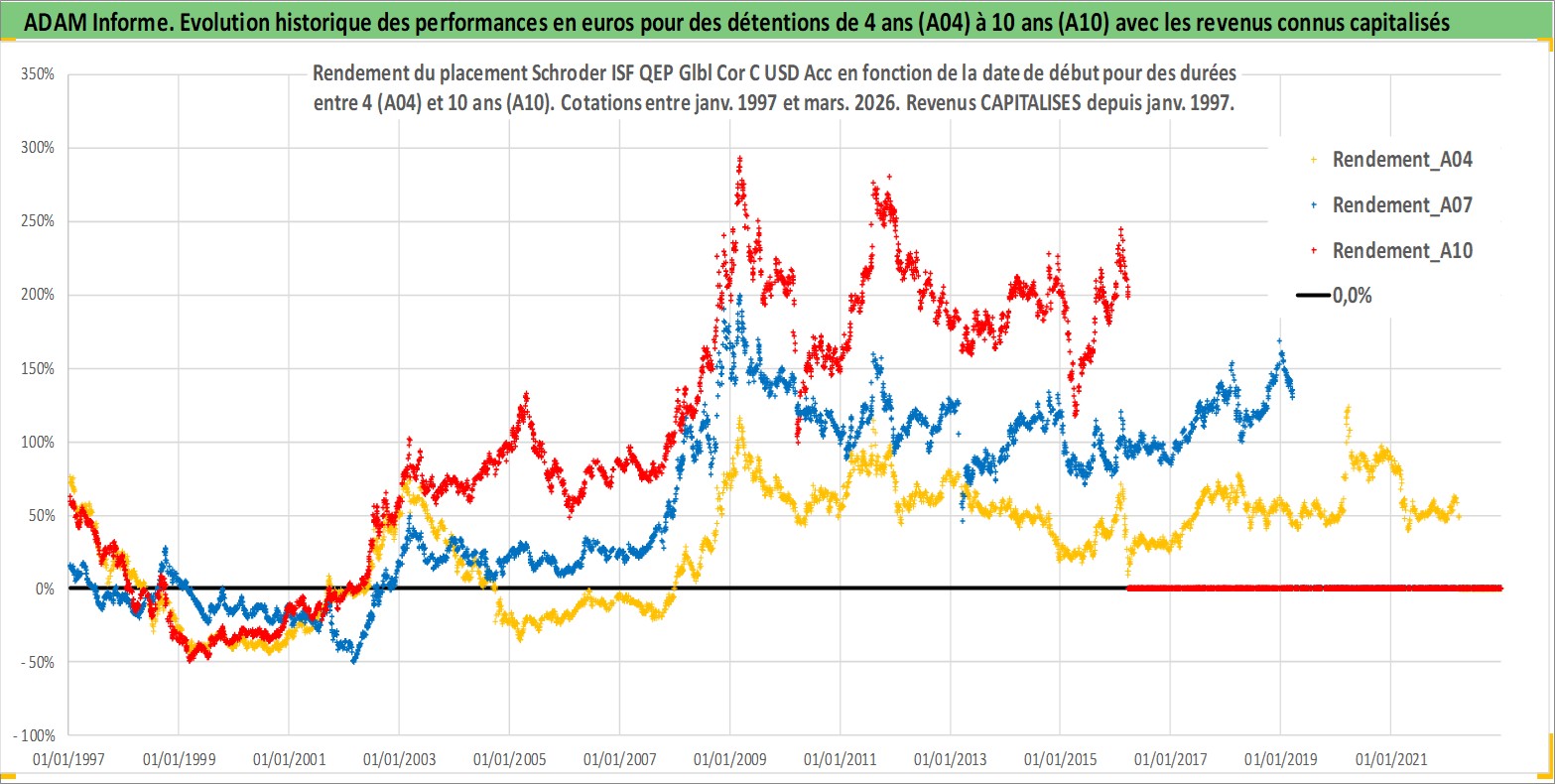 Site dédié aux investisseursPage dédiée sur site financeAnalyse des valorisations hebdomadaires du fonds Schroder ISF QEP Glbl Cor C USD Acc. Cet actif est cote en USD. Les valorisations sont en contrevaleur EURO et couvrent les semaines 1997W01 a 2026W13. Les revenus de cet actif financier sont pris en compte depuis la semaine 1997W01. La note ESG de cet actif n'est pas connue.