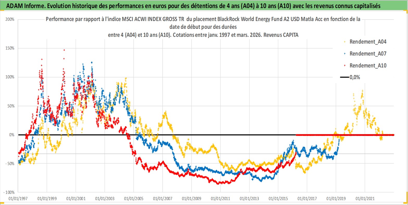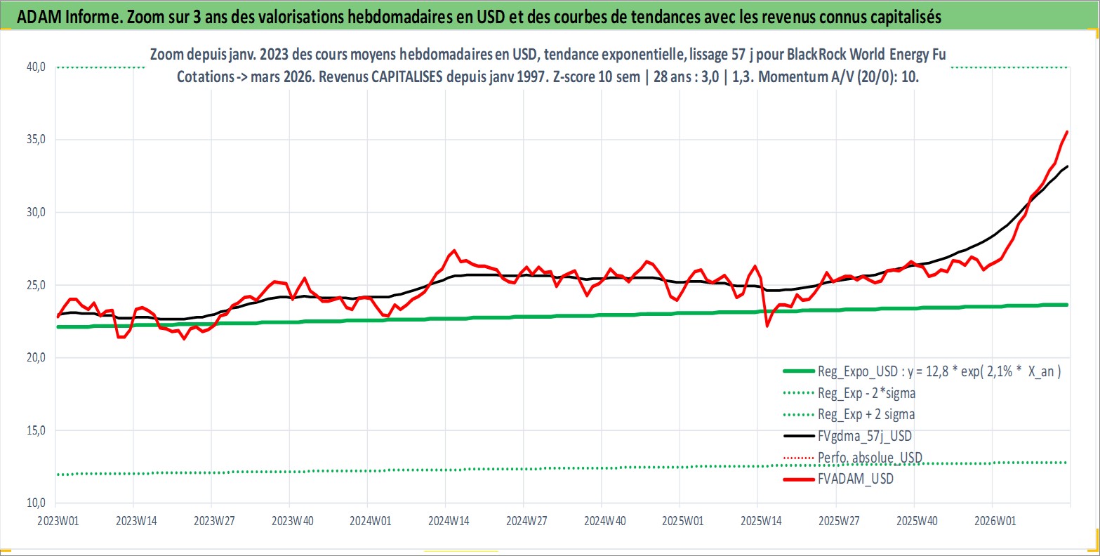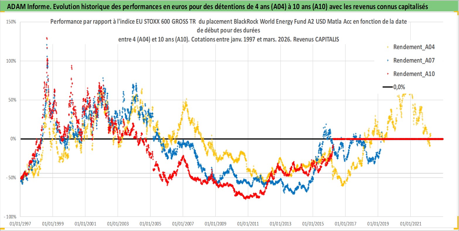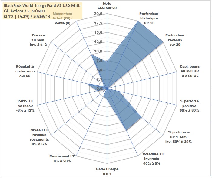 Site dédié aux investisseursPage dédiée sur site financeAnalyse des valorisations hebdomadaires du fonds BlackRock World Energy Fund A2 USD Matla Acc. Cet actif est cote en USD. Les valorisations sont en contrevaleur EURO et couvrent les semaines 1997W01 a 2026W13. Les revenus de cet actif financier sont pris en compte depuis la semaine 1997W01. La note globale ESG de cet actif est estimee a 7.1 (apres rebasage entre 0 et 20).