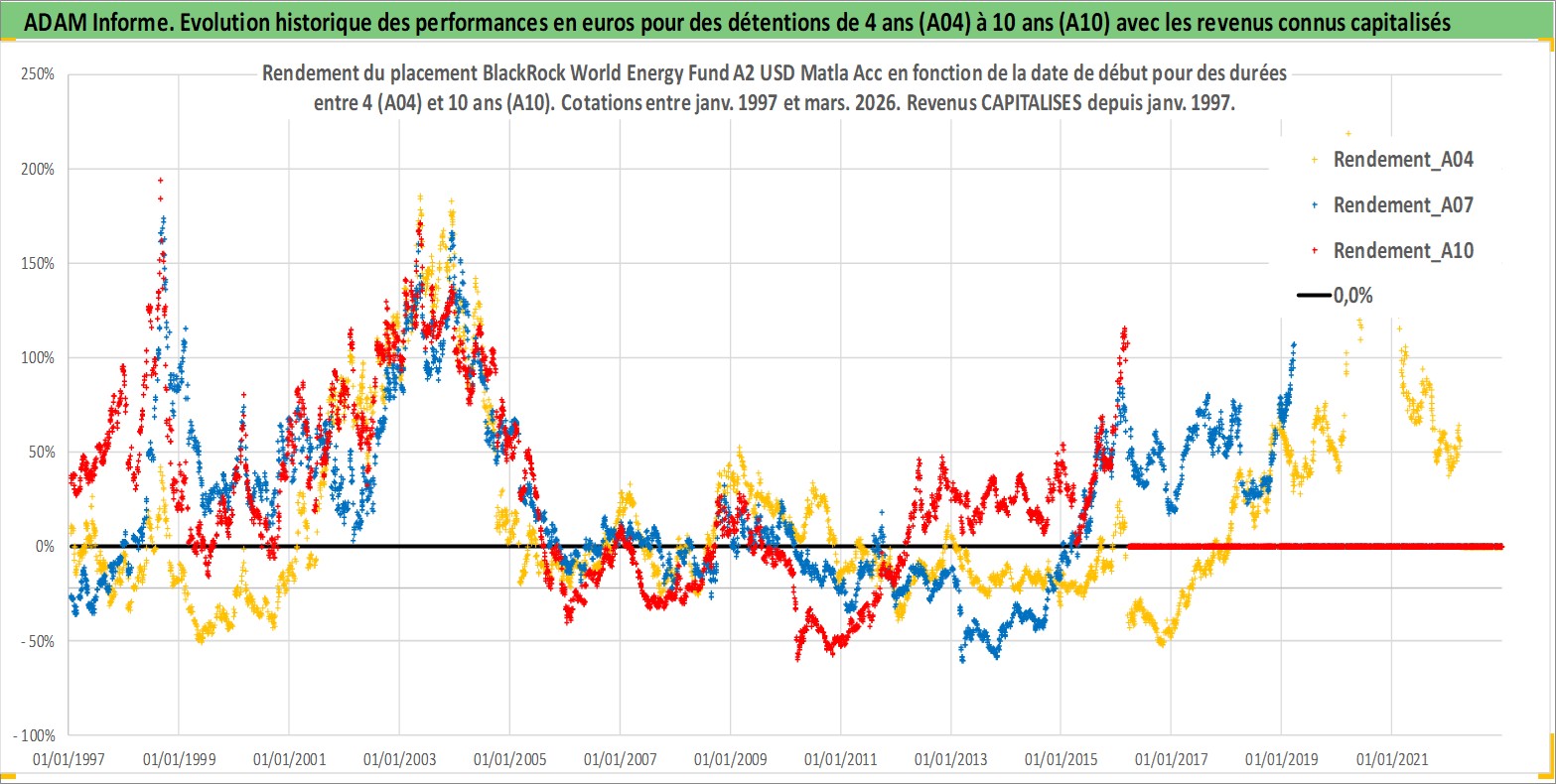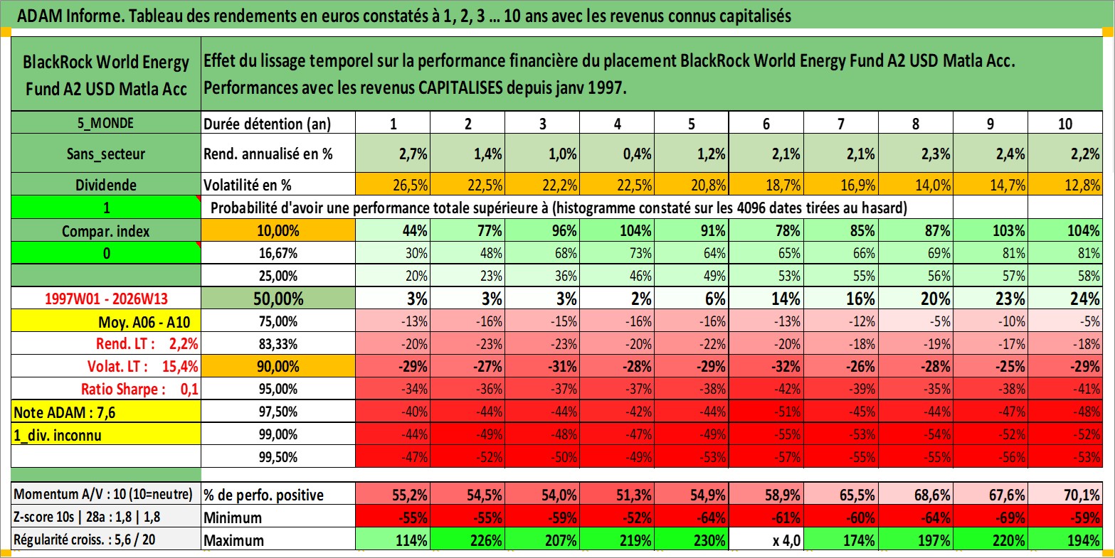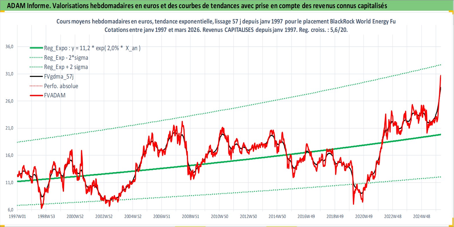 Site dédié aux investisseursPage dédiée sur site financeAnalyse des valorisations hebdomadaires du fonds BlackRock World Energy Fund A2 USD Matla Acc. Cet actif est cote en USD. Les valorisations sont en contrevaleur EURO et couvrent les semaines 1997W01 a 2026W13. Les revenus de cet actif financier sont pris en compte depuis la semaine 1997W01. La note globale ESG de cet actif est estimee a 7.1 (apres rebasage entre 0 et 20).