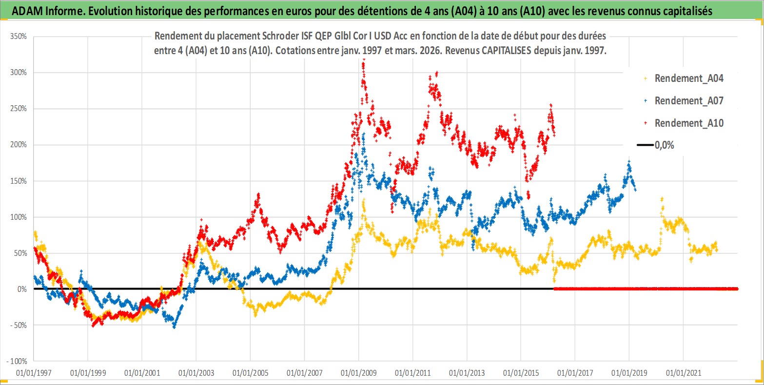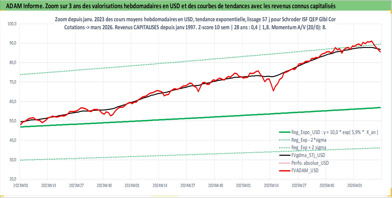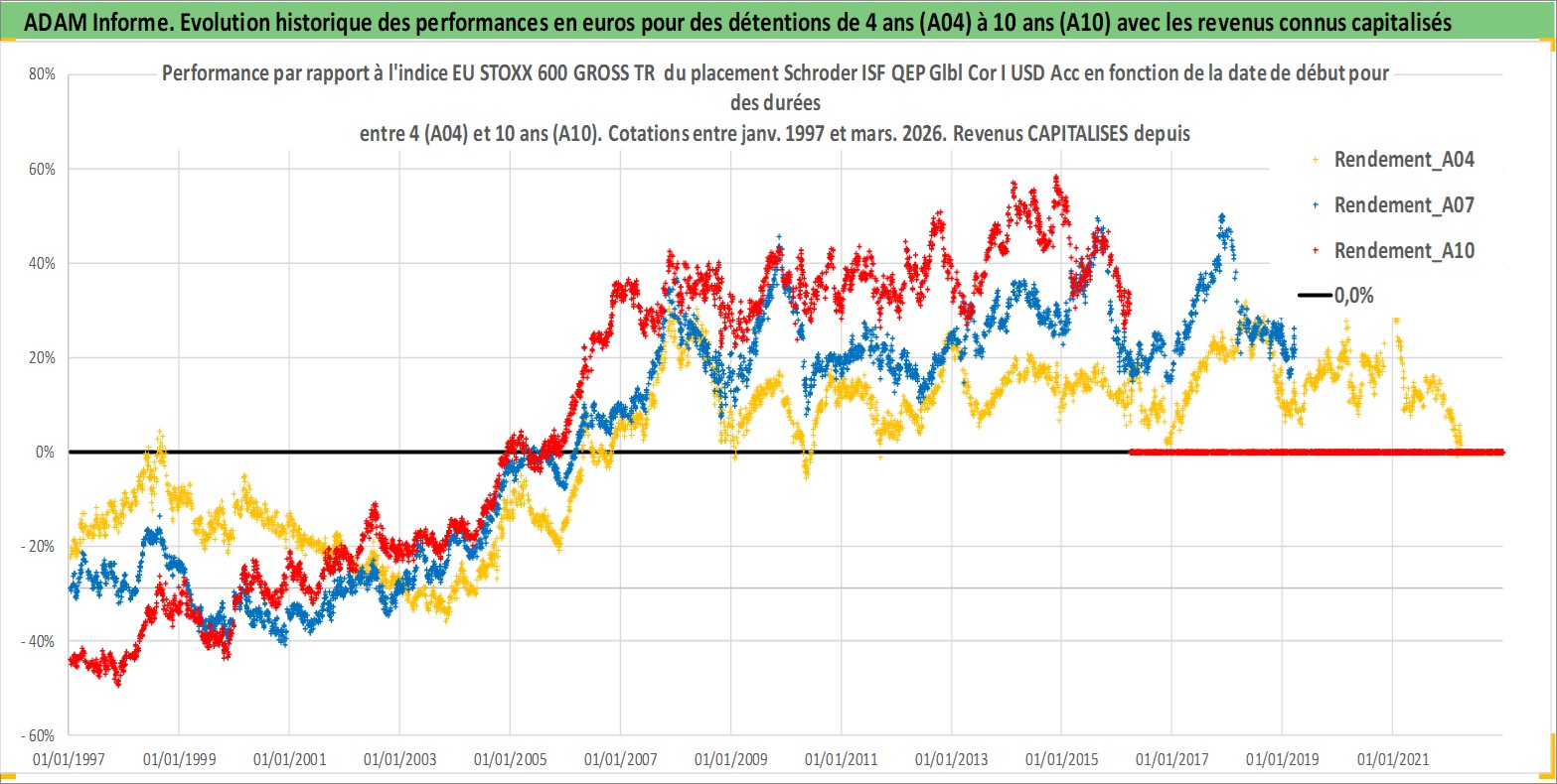Site dédié aux investisseursPage dédiée sur site financeAnalyse des valorisations hebdomadaires du fonds Schroder ISF QEP Glbl Cor I USD Acc. Cet actif est cote en USD. Les valorisations sont en contrevaleur EURO et couvrent les semaines 1997W01 a 2026W13. Les revenus de cet actif financier sont pris en compte depuis la semaine 1997W01. La note ESG de cet actif n'est pas connue.