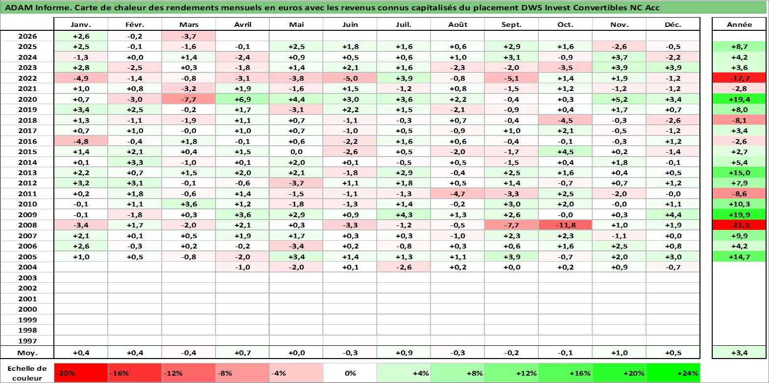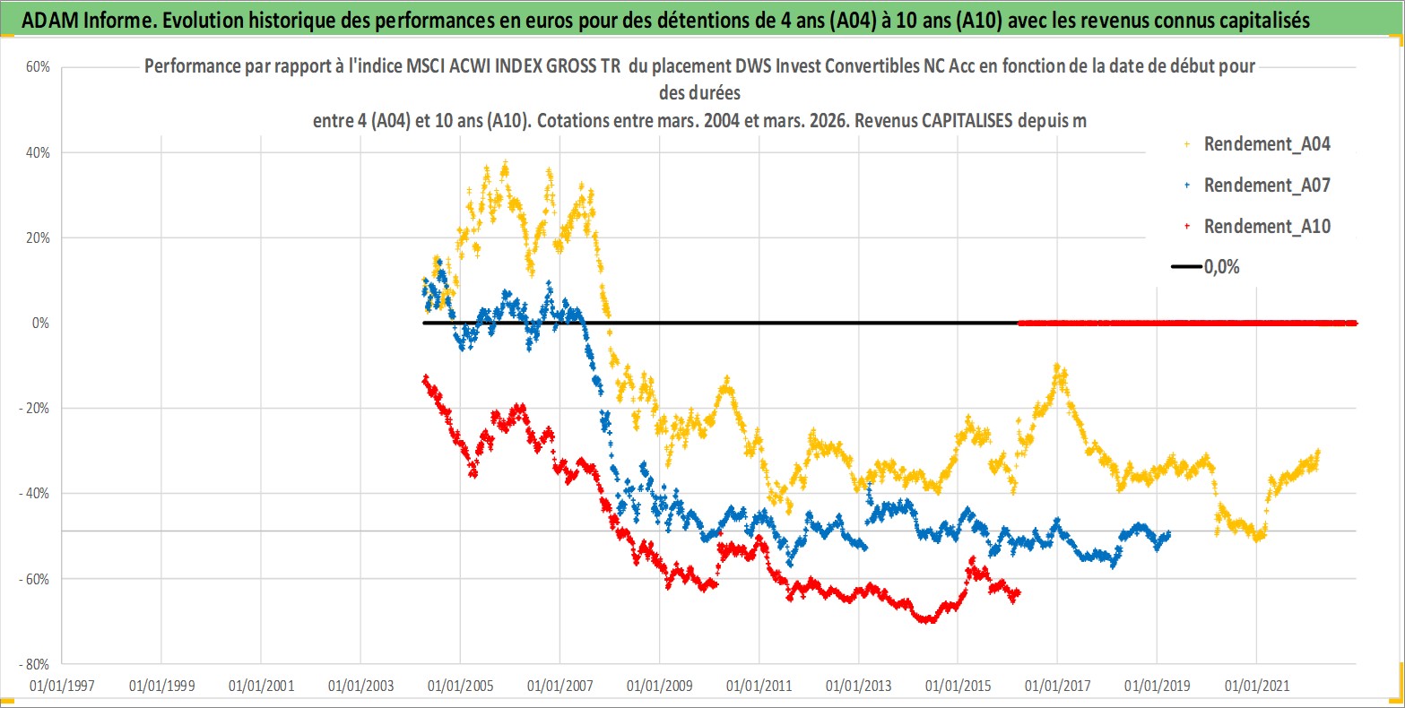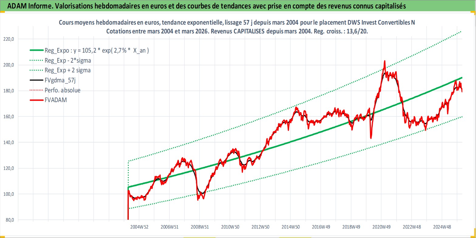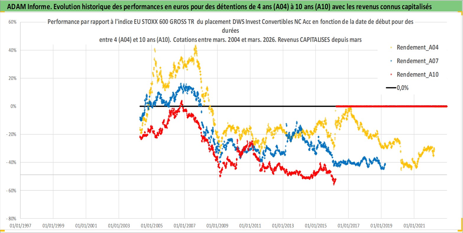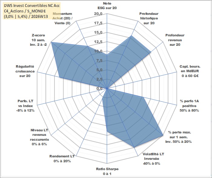 Site dédié aux investisseursPage dédiée sur site financeAnalyse des valorisations hebdomadaires du fonds DWS Invest Convertibles NC Acc. Cet actif est cote en EUR. Les valorisations couvrent les semaines 2004W14 a 2026W13. Les revenus de cet actif financier sont pris en compte depuis la semaine 2004W14. La note globale ESG de cet actif est estimee a 9.0 (apres rebasage entre 0 et 20).