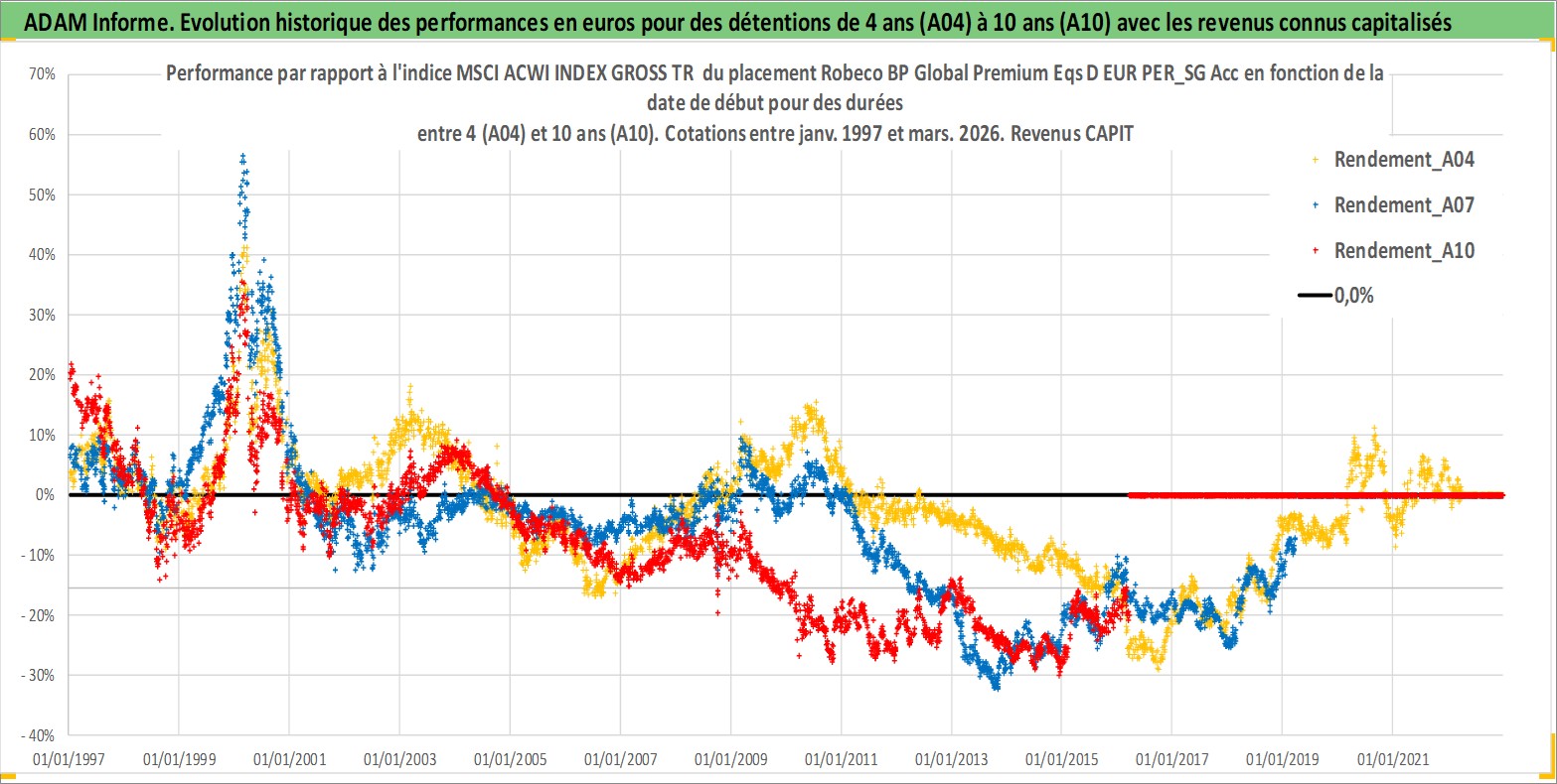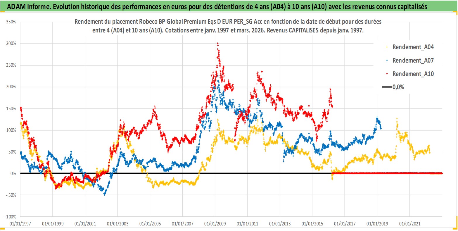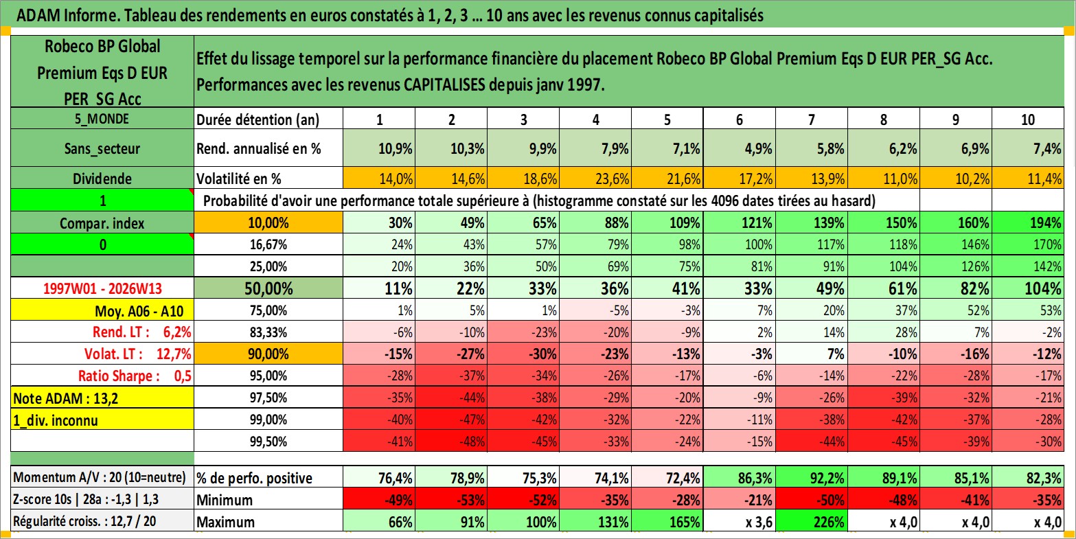 Site dédié aux investisseursPage dédiée sur site financeAnalyse des valorisations hebdomadaires du fonds Robeco BP Global Premium Eqs D EUR PER_SG Acc. Cet actif est cote en EUR. Les valorisations couvrent les semaines 1997W01 a 2026W13. Les revenus de cet actif financier sont pris en compte depuis la semaine 1997W01. La note globale ESG de cet actif est estimee a 8.0 (apres rebasage entre 0 et 20).