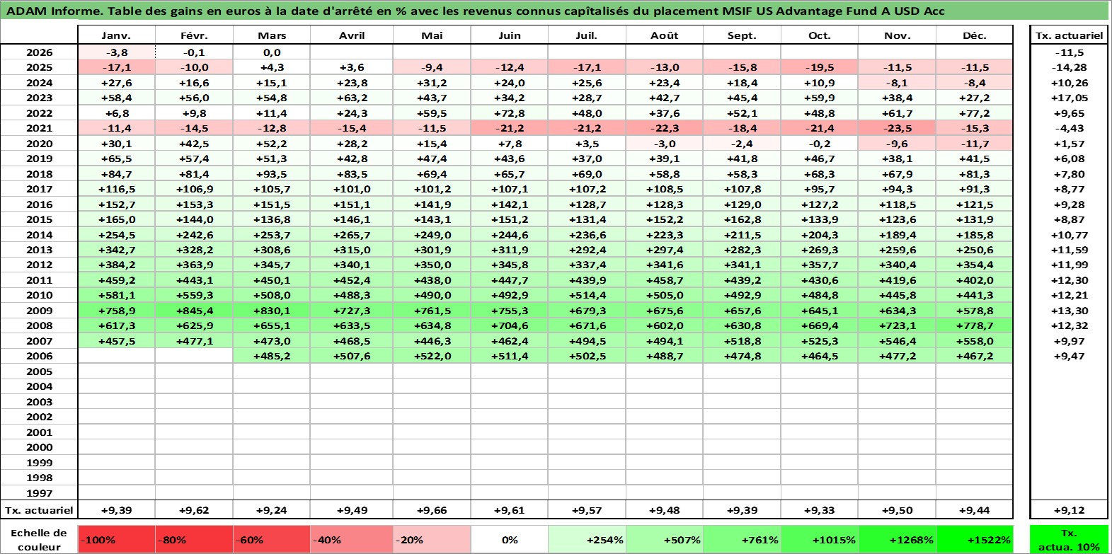 Dernière perfo 10 ans en %