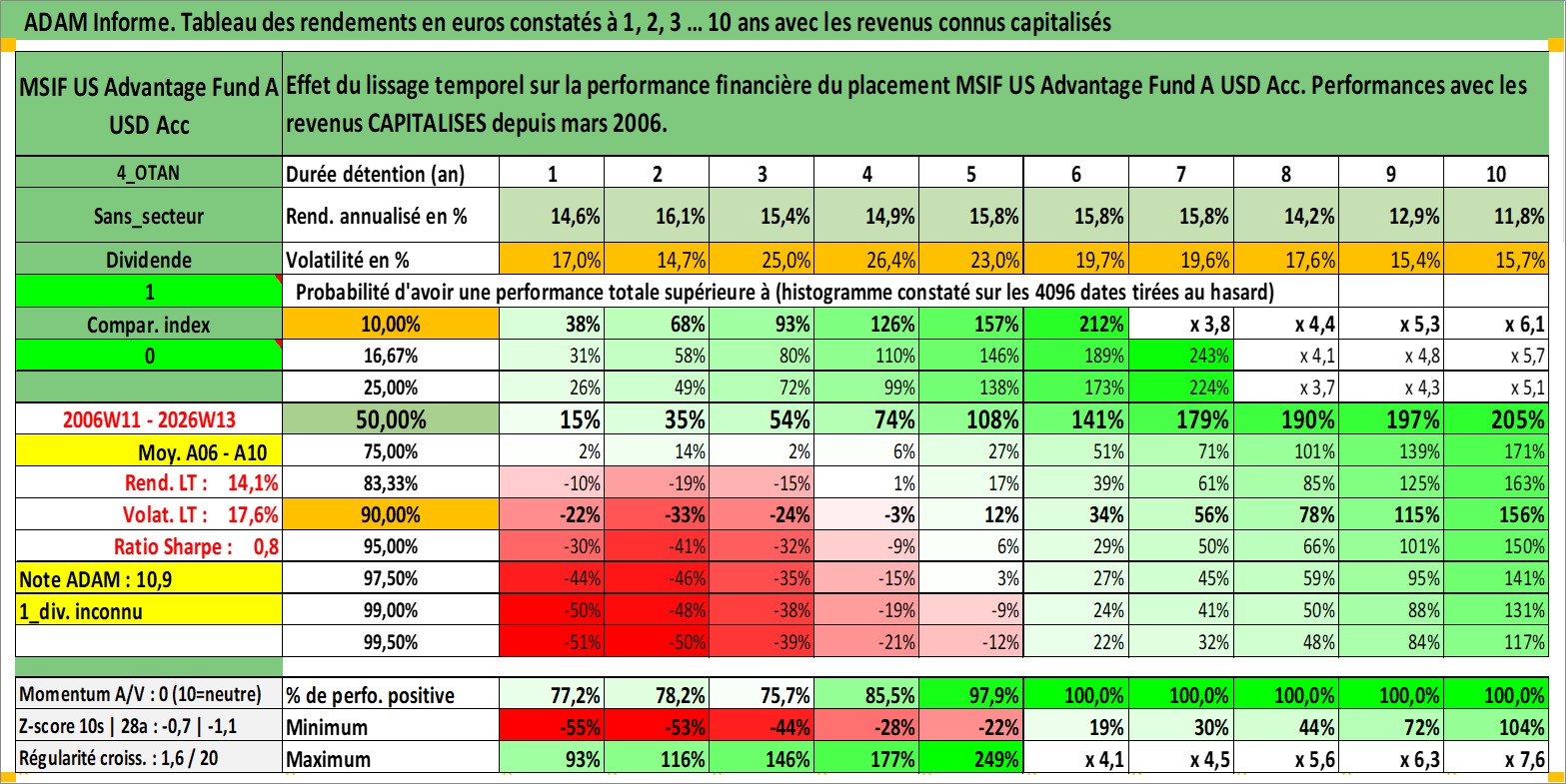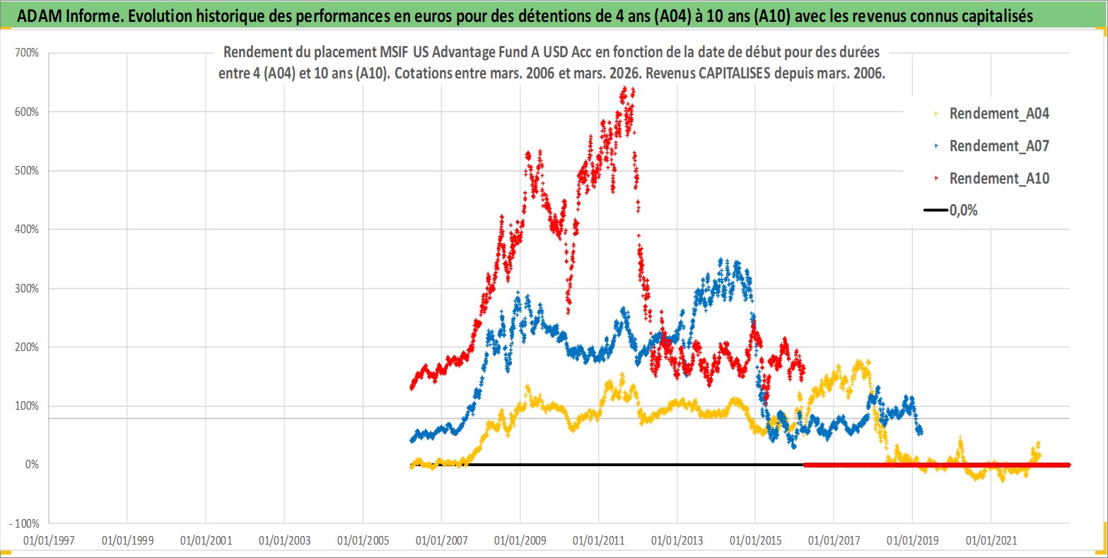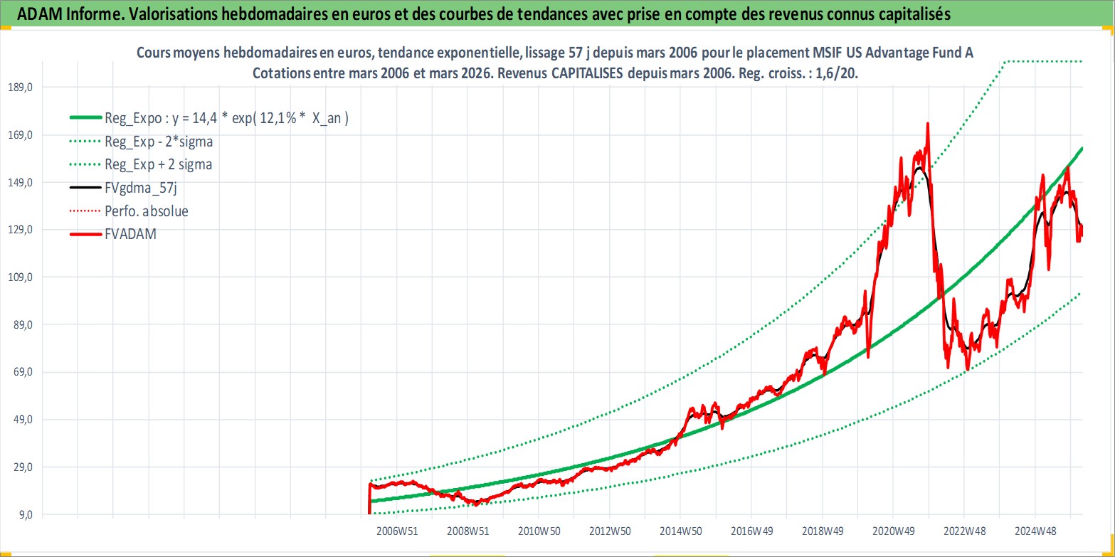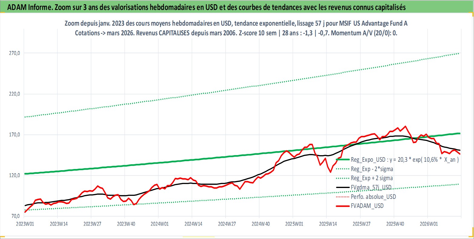 Site dédié aux investisseursPage dédiée sur site financeAnalyse des valorisations hebdomadaires du fonds MSIF US Advantage Fund A USD Acc. Cet actif est cote en USD. Les valorisations sont en contrevaleur EURO et couvrent les semaines 2006W11 a 2026W13. Les revenus de cet actif financier sont pris en compte depuis la semaine 2006W11. La note ESG de cet actif n'est pas connue.