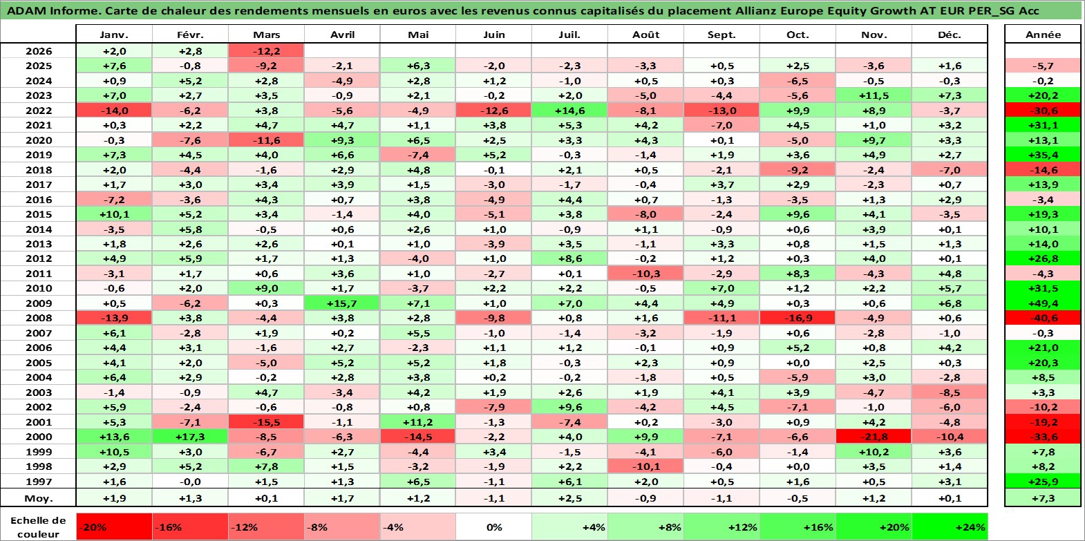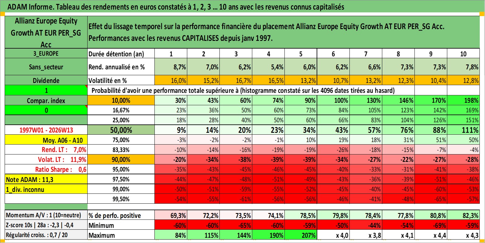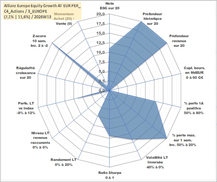 Site dédié aux investisseursPage dédiée sur site financeAnalyse des valorisations hebdomadaires du fonds Allianz Europe Equity Growth AT EUR PER_SG Acc. Cet actif est cote en EUR. Les valorisations couvrent les semaines 1997W01 a 2026W13. Les revenus de cet actif financier sont pris en compte depuis la semaine 1997W01. La note globale ESG de cet actif est estimee a 11.0 (apres rebasage entre 0 et 20).