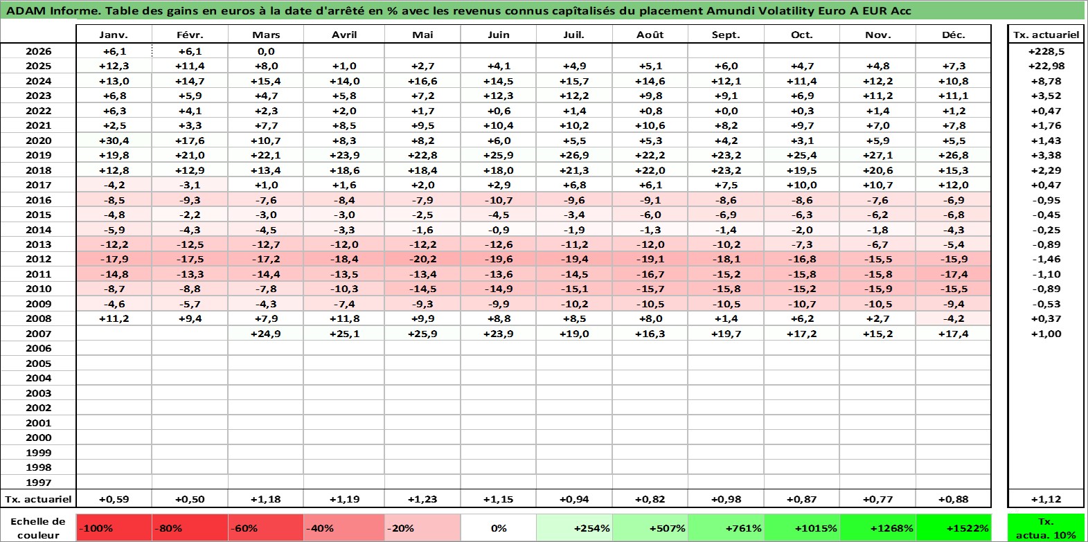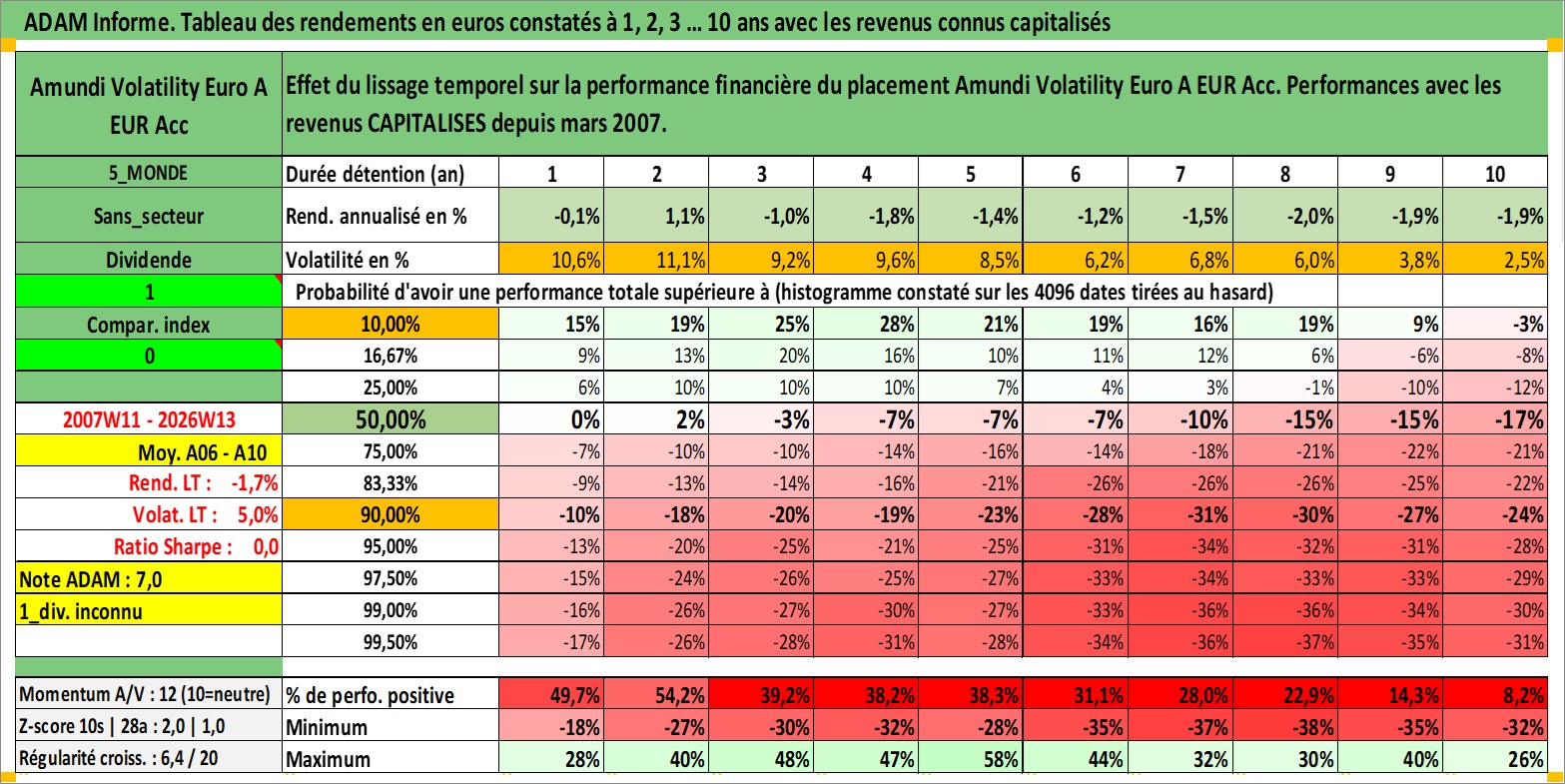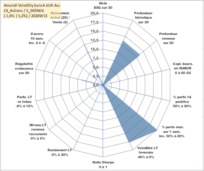 Site dédié aux investisseursPage dédiée sur site financeAnalyse des valorisations hebdomadaires du fonds Amundi Volatility Euro A EUR Acc. Cet actif est cote en EUR. Les valorisations couvrent les semaines 2007W11 a 2026W13. Les revenus de cet actif financier sont pris en compte depuis la semaine 2007W11. La note ESG de cet actif n'est pas connue.