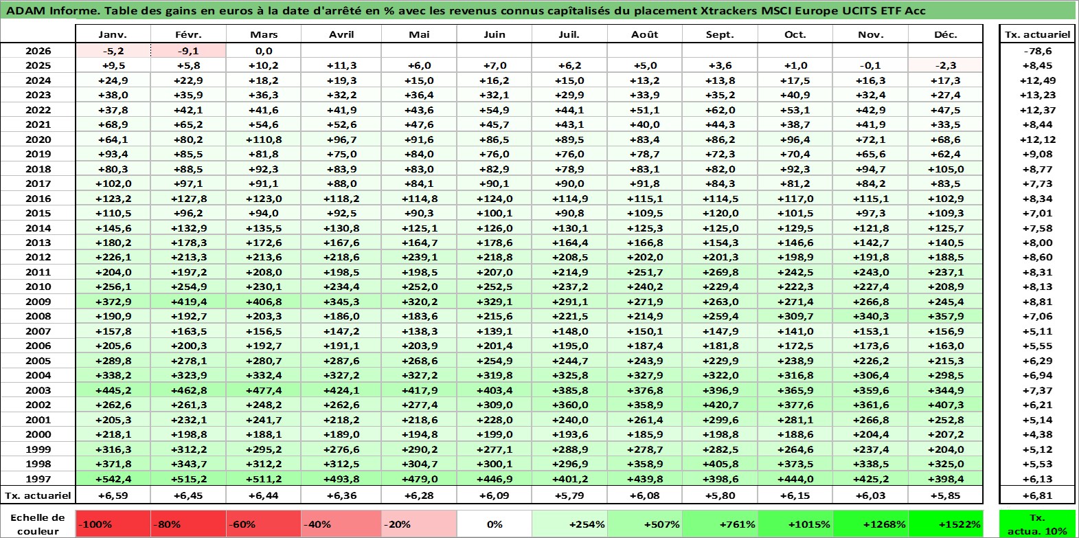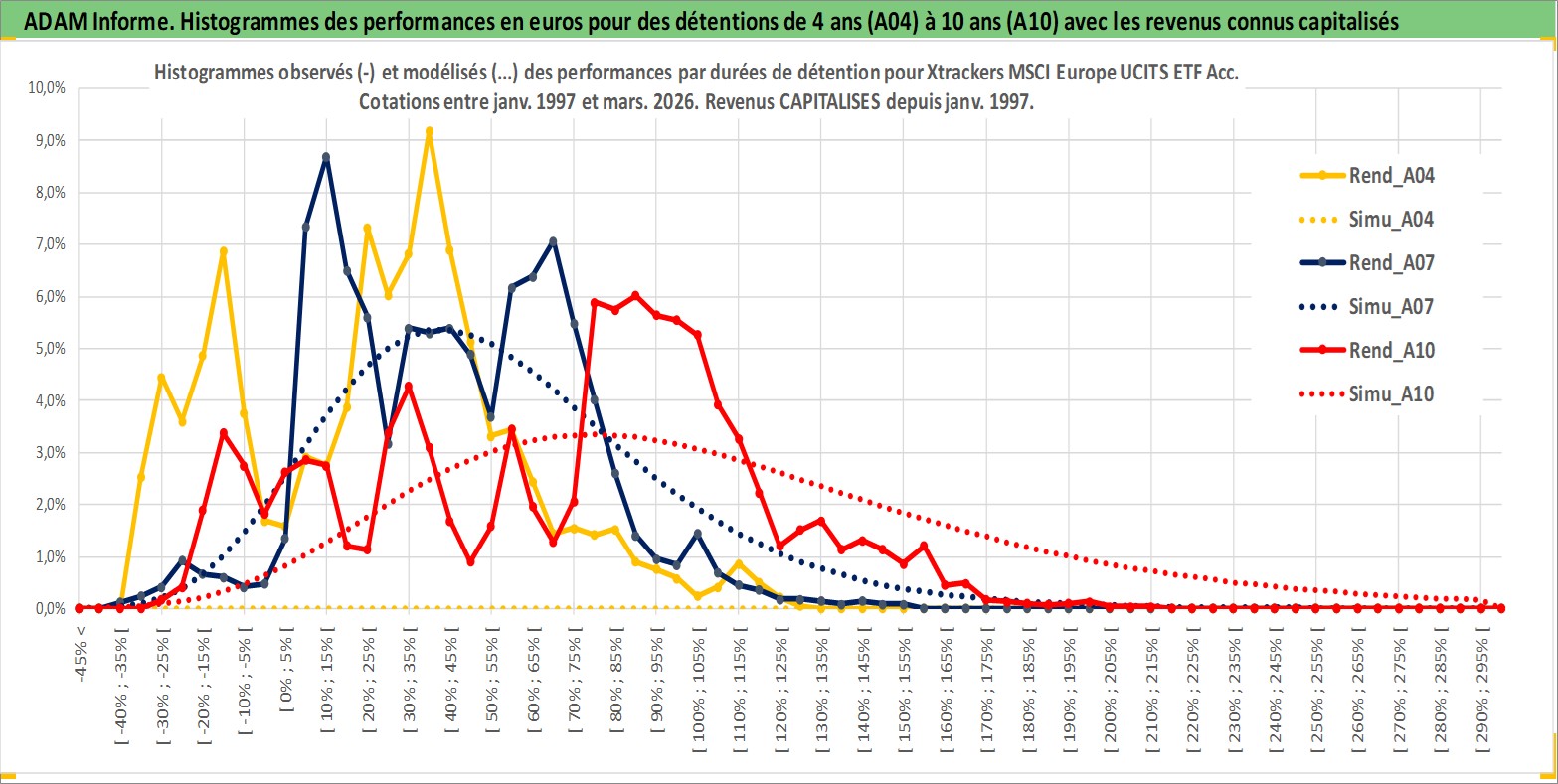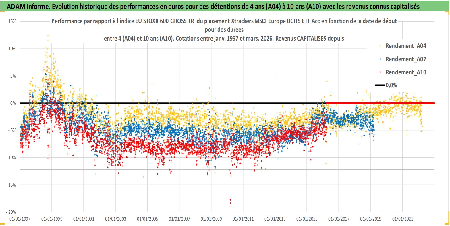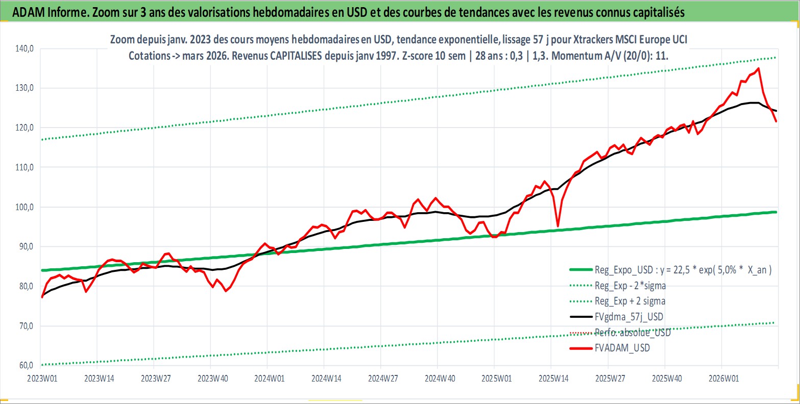 Site dédié aux investisseursPage dédiée sur site financeAnalyse des valorisations hebdomadaires du fonds Xtrackers MSCI Europe UCITS ETF Acc. Cet actif est cote en USD. Les valorisations sont en contrevaleur EURO et couvrent les semaines 1997W01 a 2026W13. Les revenus de cet actif financier sont pris en compte depuis la semaine 1997W01. La note ESG de cet actif n'est pas connue.