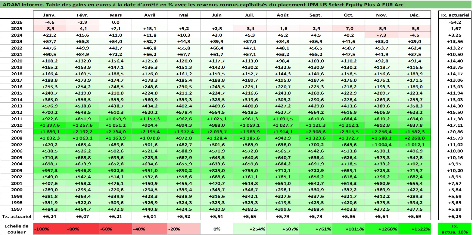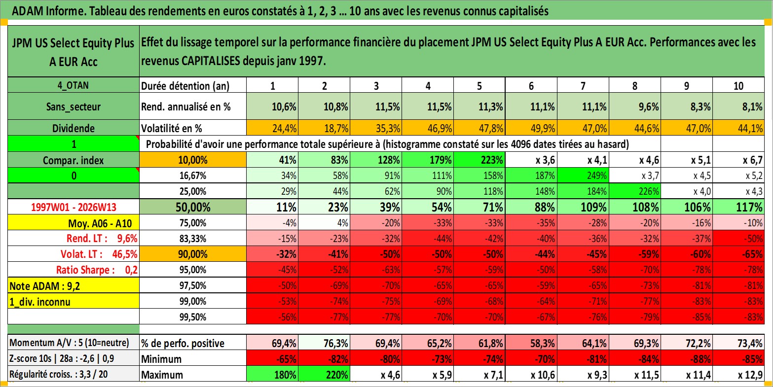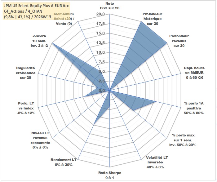 Site dédié aux investisseursPage dédiée sur site financeAnalyse des valorisations hebdomadaires du fonds JPM US Select Equity Plus A EUR Acc. Cet actif est cote en EUR. Les valorisations couvrent les semaines 1997W01 a 2026W13. Les revenus de cet actif financier sont pris en compte depuis la semaine 1997W01. La note ESG de cet actif n'est pas connue.