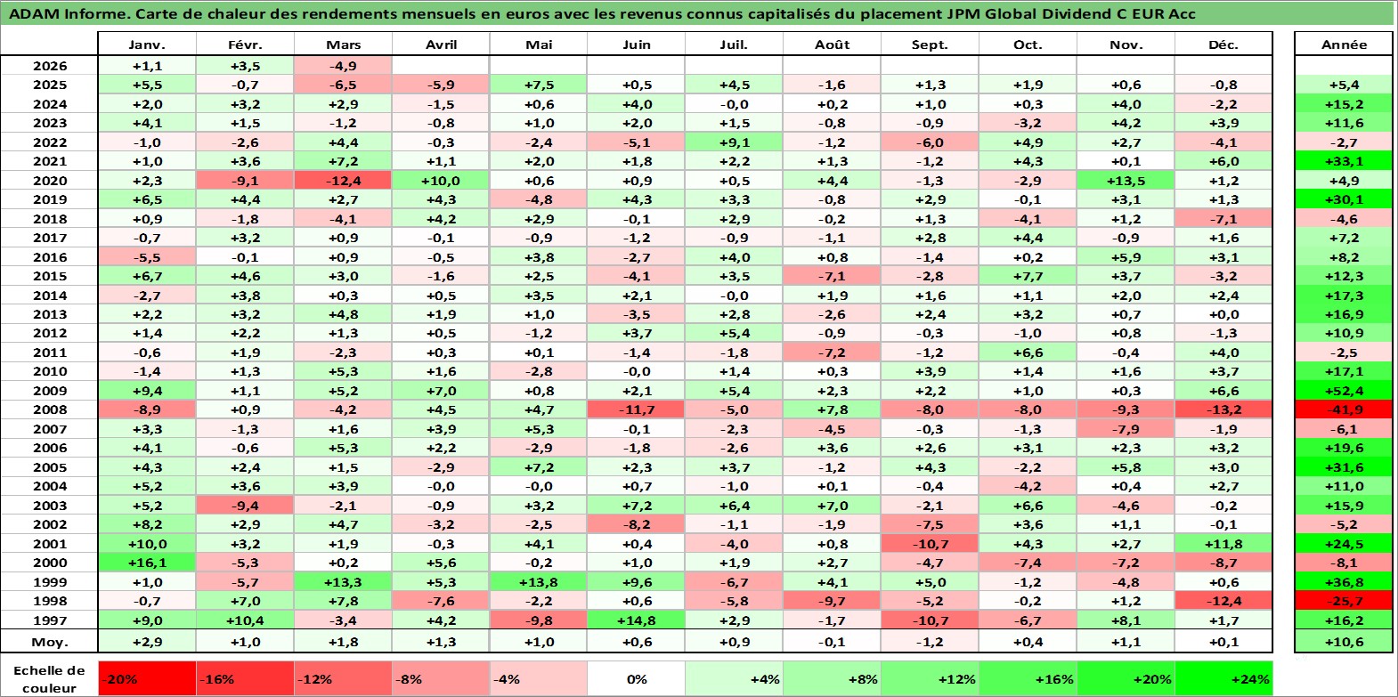 Site dédié aux investisseursPage dédiée sur site financeAnalyse des valorisations hebdomadaires du fonds JPM Global Dividend C EUR Acc. Cet actif est cote en EUR. Les valorisations couvrent les semaines 1997W01 a 2026W13. Les revenus de cet actif financier sont pris en compte depuis la semaine 1997W01. La note ESG de cet actif n'est pas connue.