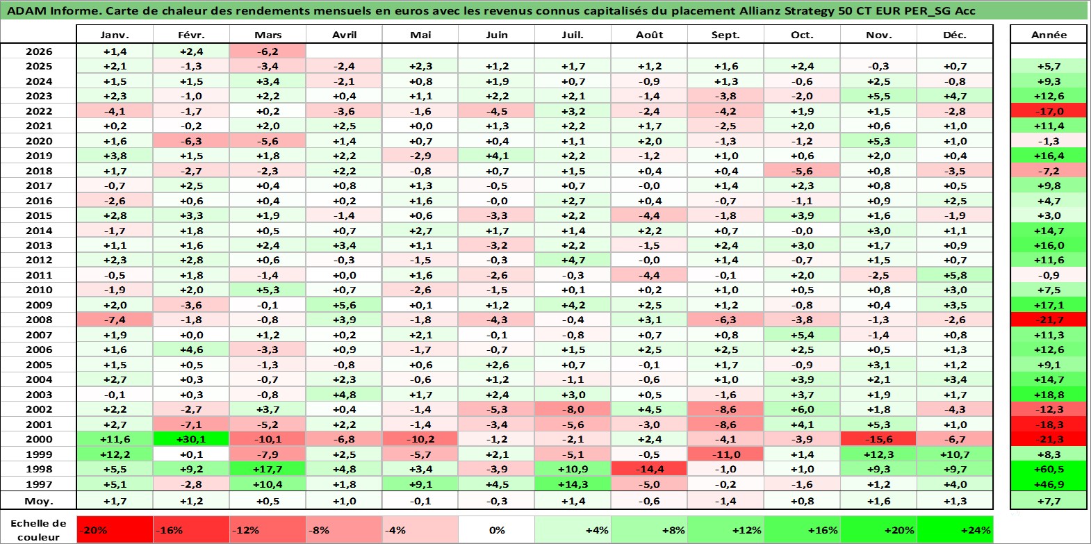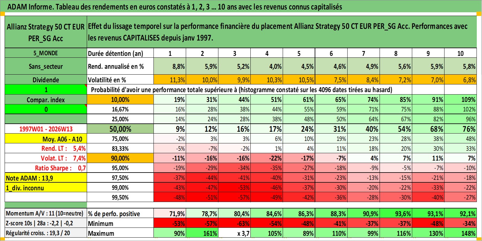 Site dédié aux investisseursPage dédiée sur site financeAnalyse des valorisations hebdomadaires du fonds Allianz Strategy 50 CT EUR PER_SG Acc. Cet actif est cote en EUR. Les valorisations couvrent les semaines 1997W01 a 2026W13. Les revenus de cet actif financier sont pris en compte depuis la semaine 1997W01. La note ESG de cet actif n'est pas connue.