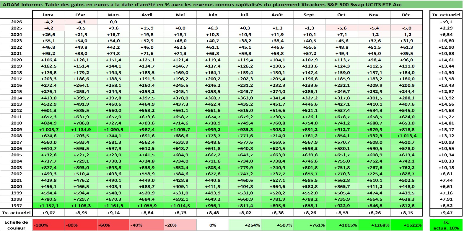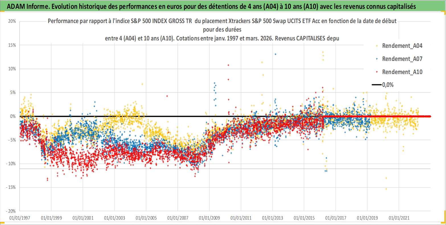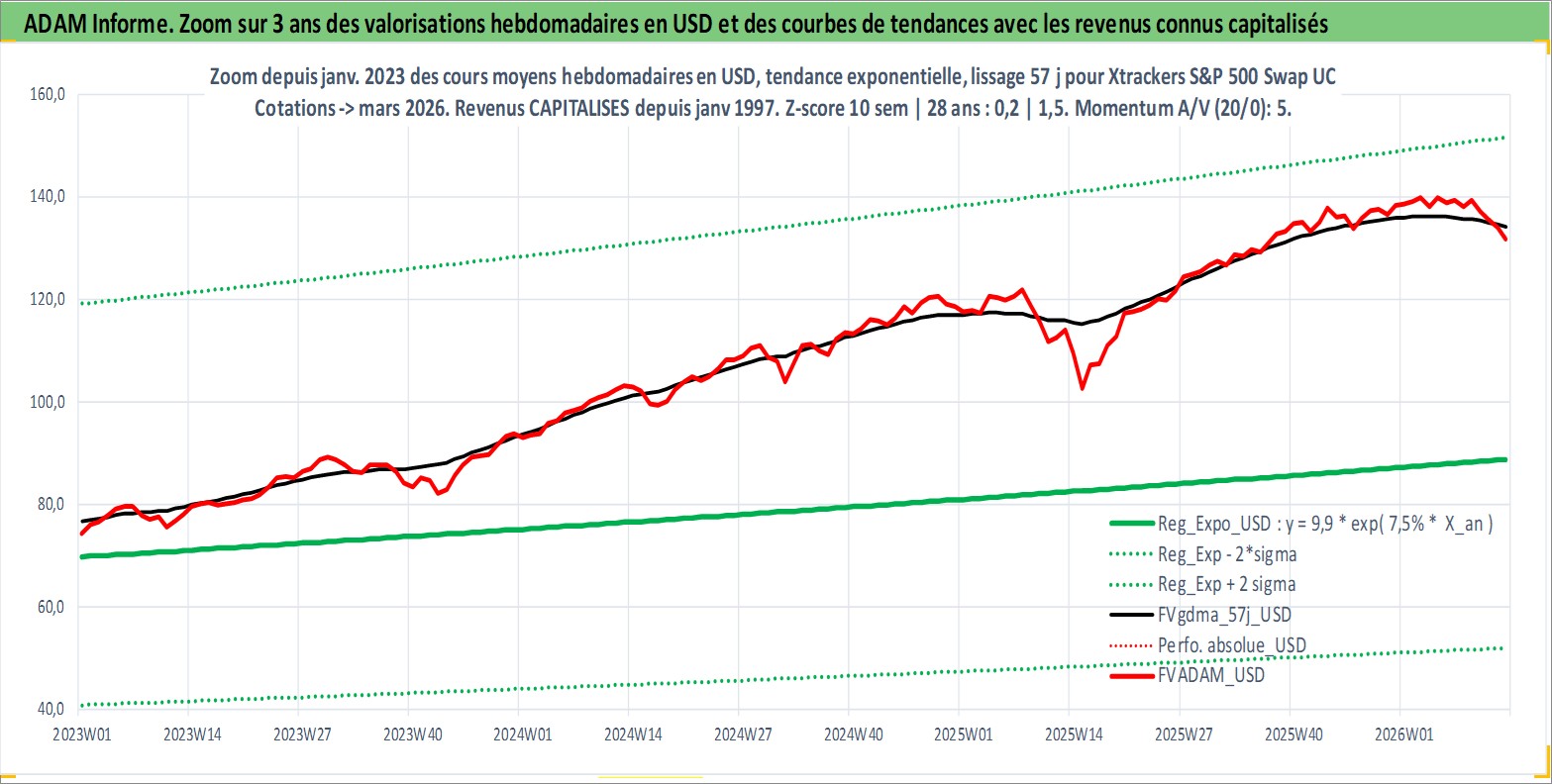 Site dédié aux investisseursPage dédiée sur site financeAnalyse des valorisations hebdomadaires du fonds Xtrackers S&P 500 Swap UCITS ETF Acc. Cet actif est cote en USD. Les valorisations sont en contrevaleur EURO et couvrent les semaines 1997W01 a 2026W13. Les revenus de cet actif financier sont pris en compte depuis la semaine 1997W01. La note ESG de cet actif n'est pas connue.