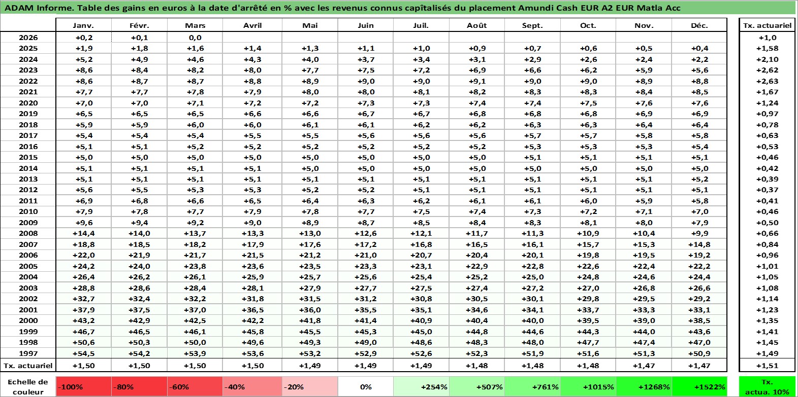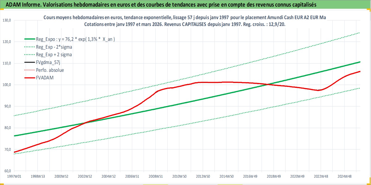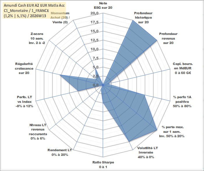 Site dédié aux investisseursPage dédiée sur site financeAnalyse des valorisations hebdomadaires du fonds Amundi Cash EUR A2 EUR Matla Acc. Cet actif est cote en EUR. Les valorisations couvrent les semaines 1997W01 a 2026W13. Les revenus de cet actif financier sont pris en compte depuis la semaine 1997W01. La note ESG de cet actif n'est pas connue.