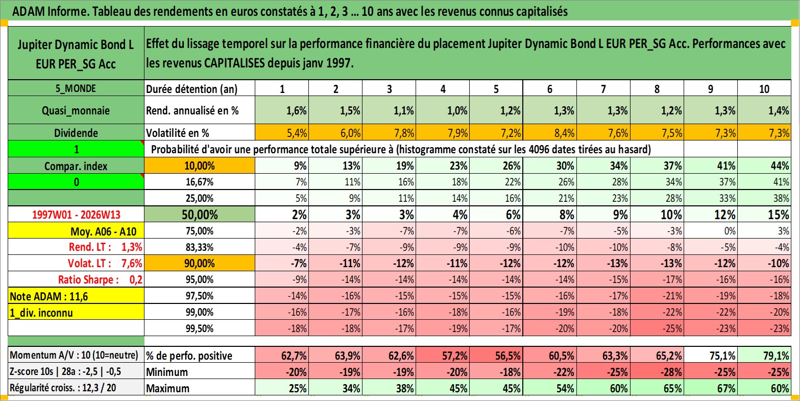 Site dédié aux investisseursPage dédiée sur site financeAnalyse des valorisations hebdomadaires du fonds Jupiter Dynamic Bond L EUR PER_SG Acc. Cet actif est cote en EUR. Les valorisations couvrent les semaines 1997W01 a 2026W13. Les revenus de cet actif financier sont pris en compte depuis la semaine 1997W01. La note ESG de cet actif n'est pas connue.