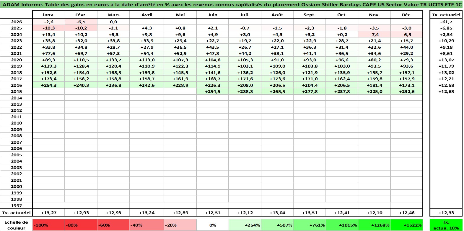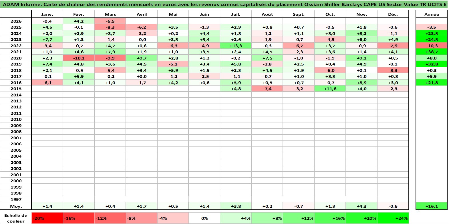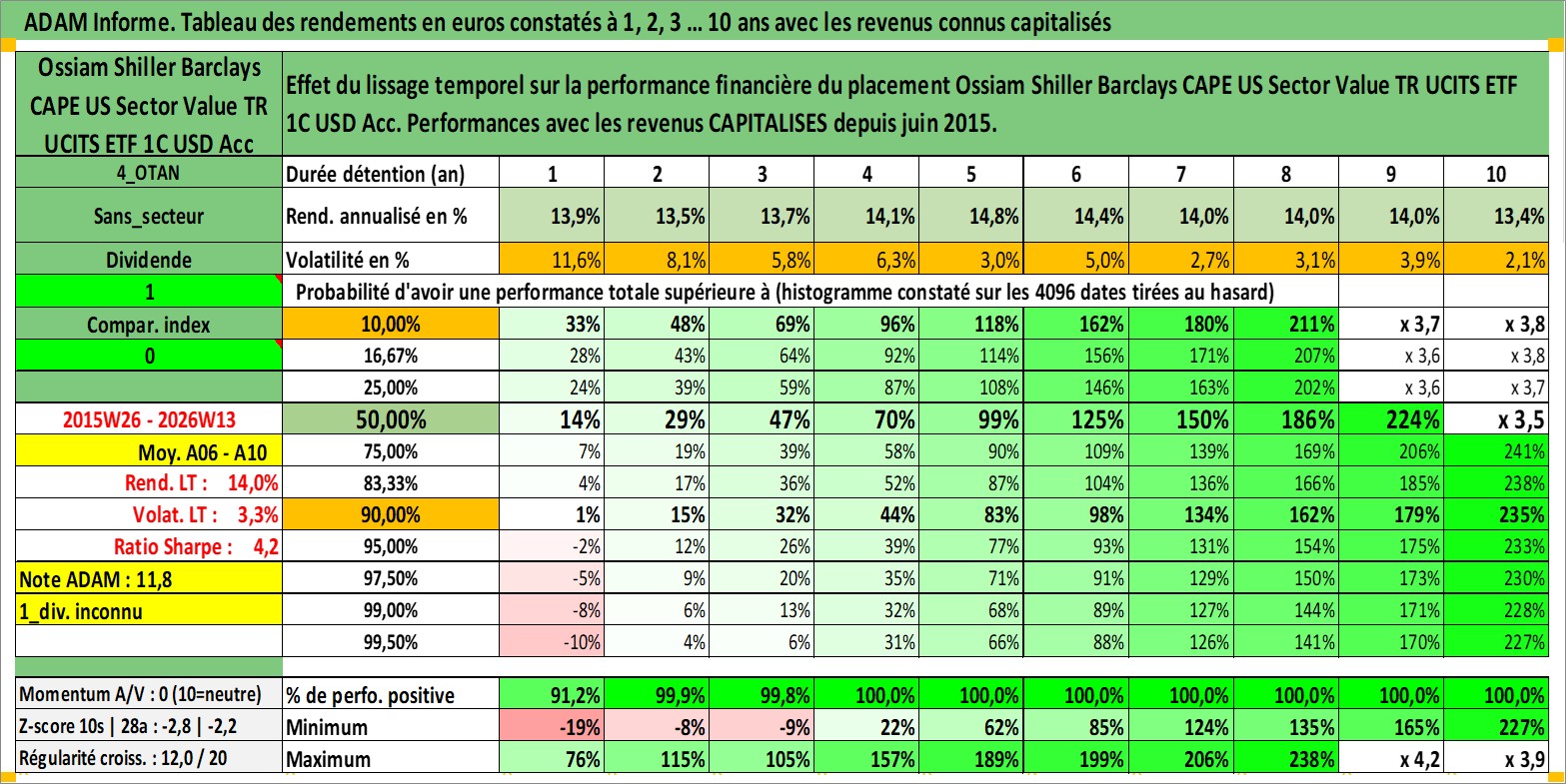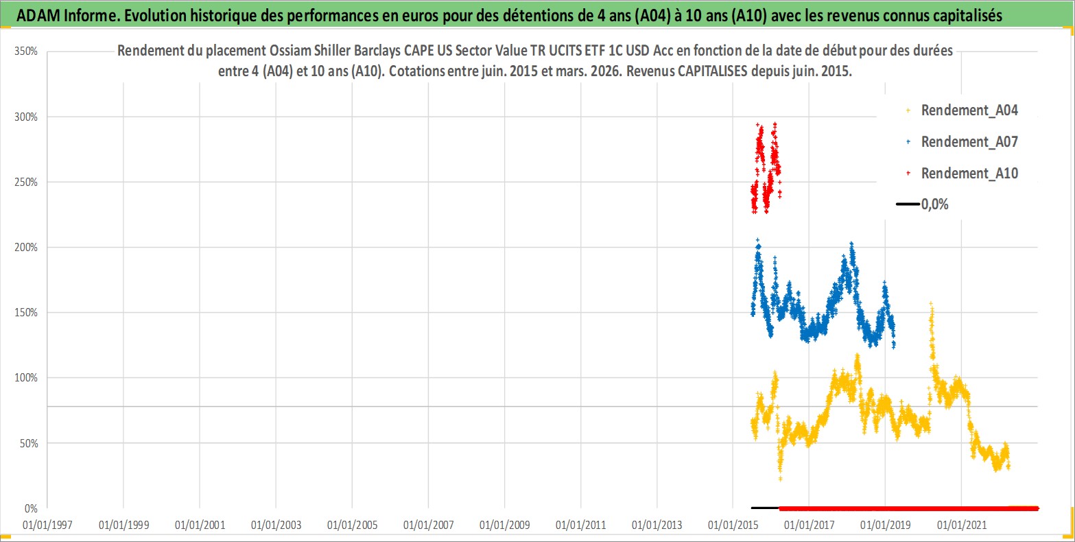 Site dédié aux investisseursPage dédiée sur site financeAnalyse des valorisations hebdomadaires du fonds Ossiam Shiller Barclays CAPE US Sector Value TR UCITS ETF 1C USD Acc. Cet actif est cote en USD. Les valorisations sont en contrevaleur EURO et couvrent les semaines 2015W26 a 2026W13. Les revenus de cet actif financier sont pris en compte depuis la semaine 2015W26. La note ESG de cet actif n'est pas connue.