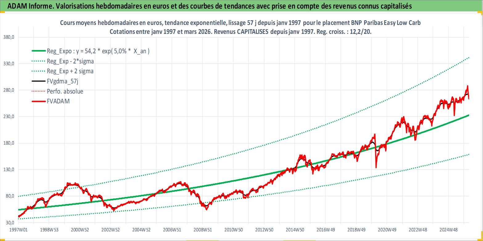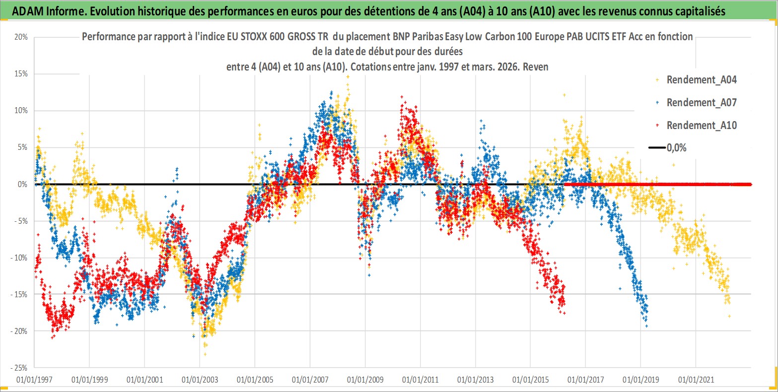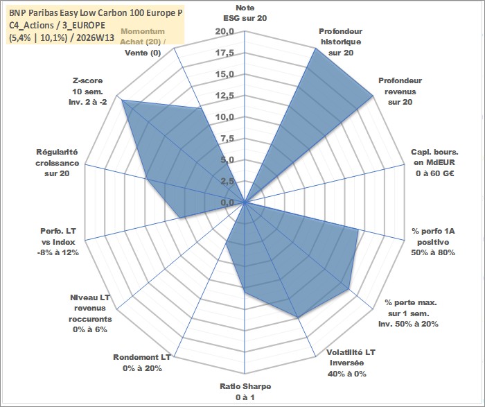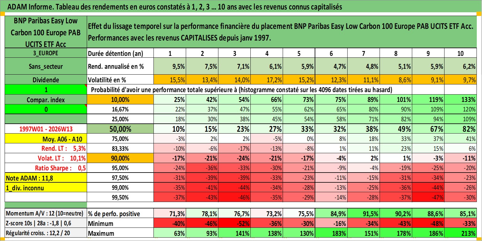 Site dédié aux investisseursPage dédiée sur site financeAnalyse des valorisations hebdomadaires du fonds BNP Paribas Easy Low Carbon 100 Europe PAB UCITS ETF Acc. Cet actif est cote en EUR. Les valorisations couvrent les semaines 1997W01 a 2026W13. Les revenus de cet actif financier sont pris en compte depuis la semaine 1997W01. La note ESG de cet actif n'est pas connue.