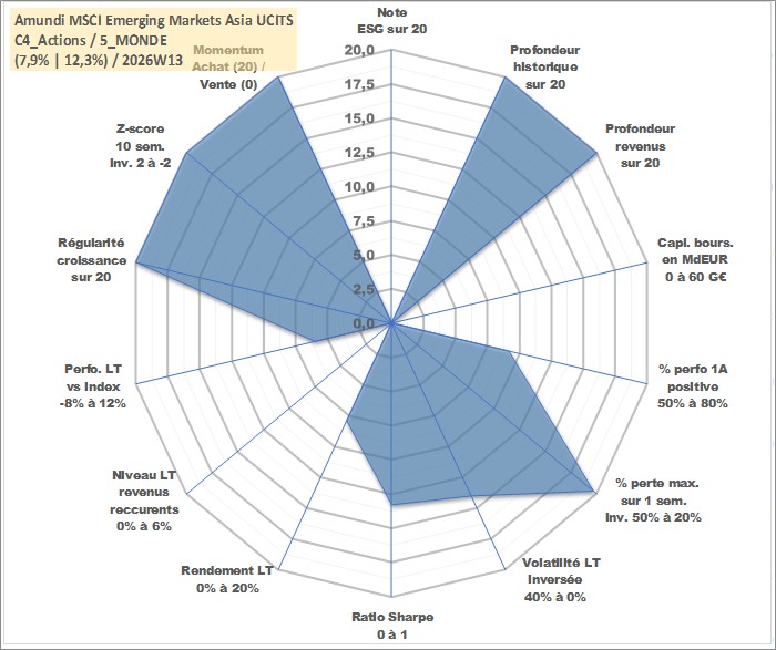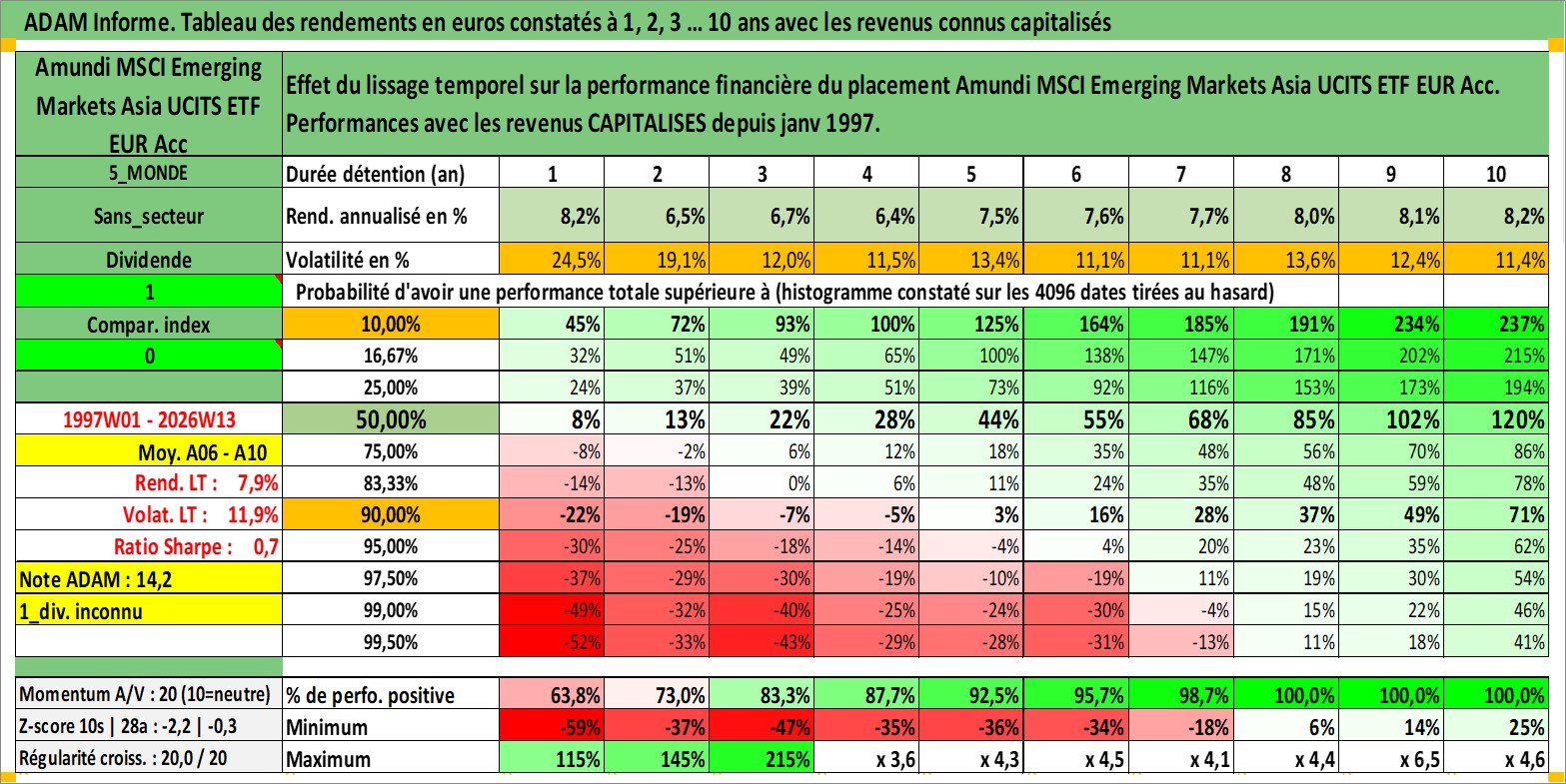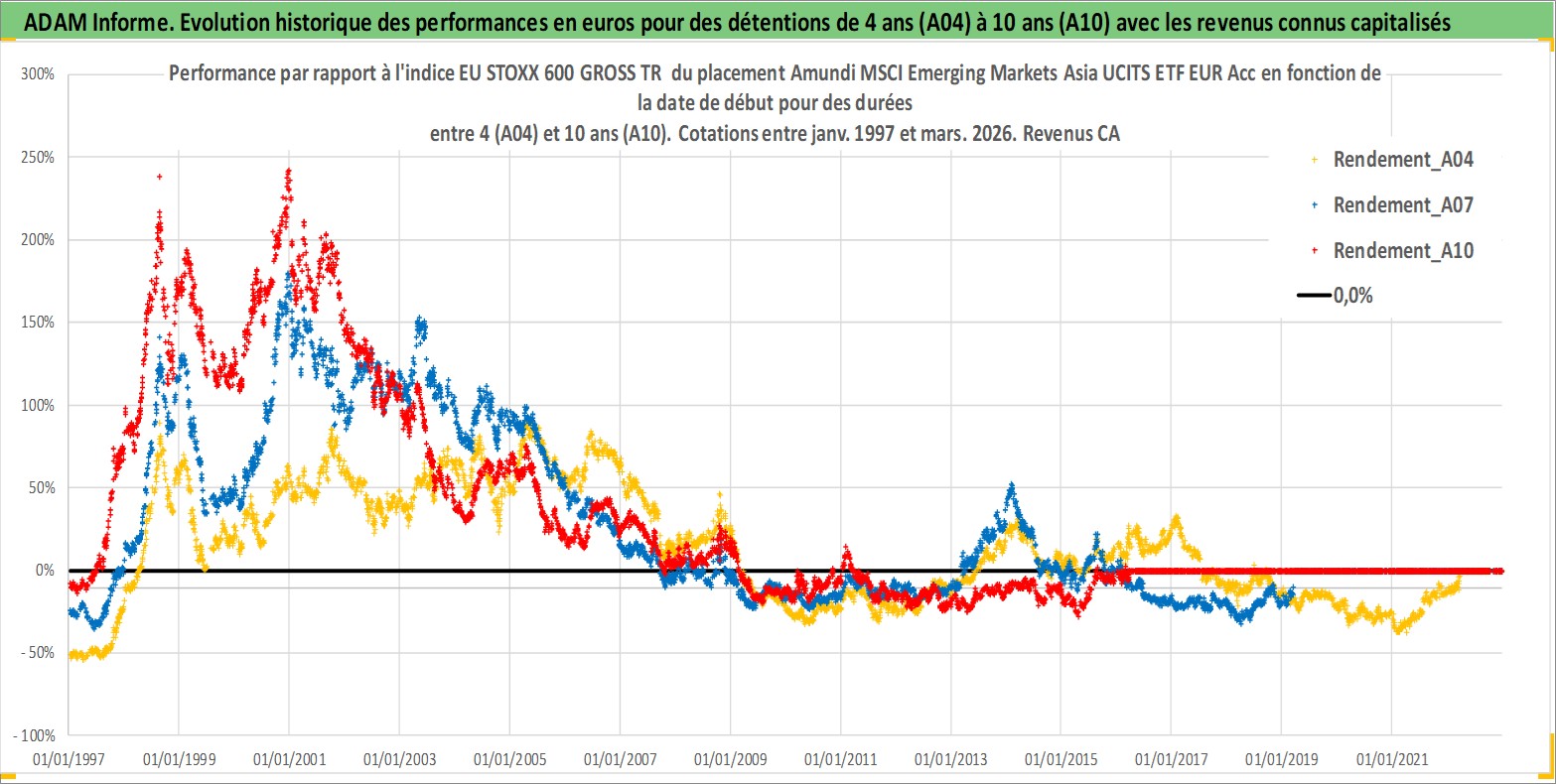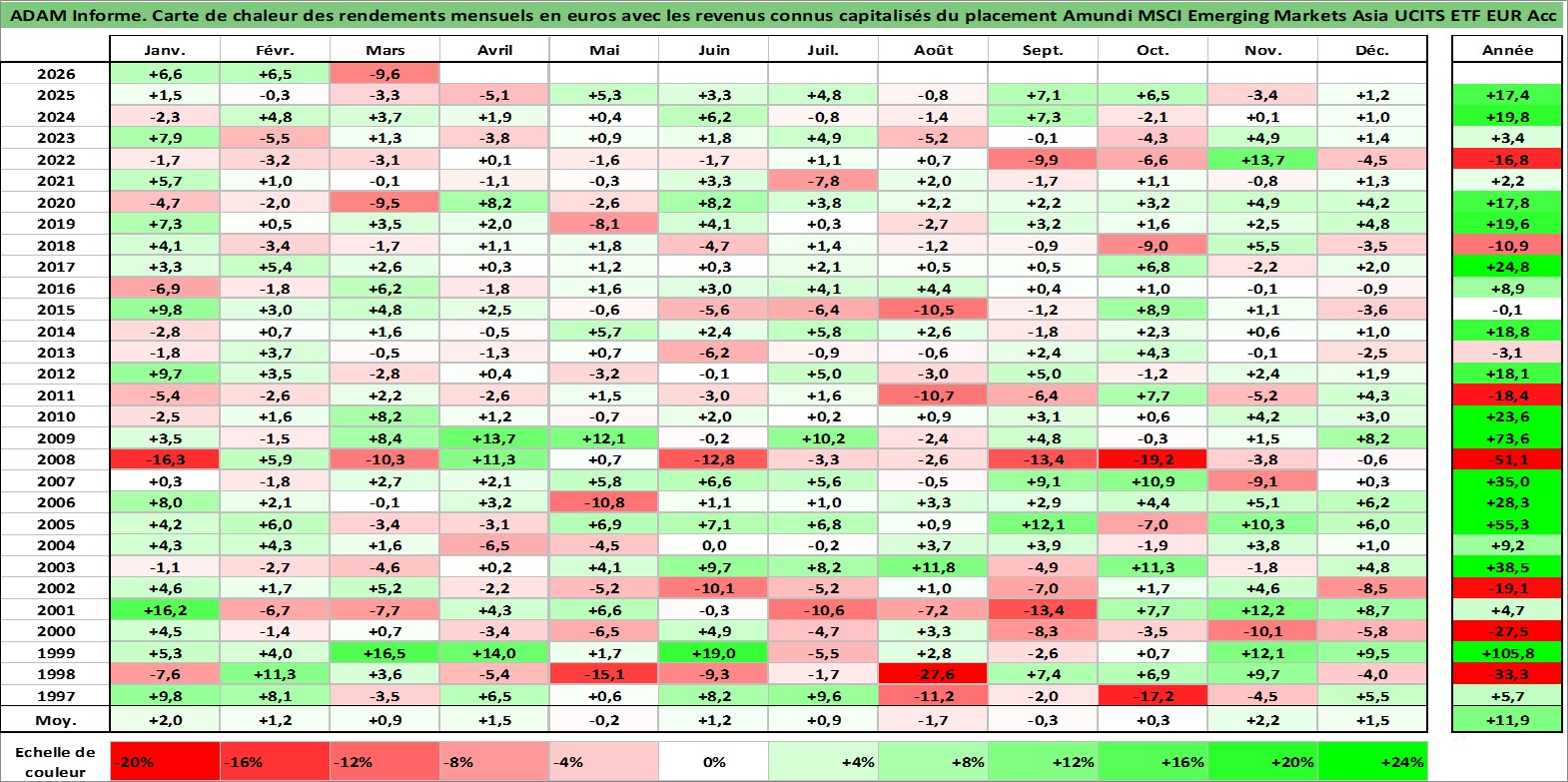 Site dédié aux investisseursPage dédiée sur site financeAnalyse des valorisations hebdomadaires du fonds Amundi MSCI Emerging Markets Asia UCITS ETF EUR Acc. Cet actif est cote en EUR. Les valorisations couvrent les semaines 1997W01 a 2026W13. Les revenus de cet actif financier sont pris en compte depuis la semaine 1997W01. La note ESG de cet actif n'est pas connue.