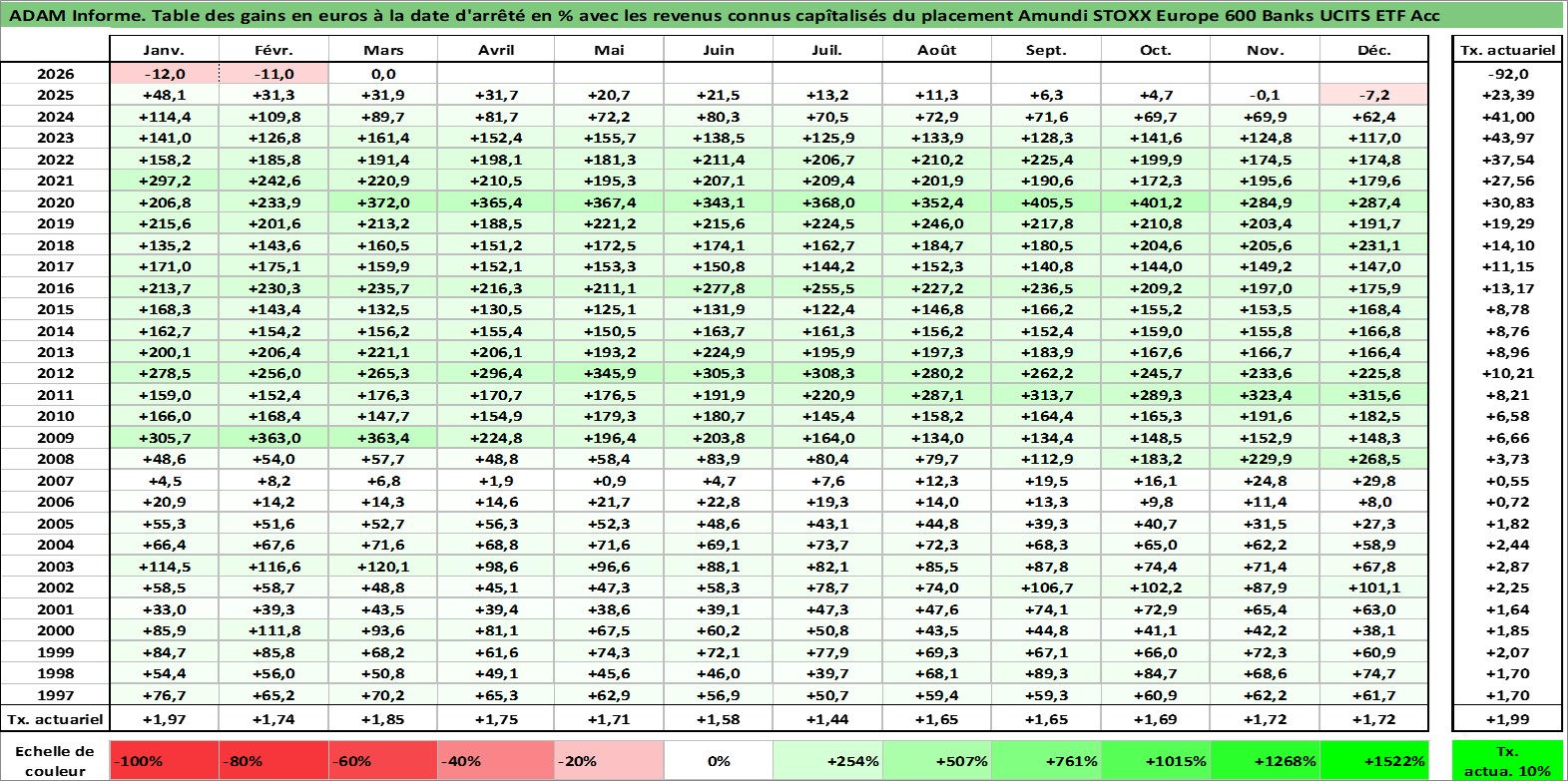 Site dédié aux investisseursPage dédiée sur site financeAnalyse des valorisations hebdomadaires du fonds Amundi STOXX Europe 600 Banks UCITS ETF Acc. Cet actif est cote en EUR. Les valorisations couvrent les semaines 1997W01 a 2026W13. Les revenus de cet actif financier sont pris en compte depuis la semaine 1997W01. La note ESG de cet actif n'est pas connue.