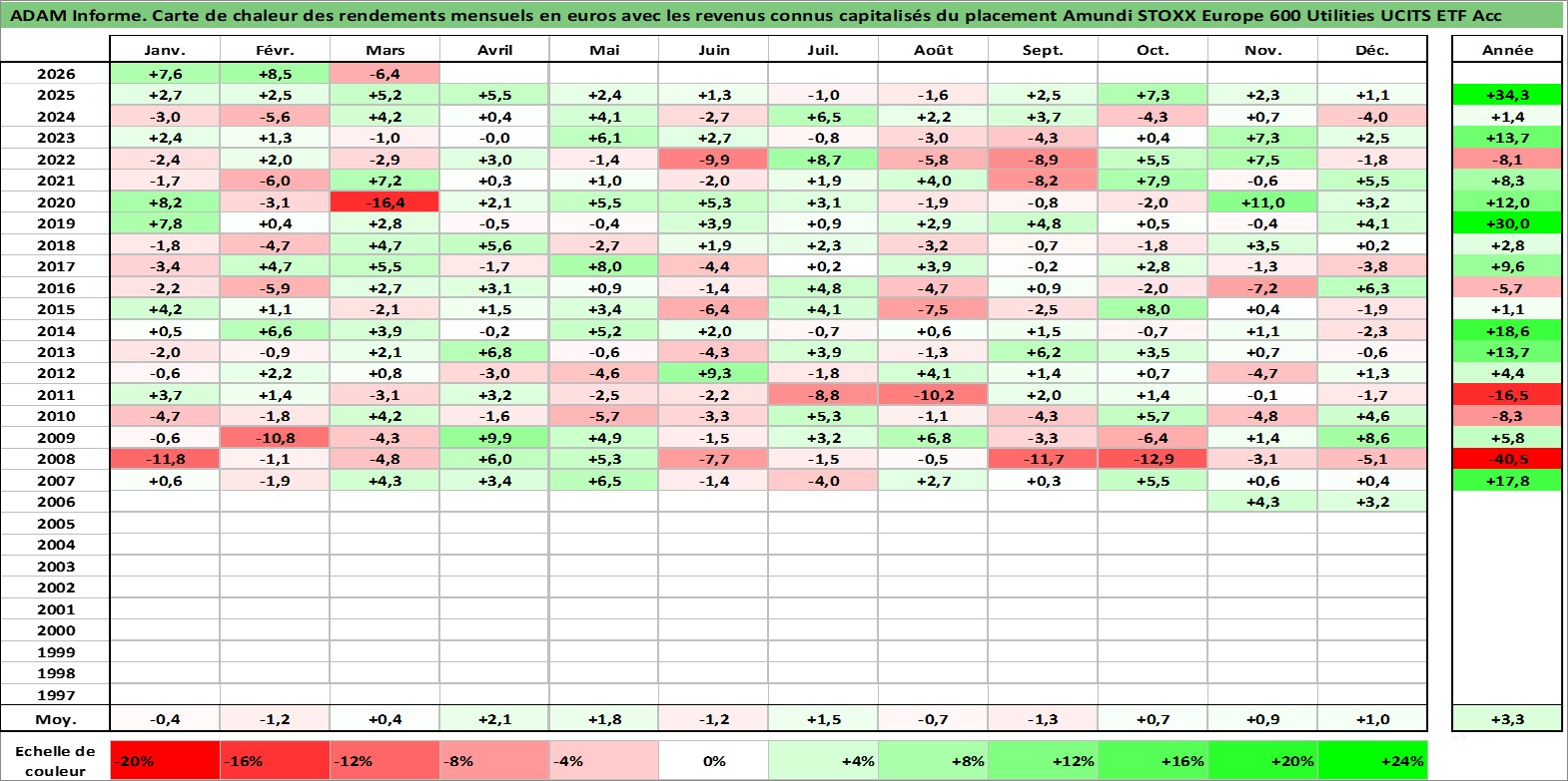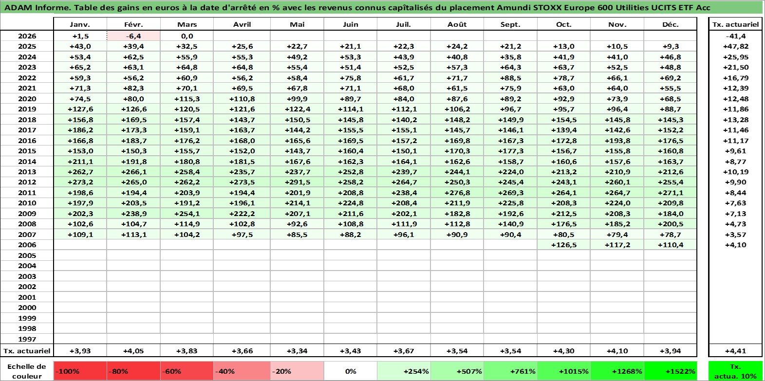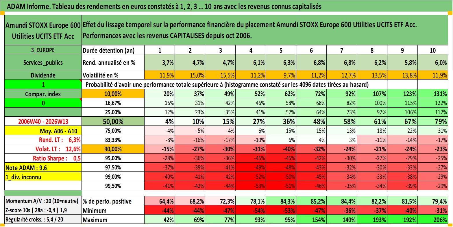 Site dédié aux investisseursPage dédiée sur site financeAnalyse des valorisations hebdomadaires du fonds Amundi STOXX Europe 600 Utilities UCITS ETF Acc. Cet actif est cote en EUR. Les valorisations couvrent les semaines 2006W40 a 2026W13. Les revenus de cet actif financier sont pris en compte depuis la semaine 2006W40. La note ESG de cet actif n'est pas connue.