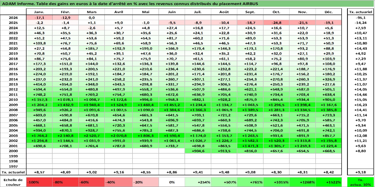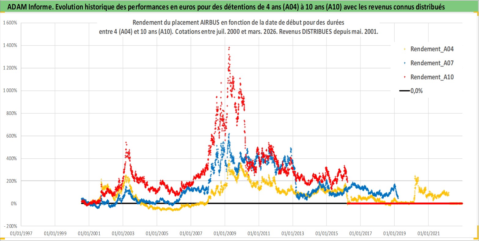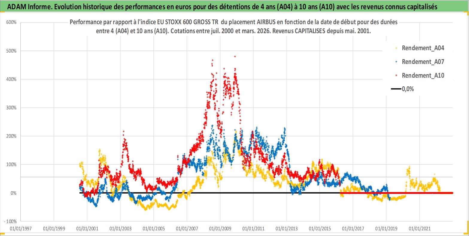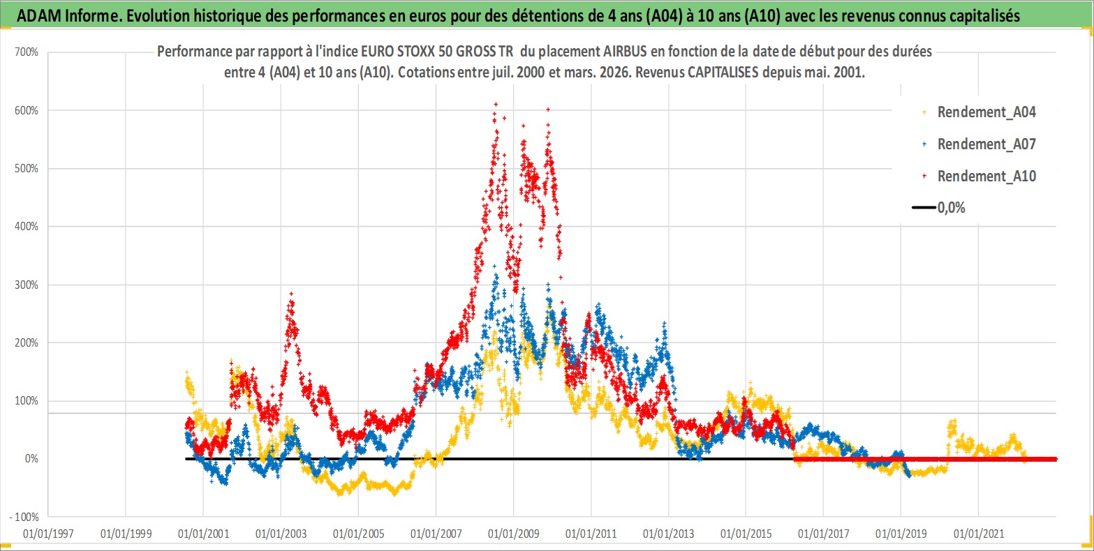 Site dédié aux investisseursPage dédiée sur site financeAnalyse des valorisations hebdomadaires de l'action AIRBUS. Cet actif est cote en EUR. Les valorisations couvrent les semaines 2000W28 a 2026W13. Les revenus de cet actif financier sont pris en compte depuis la semaine 2001W20. La note globale ESG de cet actif est estimee a 7.0 (apres rebasage entre 0 et 20).