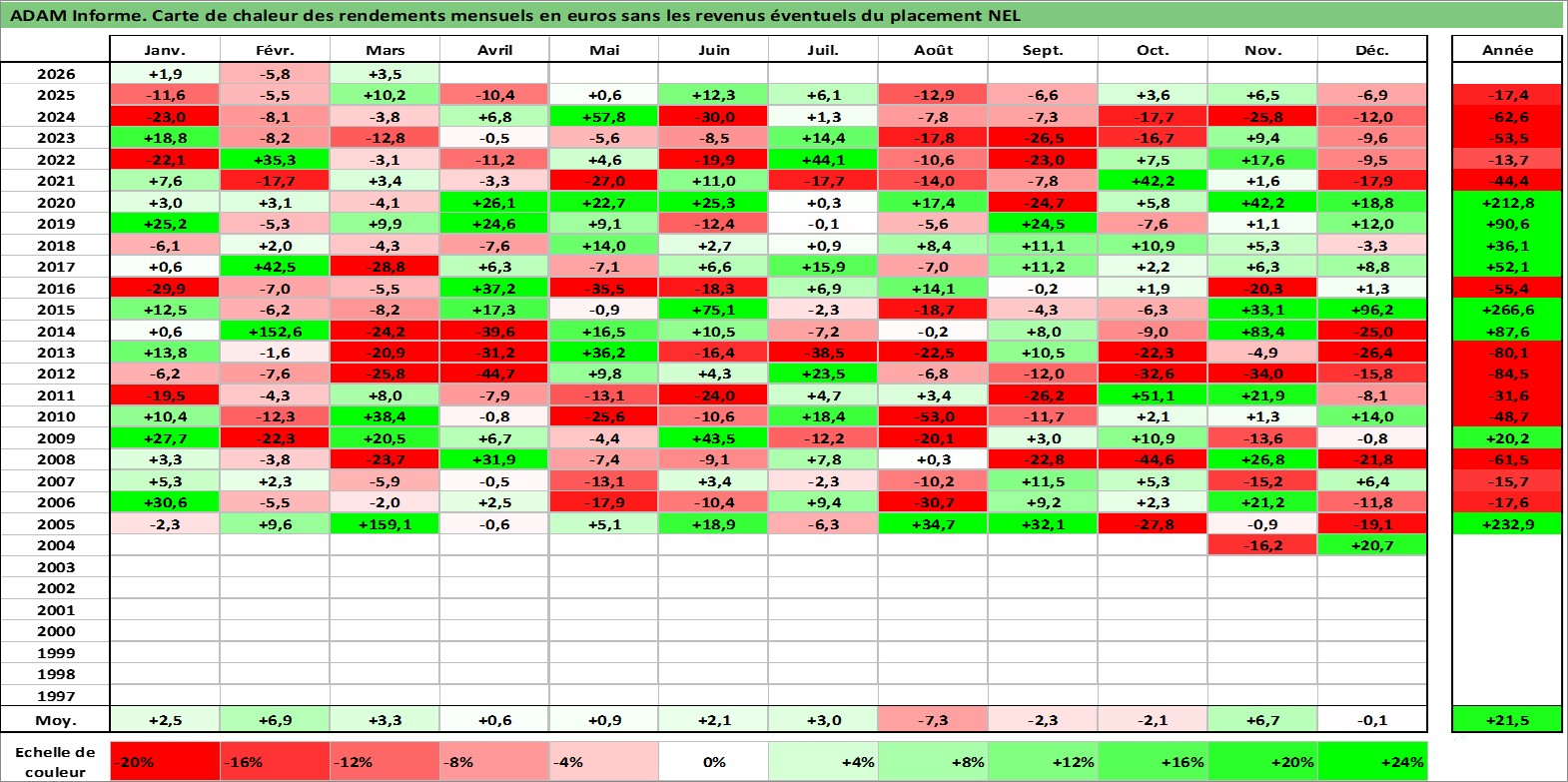Site dédié aux investisseursPage dédiée sur site financeAnalyse des valorisations hebdomadaires de l'action NEL. Cet actif est cote en NOK. Les valorisations sont en contrevaleur EURO et couvrent les semaines 2004W42 a 2026W13. Les revenus de cet actif financier ne sont pas connus car non existants ou non disponibles sur le site Yahoo Finance. La note ESG de cet actif n'est pas connue.
