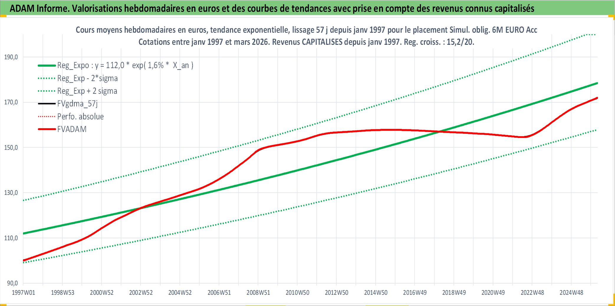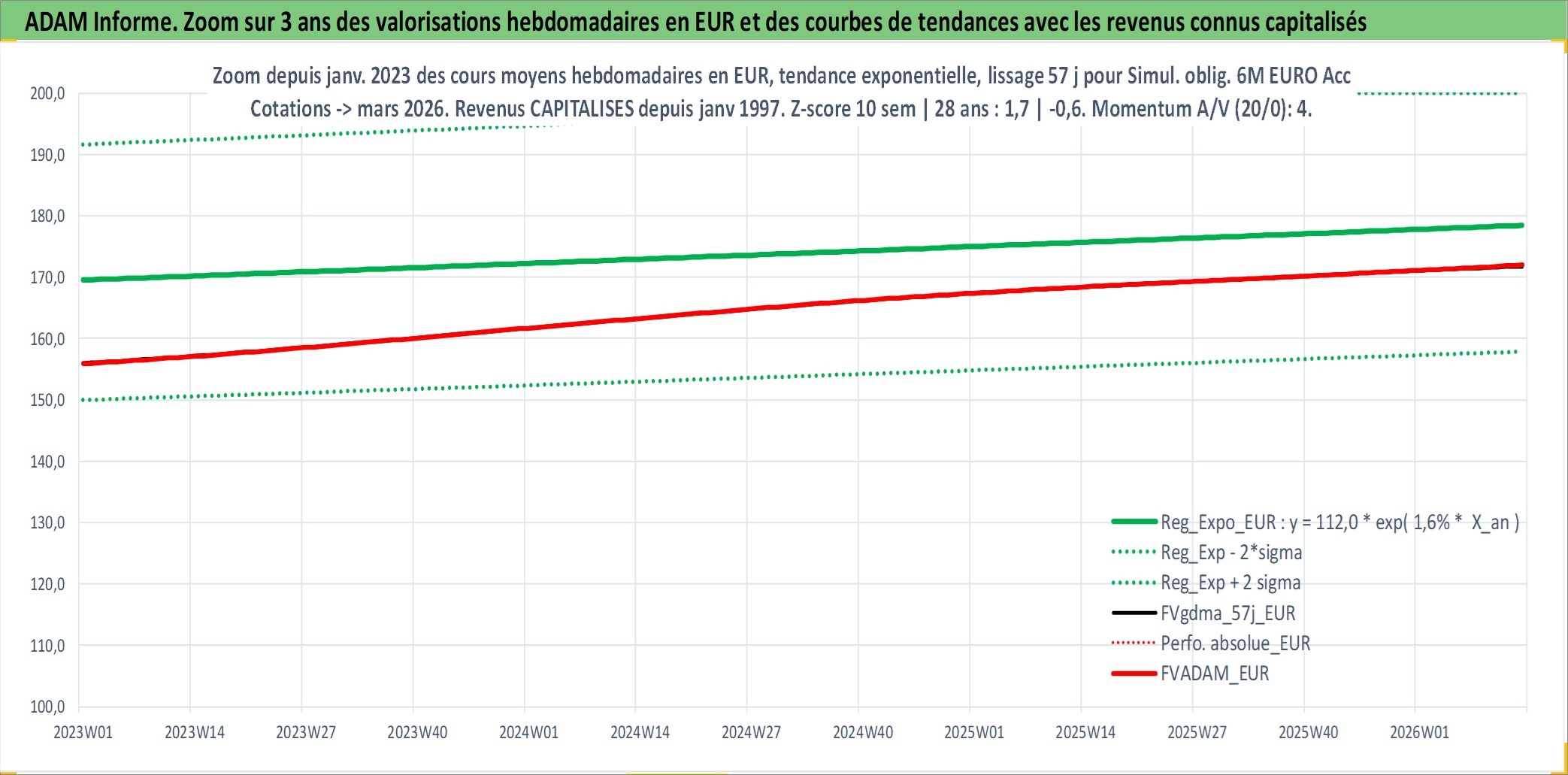 Site dédié aux investisseursPage dédiée sur site financeAnalyse des valorisations hebdomadaires de l'action Simul. oblig. 6M EURO Acc. Cet actif est cote en EUR. Les valorisations couvrent les semaines 1997W01 a 2026W13. Les revenus de cet actif financier sont pris en compte depuis la semaine 1997W01. La note ESG de cet actif n'est pas connue.