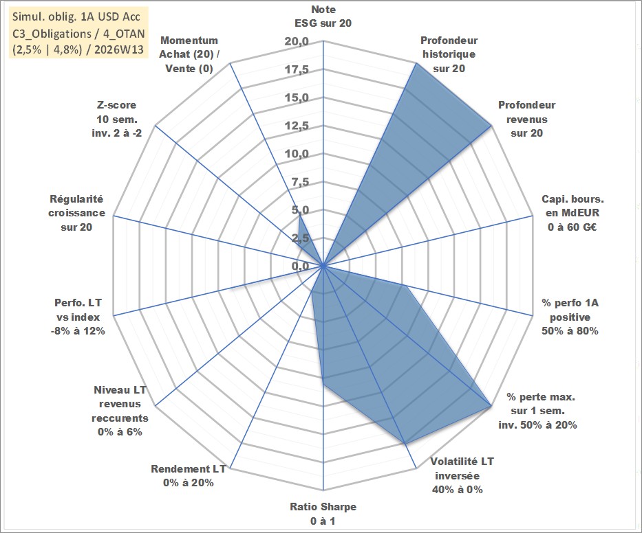 Site dédié aux investisseursPage dédiée sur site financeAnalyse des valorisations hebdomadaires de l'action Simul. oblig. 1A USD Acc. Cet actif est cote en USD. Les valorisations sont en contrevaleur EURO et couvrent les semaines 1997W01 a 2026W13. Les revenus de cet actif financier sont pris en compte depuis la semaine 1997W01. La note ESG de cet actif n'est pas connue.