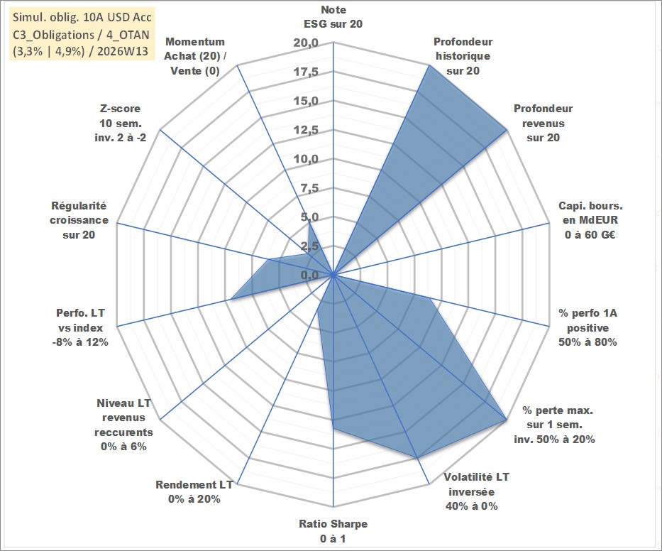 Site dédié aux investisseursPage dédiée sur site financeAnalyse des valorisations hebdomadaires de l'action Simul. oblig. 10A USD Acc. Cet actif est cote en USD. Les valorisations sont en contrevaleur EURO et couvrent les semaines 1997W01 a 2026W13. Les revenus de cet actif financier sont pris en compte depuis la semaine 1997W01. La note ESG de cet actif n'est pas connue.