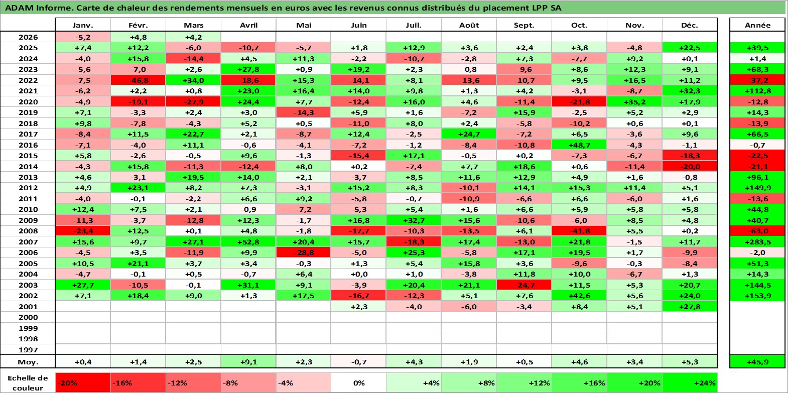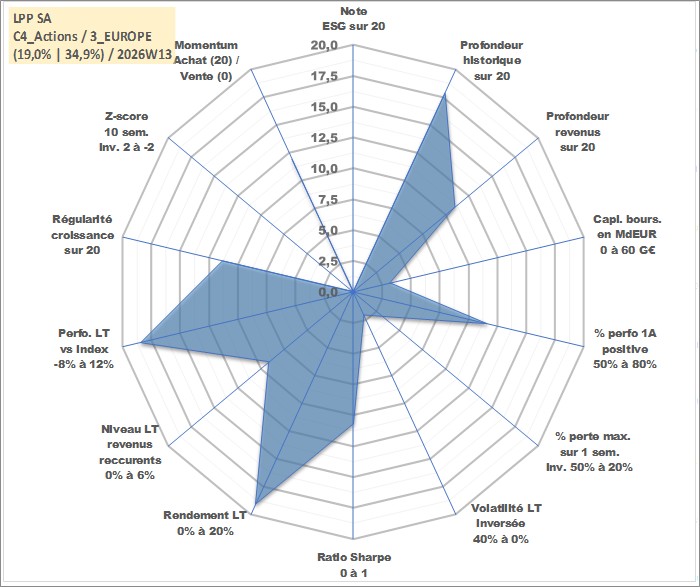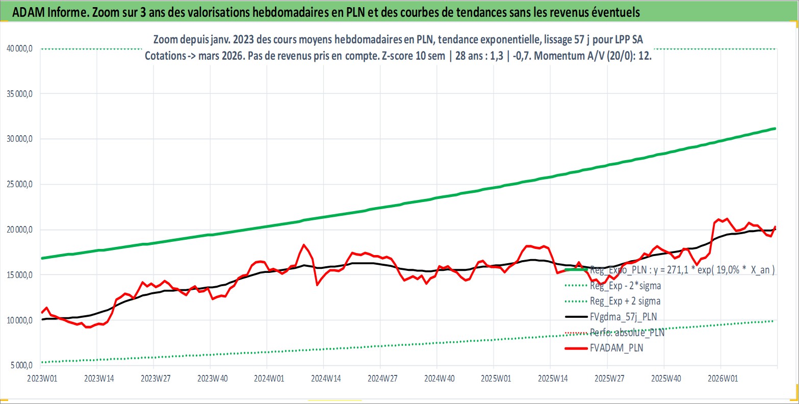 Site dédié aux investisseursPage dédiée sur site financeAnalyse des valorisations hebdomadaires de l'action LPP SA. Cet actif est cote en PLN. Les valorisations sont en contrevaleur EURO et couvrent les semaines 2001W20 a 2026W13. Les revenus de cet actif financier sont pris en compte depuis la semaine 2010W37. La note ESG de cet actif n'est pas connue.