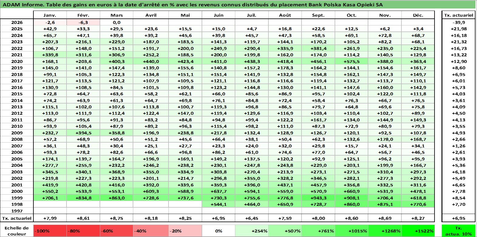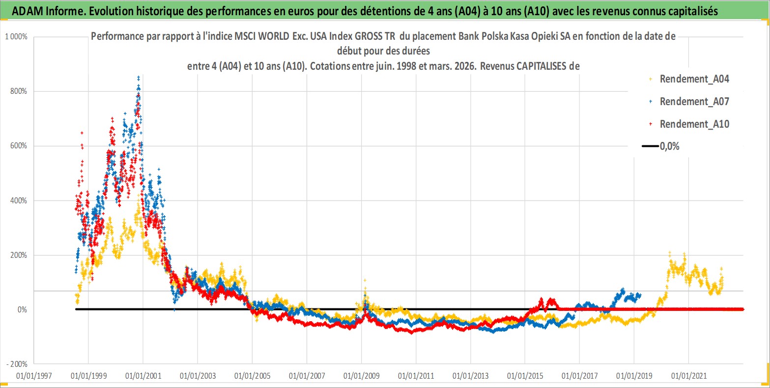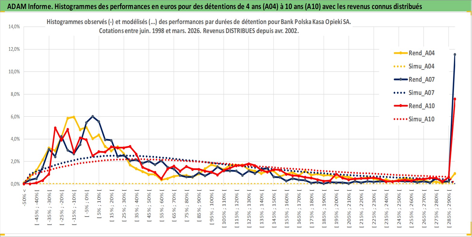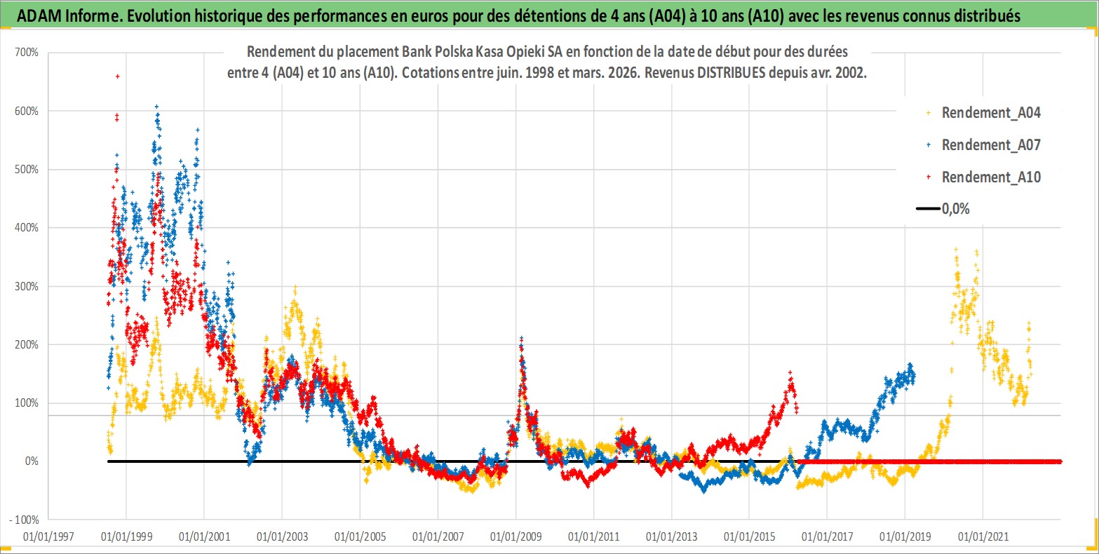 Site dédié aux investisseursPage dédiée sur site financeAnalyse des valorisations hebdomadaires de l'action Bank Polska Kasa Opieki SA. Cet actif est cote en PLN. Les valorisations sont en contrevaleur EURO et couvrent les semaines 1998W27 a 2026W13. Les revenus de cet actif financier sont pris en compte depuis la semaine 2002W15. La note globale ESG de cet actif est estimee a 7.0 (apres rebasage entre 0 et 20).