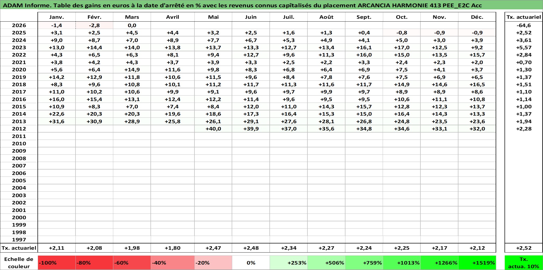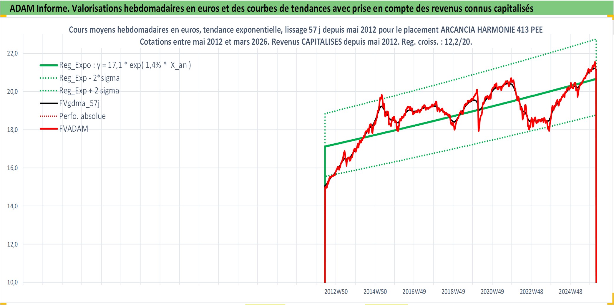 Site dédié aux investisseursPage dédiée sur site financeAnalyse des valorisations hebdomadaires du fonds ARCANCIA HARMONIE 413 PEE_E2C Acc. Cet actif est cote en EUR. Les valorisations couvrent les semaines 2012W21 a 2026W12. Les revenus de cet actif financier sont pris en compte depuis la semaine 2012W21. La note ESG de cet actif n'est pas connue.