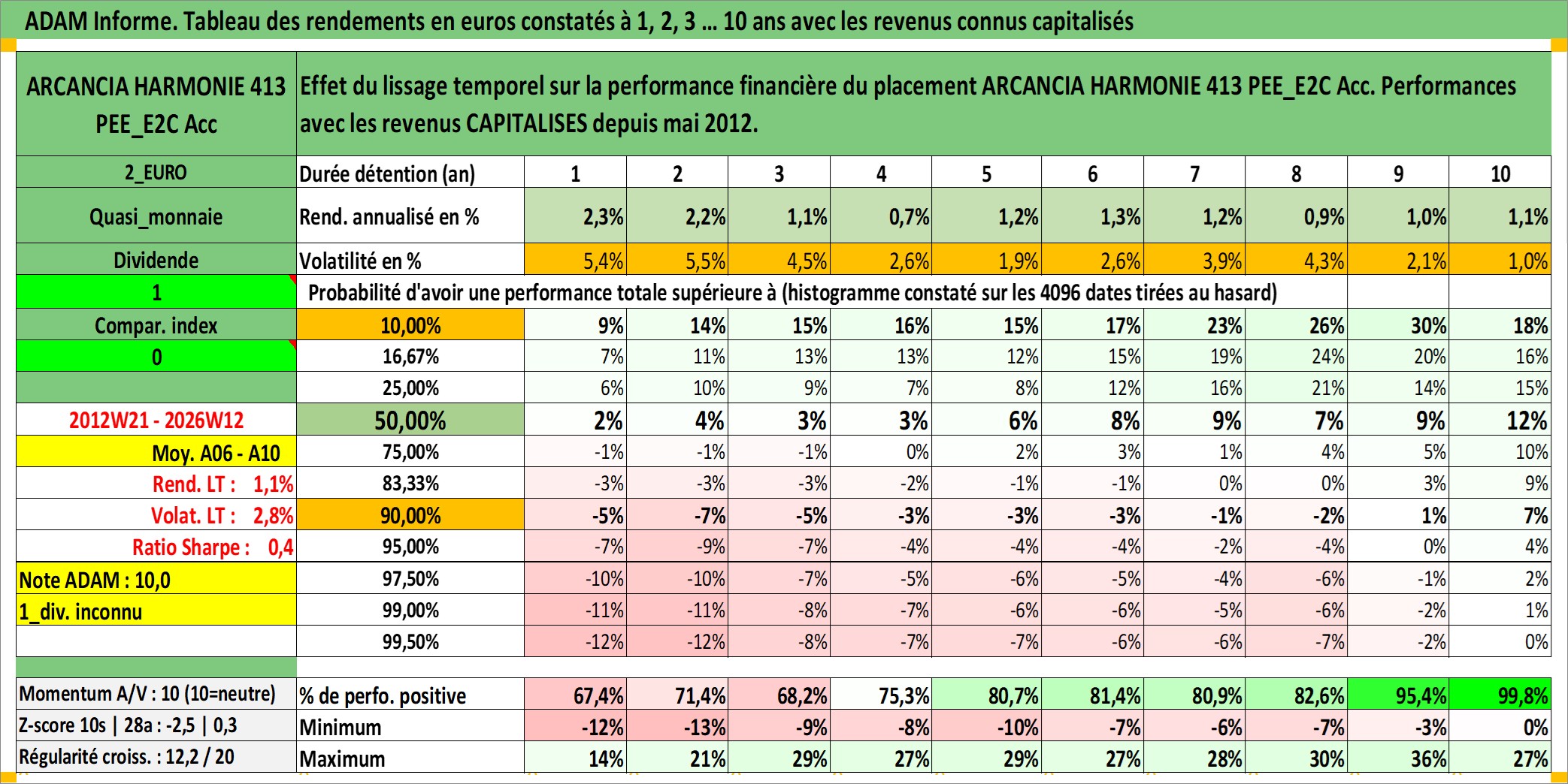 Dernière perfo 10 ans en %