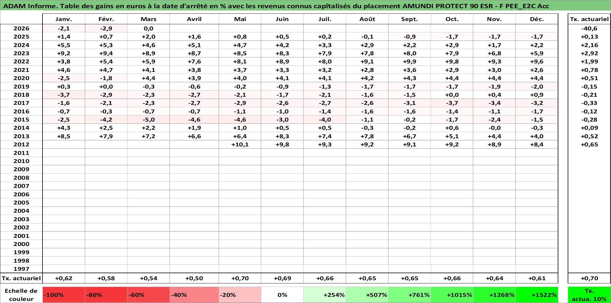 Site dédié aux investisseursPage dédiée sur site financeAnalyse des valorisations hebdomadaires du fonds AMUNDI PROTECT 90 ESR - F PEE_E2C Acc. Cet actif est cote en EUR. Les valorisations couvrent les semaines 2012W21 a 2026W13. Les revenus de cet actif financier sont pris en compte depuis la semaine 2012W21. La note ESG de cet actif n'est pas connue.