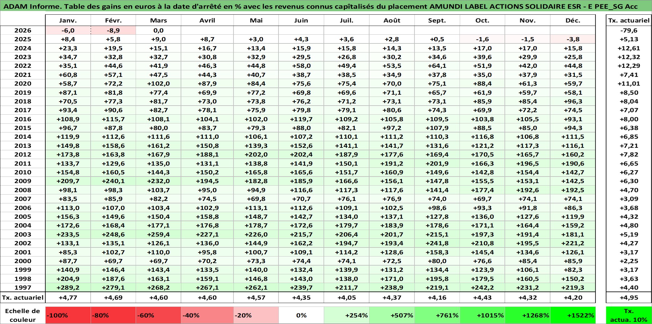 Site dédié aux investisseursPage dédiée sur site financeAnalyse des valorisations hebdomadaires du fonds AMUNDI LABEL ACTIONS SOLIDAIRE ESR - E PEE_SG Acc. Cet actif est cote en EUR. Les valorisations couvrent les semaines 1997W01 a 2026W13. Les revenus de cet actif financier sont pris en compte depuis la semaine 1997W01. La note ESG de cet actif n'est pas connue.