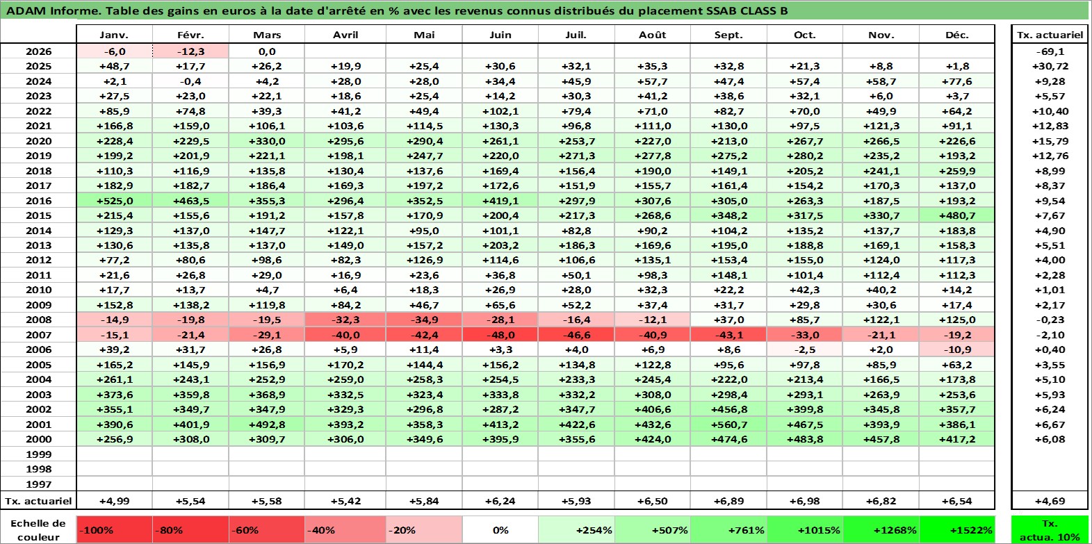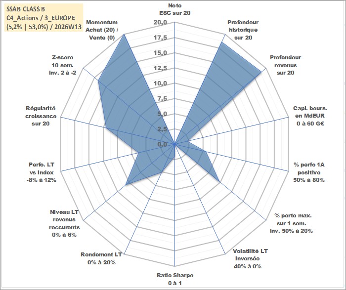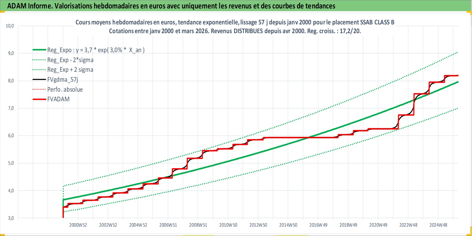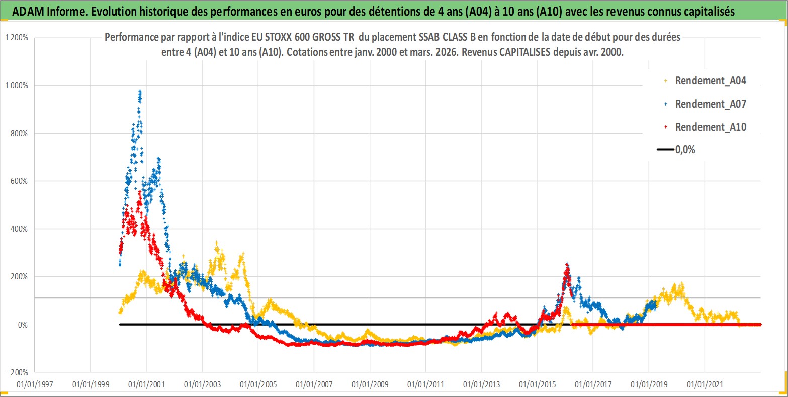 Site dédié aux investisseursPage dédiée sur site financeAnalyse des valorisations hebdomadaires de l'action SSAB CLASS B. Cet actif est cote en SEK. Les valorisations sont en contrevaleur EURO et couvrent les semaines 2000W01 a 2026W13. Les revenus de cet actif financier sont pris en compte depuis la semaine 2000W17. La note ESG de cet actif n'est pas connue.