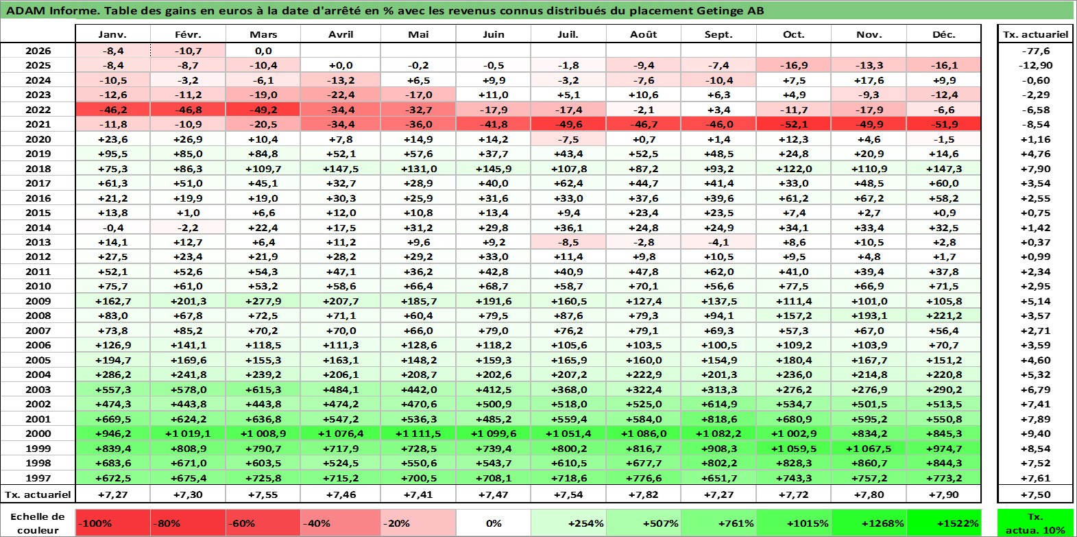 Dernière perfo 1 an en %