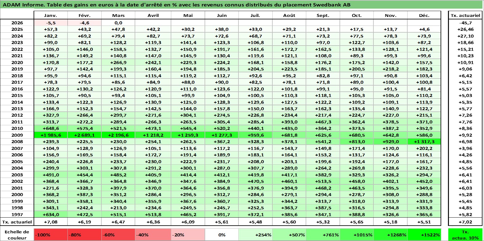 Dernière perfo 1 an en %