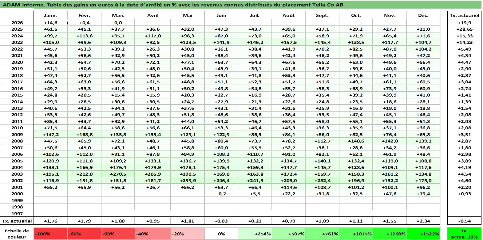 Dernière perfo 10 ans en %