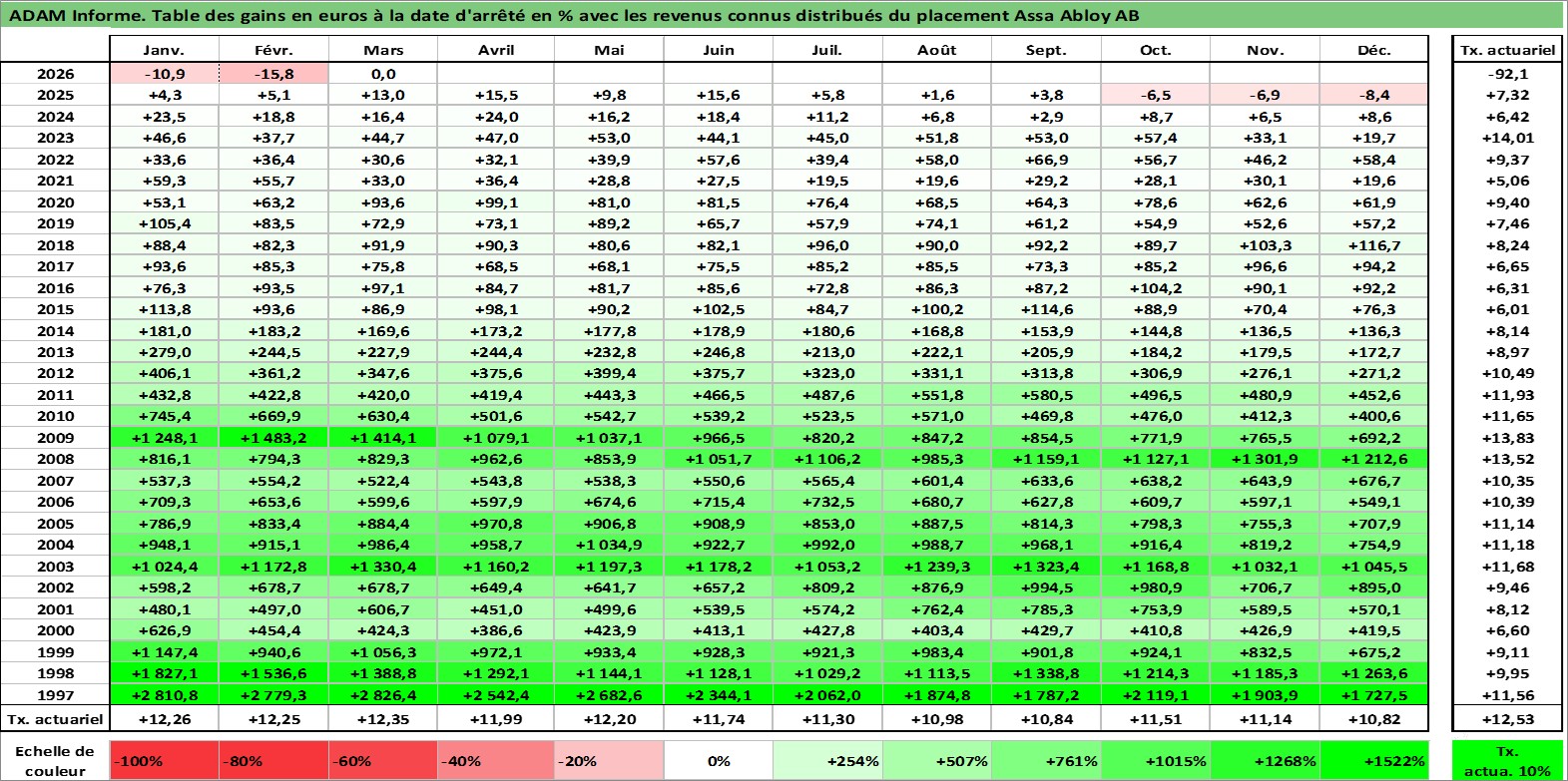 Dernière perfo 1 an en %