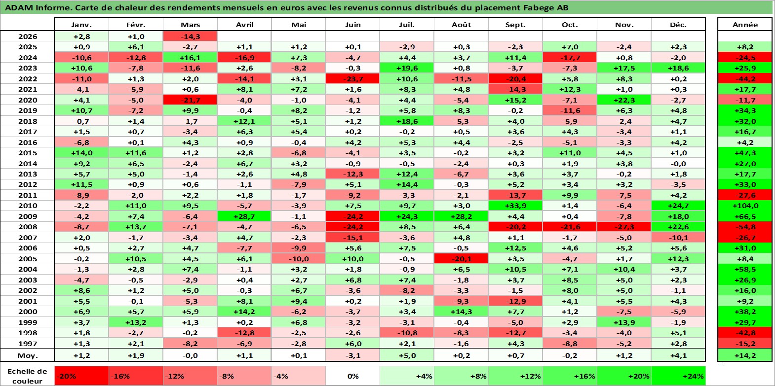 Dernière perfo 1 an en %