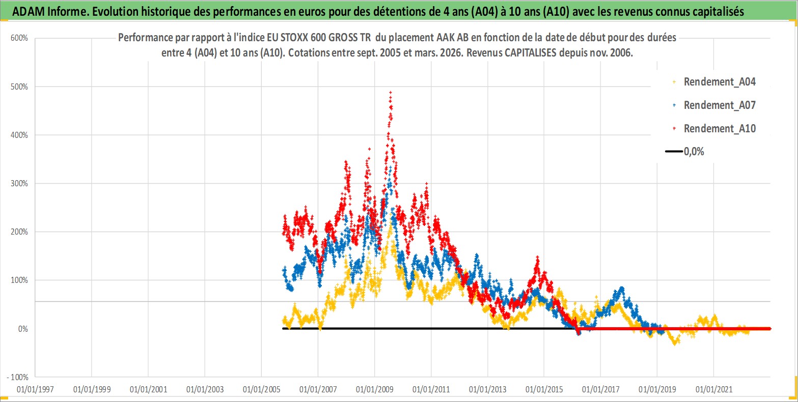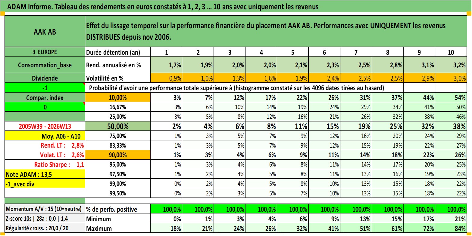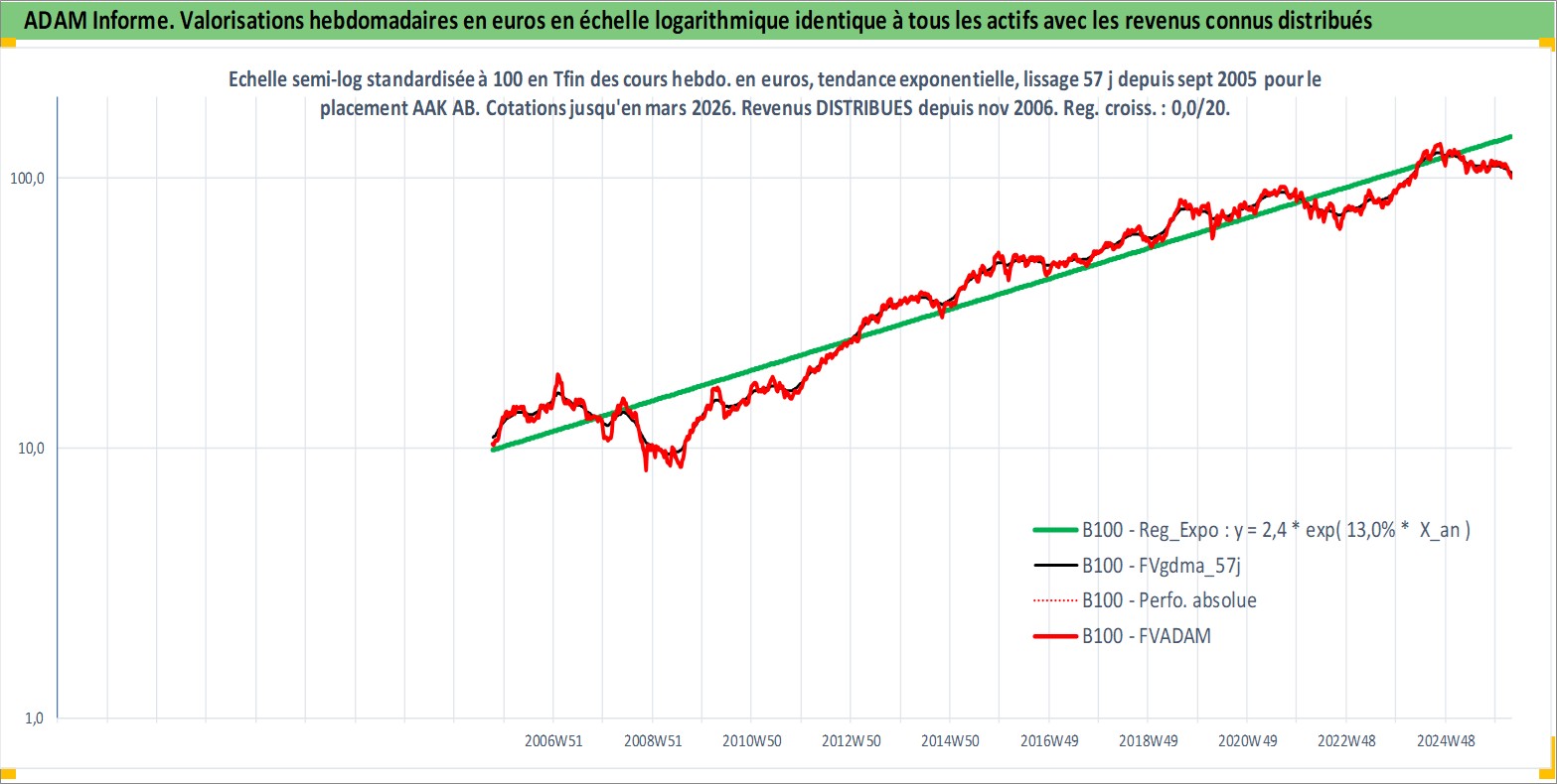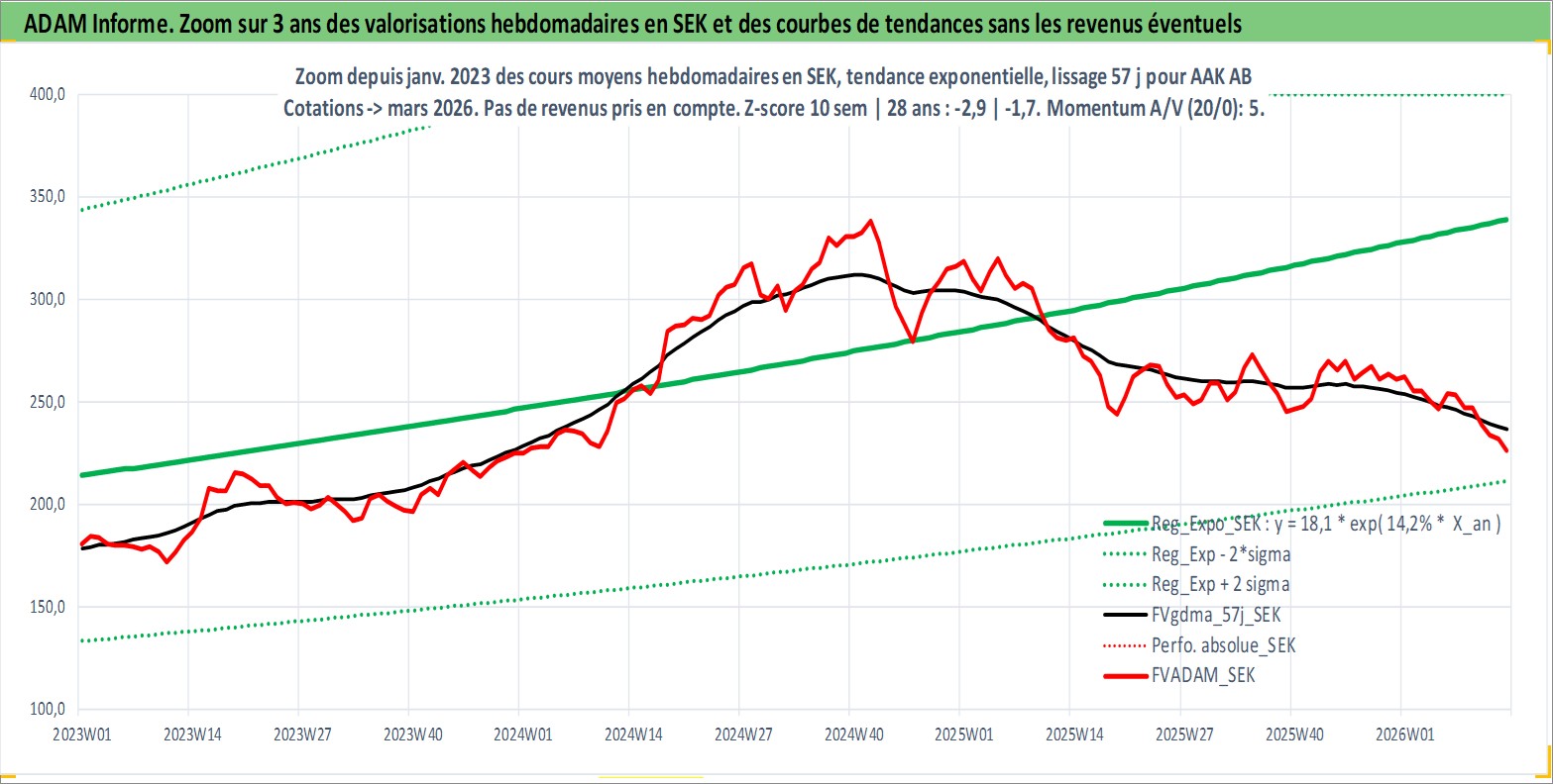 Site dédié aux investisseursPage dédiée sur site financeAnalyse des valorisations hebdomadaires de l'action AAK AB. Cet actif est cote en SEK. Les valorisations sont en contrevaleur EURO et couvrent les semaines 2005W39 a 2026W13. Les revenus de cet actif financier sont pris en compte depuis la semaine 2006W46. La note ESG de cet actif n'est pas connue.