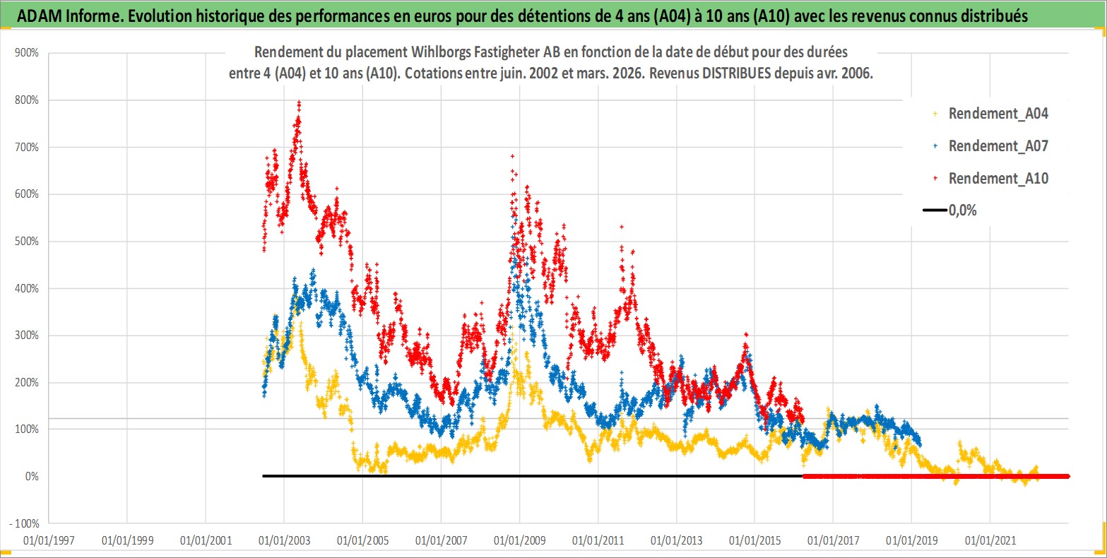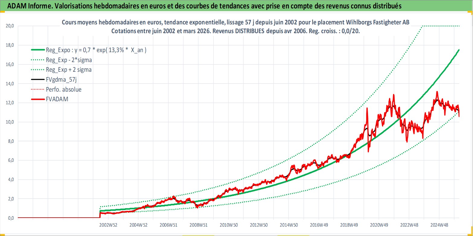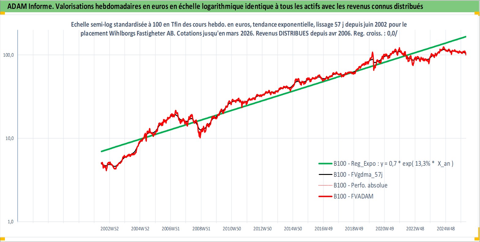 Site dédié aux investisseursPage dédiée sur site financeAnalyse des valorisations hebdomadaires de l'action Wihlborgs Fastigheter AB. Cet actif est cote en SEK. Les valorisations sont en contrevaleur EURO et couvrent les semaines 2002W24 a 2026W13. Les revenus de cet actif financier sont pris en compte depuis la semaine 2006W17. La note ESG de cet actif n'est pas connue.