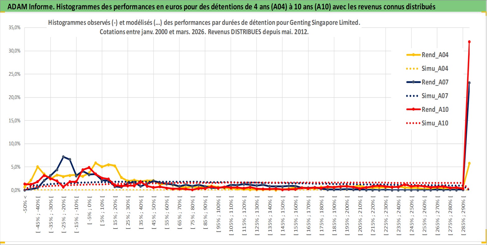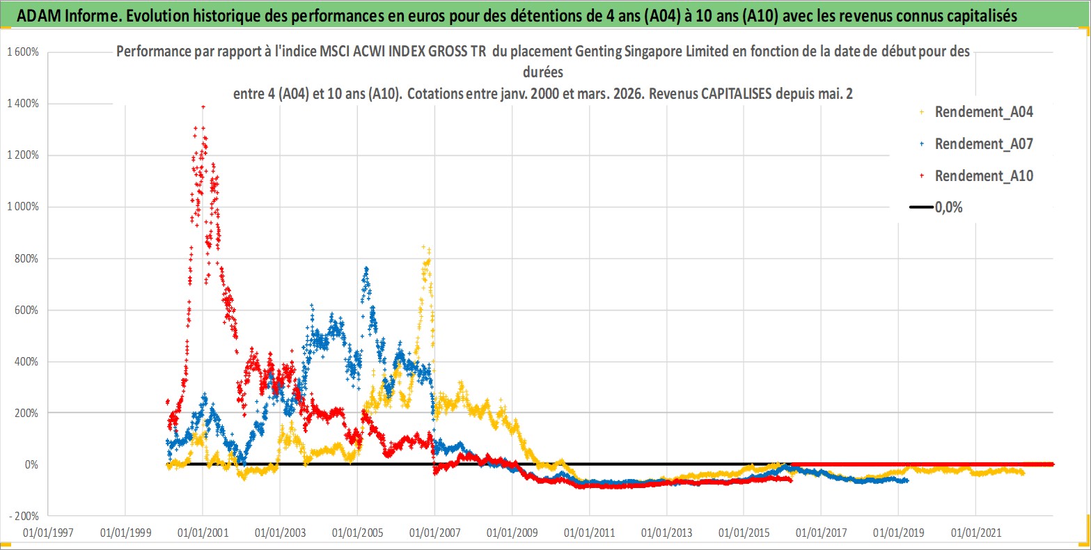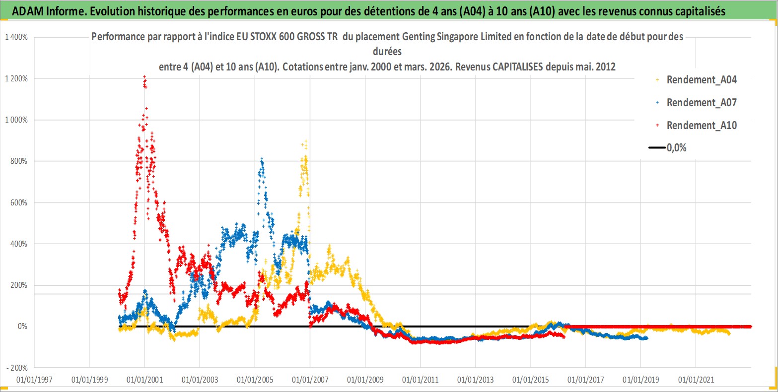 Site dédié aux investisseursPage dédiée sur site financeAnalyse des valorisations hebdomadaires de l'action Genting Singapore Limited. Cet actif est cote en SGD. Les valorisations sont en contrevaleur EURO et couvrent les semaines 2000W03 a 2026W13. Les revenus de cet actif financier sont pris en compte depuis la semaine 2012W19. La note globale ESG de cet actif est estimee a 10.0 (apres rebasage entre 0 et 20).