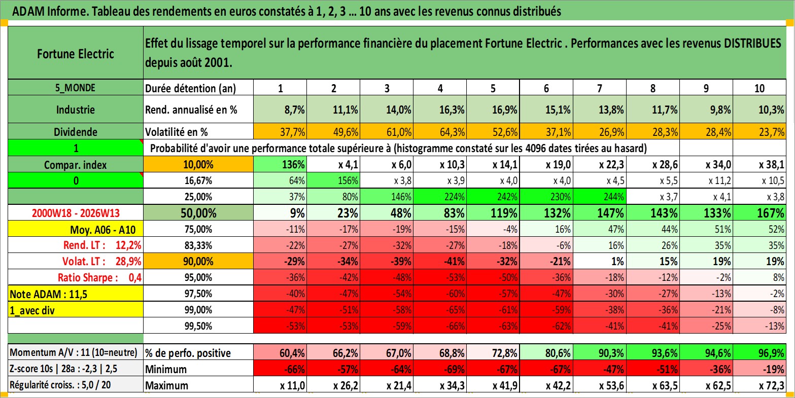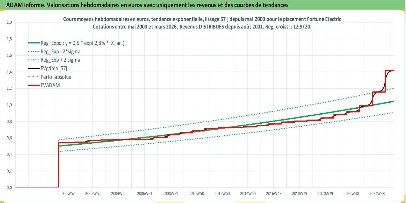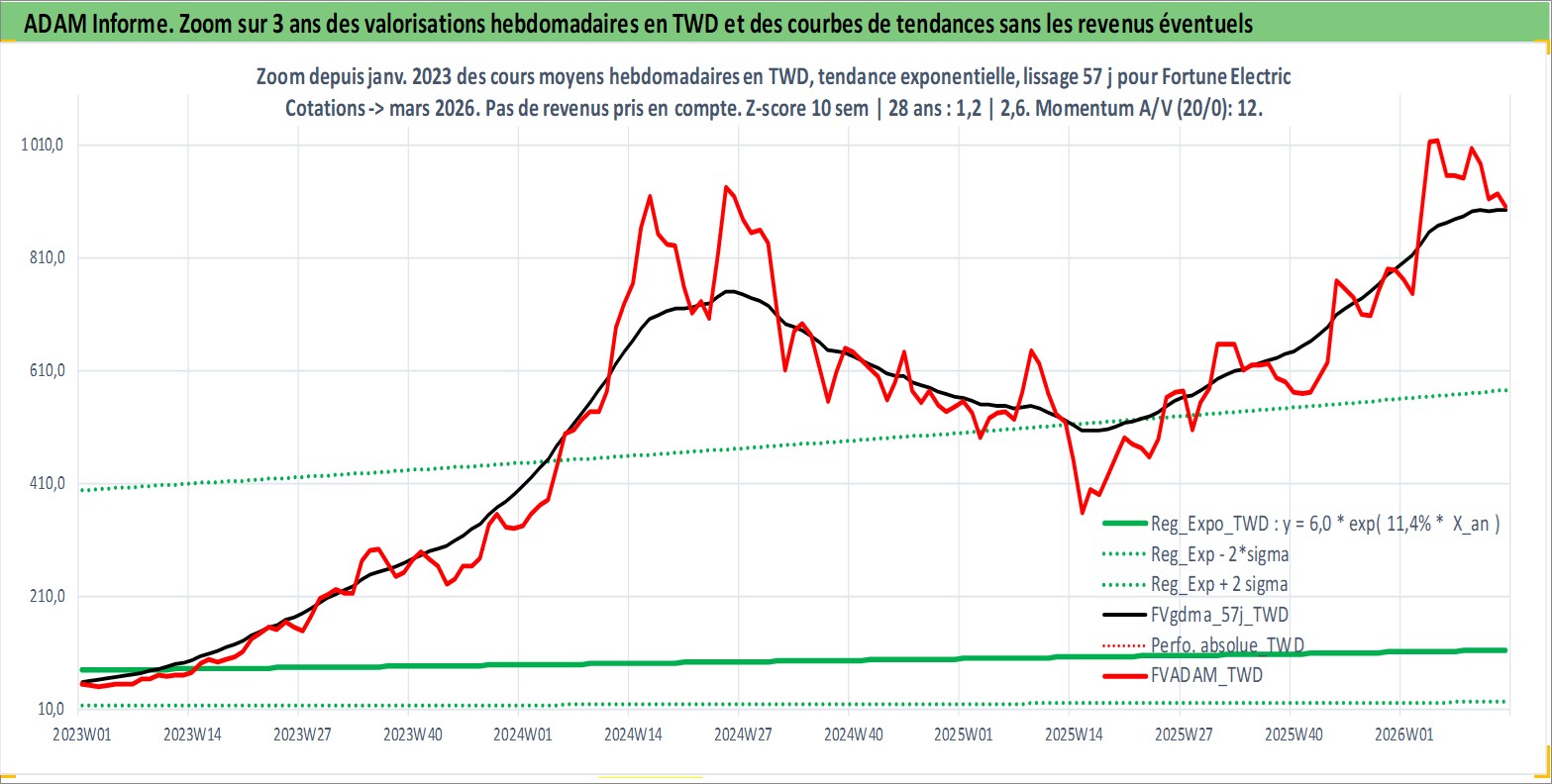 Site dédié aux investisseursPage dédiée sur site financeAnalyse des valorisations hebdomadaires de l'action Fortune Electric . Cet actif est cote en TWD. Les valorisations sont en contrevaleur EURO et couvrent les semaines 2000W18 a 2026W13. Les revenus de cet actif financier sont pris en compte depuis la semaine 2001W34. La note ESG de cet actif n'est pas connue.