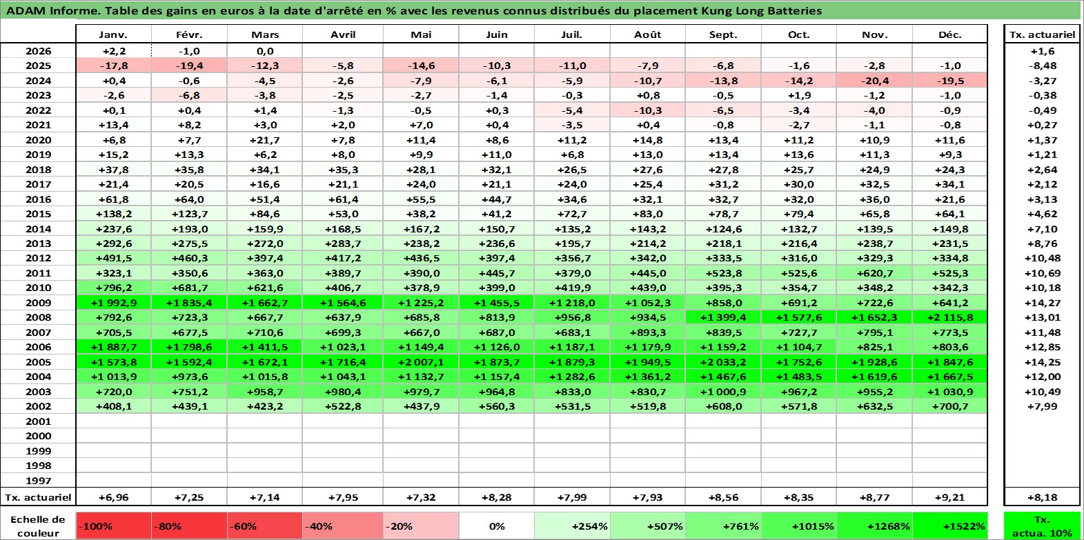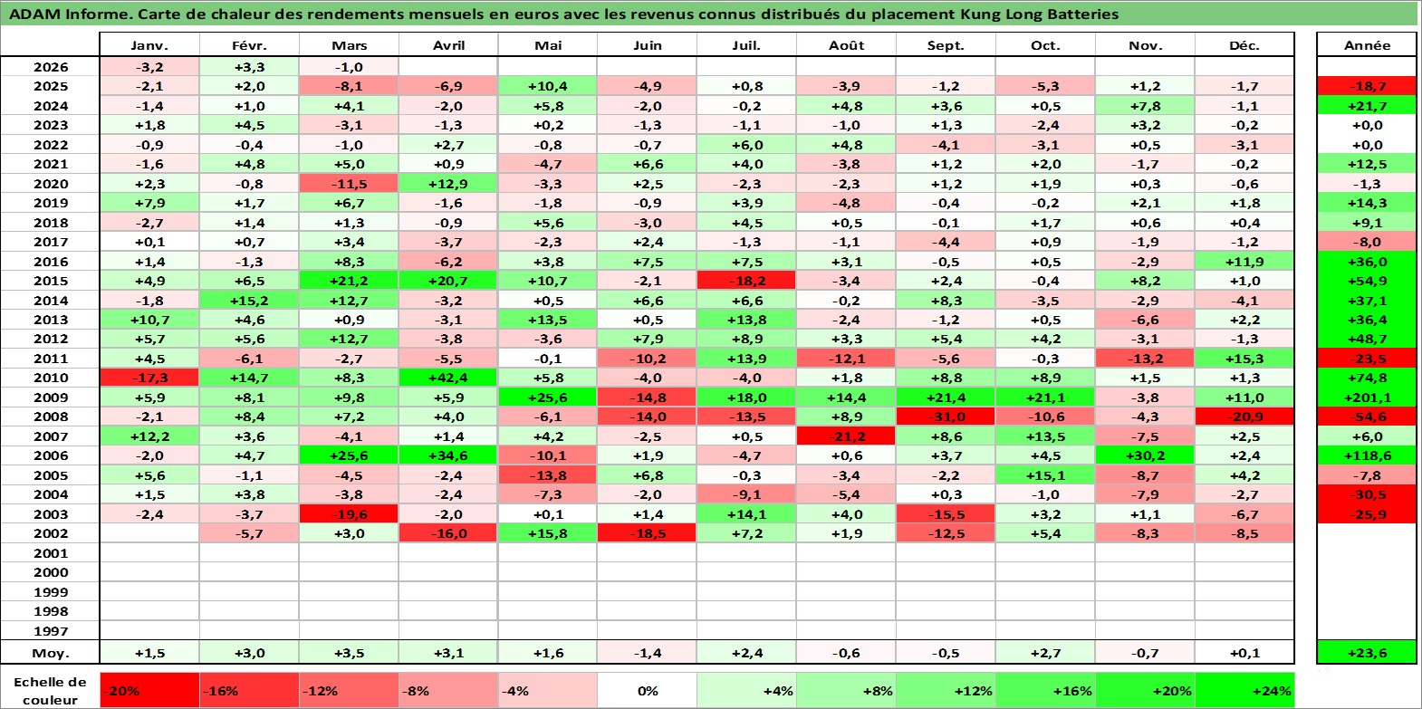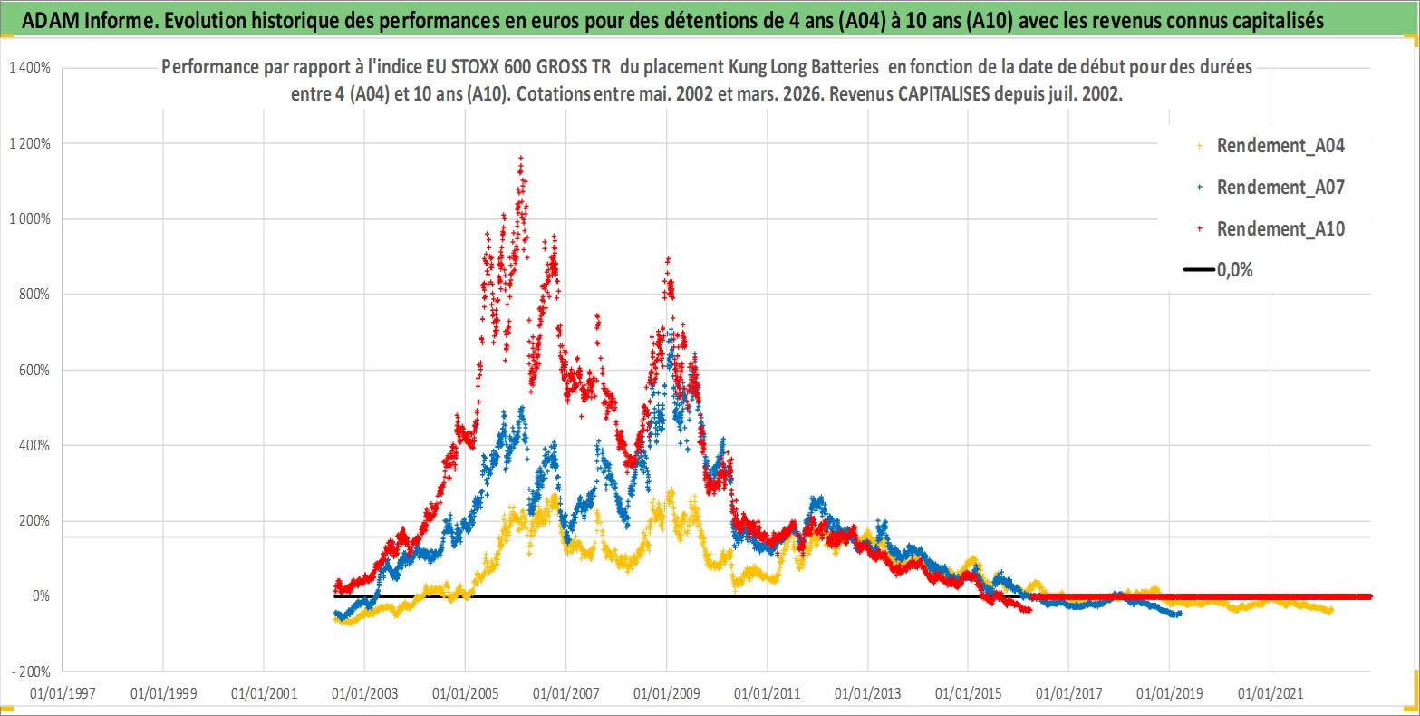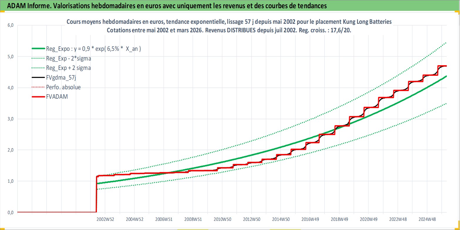 Site dédié aux investisseursPage dédiée sur site financeAnalyse des valorisations hebdomadaires de l'action Kung Long Batteries . Cet actif est cote en TWD. Les valorisations sont en contrevaleur EURO et couvrent les semaines 2002W21 a 2026W13. Les revenus de cet actif financier sont pris en compte depuis la semaine 2002W28. La note ESG de cet actif n'est pas connue.