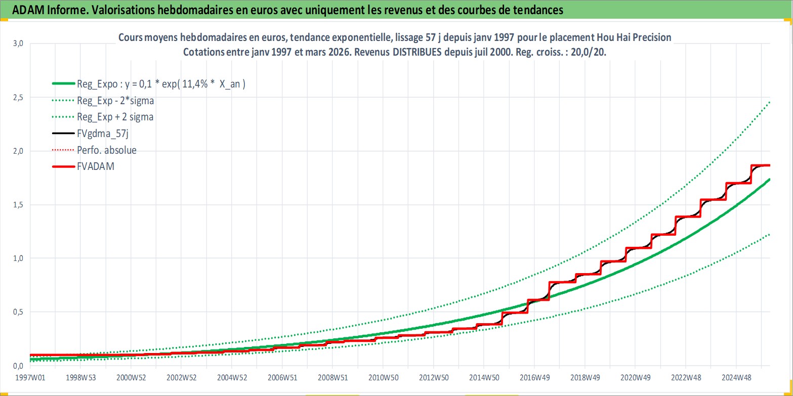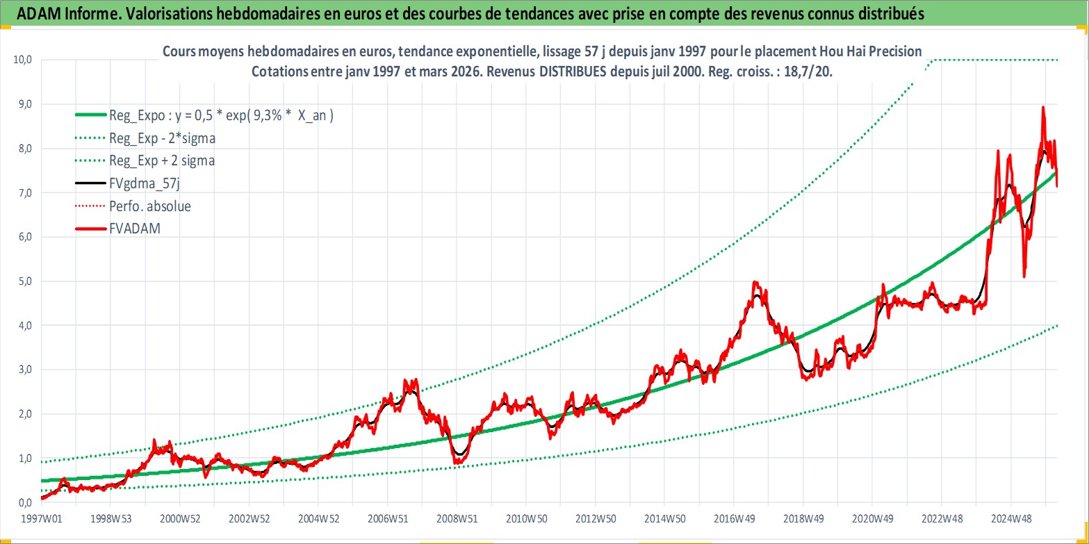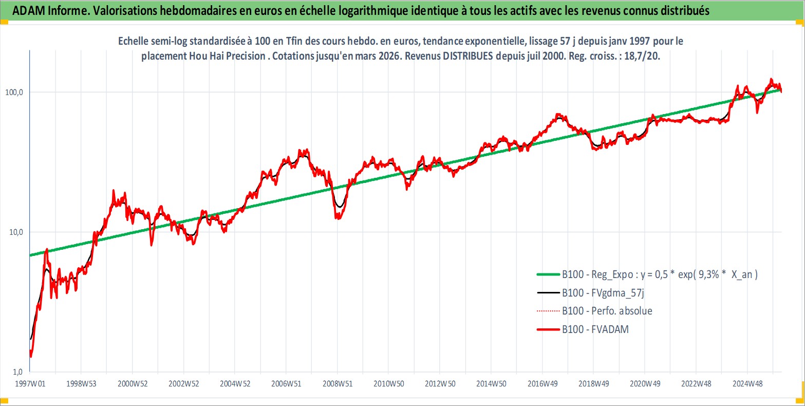 Site dédié aux investisseursPage dédiée sur site financeAnalyse des valorisations hebdomadaires de l'action Hou Hai Precision . Cet actif est cote en TWD. Les valorisations sont en contrevaleur EURO et couvrent les semaines 1997W01 a 2026W13. Les revenus de cet actif financier sont pris en compte depuis la semaine 2000W28. La note globale ESG de cet actif est estimee a 17.0 (apres rebasage entre 0 et 20).