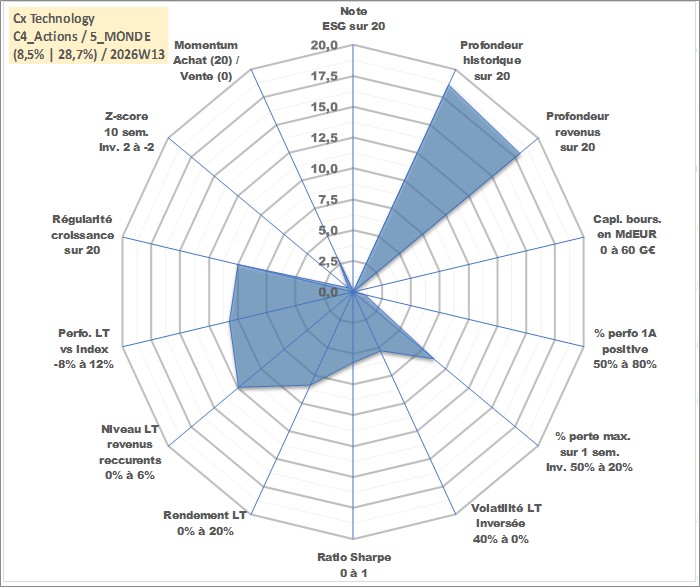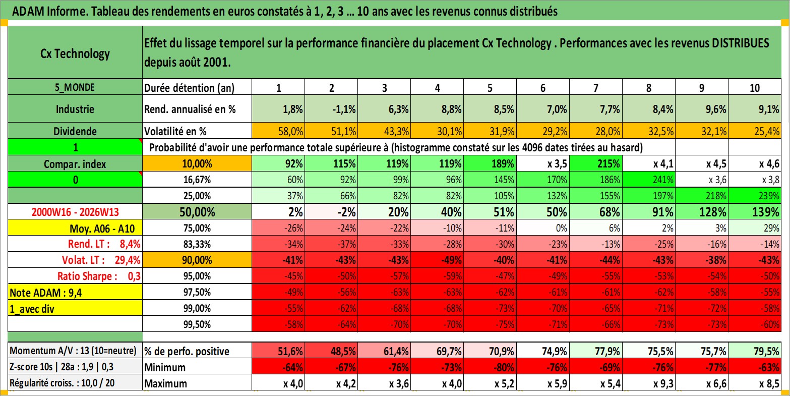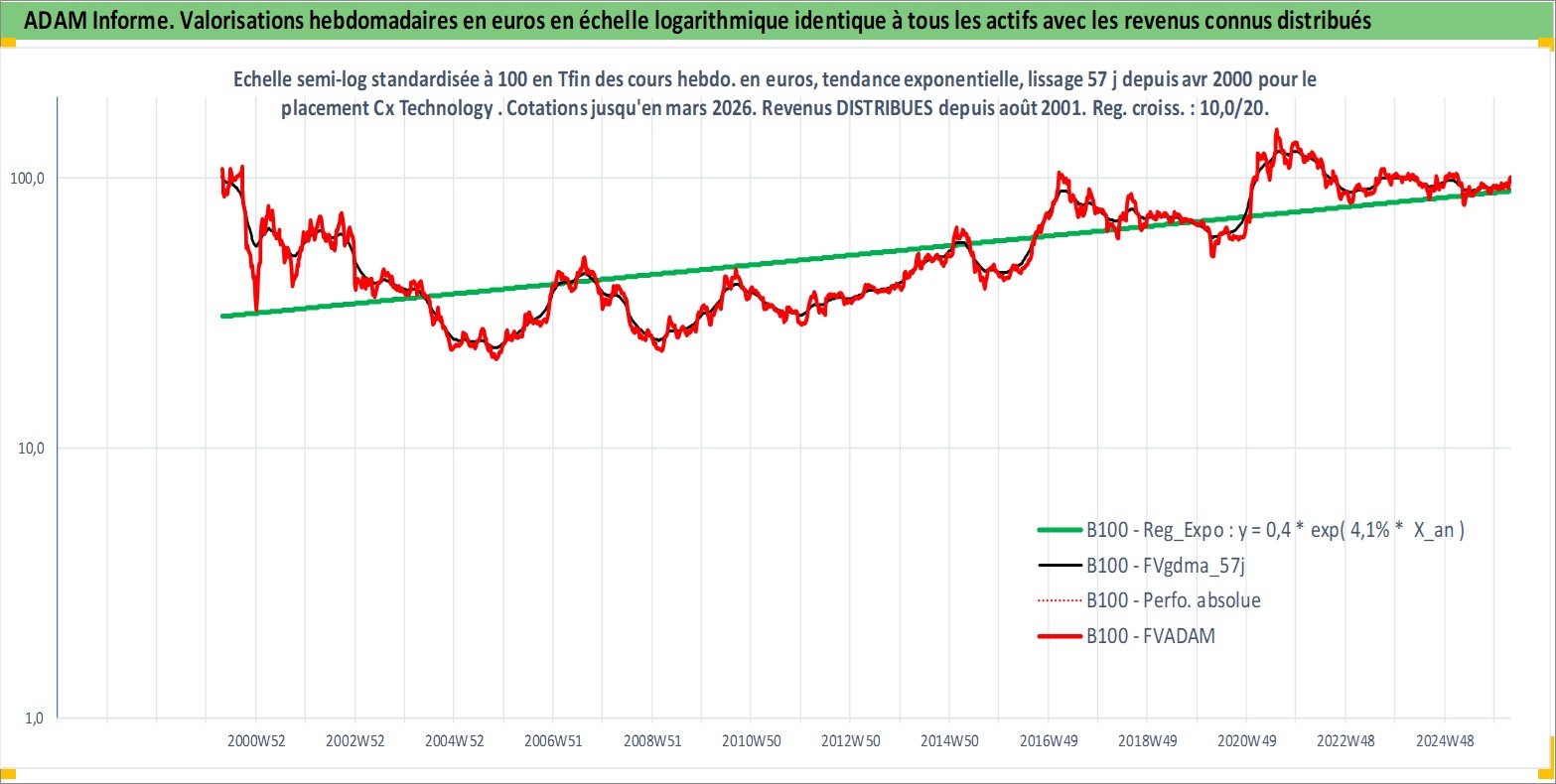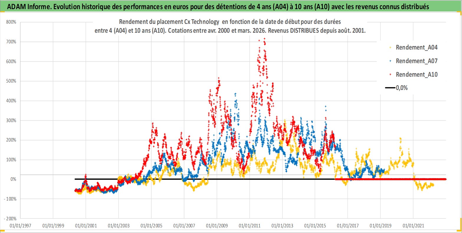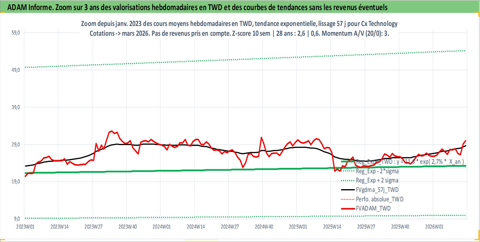 Site dédié aux investisseursPage dédiée sur site financeAnalyse des valorisations hebdomadaires de l'action Cx Technology . Cet actif est cote en TWD. Les valorisations sont en contrevaleur EURO et couvrent les semaines 2000W16 a 2026W13. Les revenus de cet actif financier sont pris en compte depuis la semaine 2001W32. La note ESG de cet actif n'est pas connue.